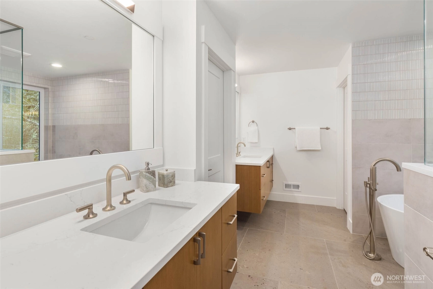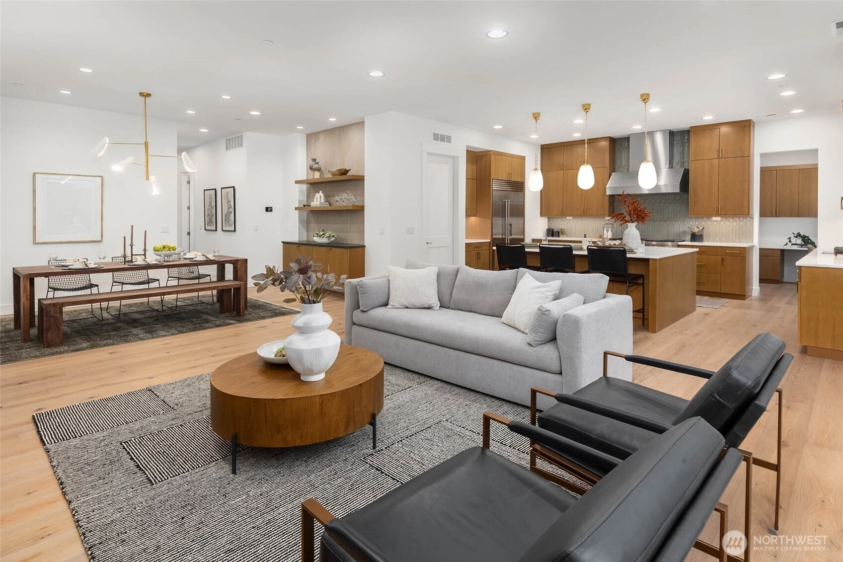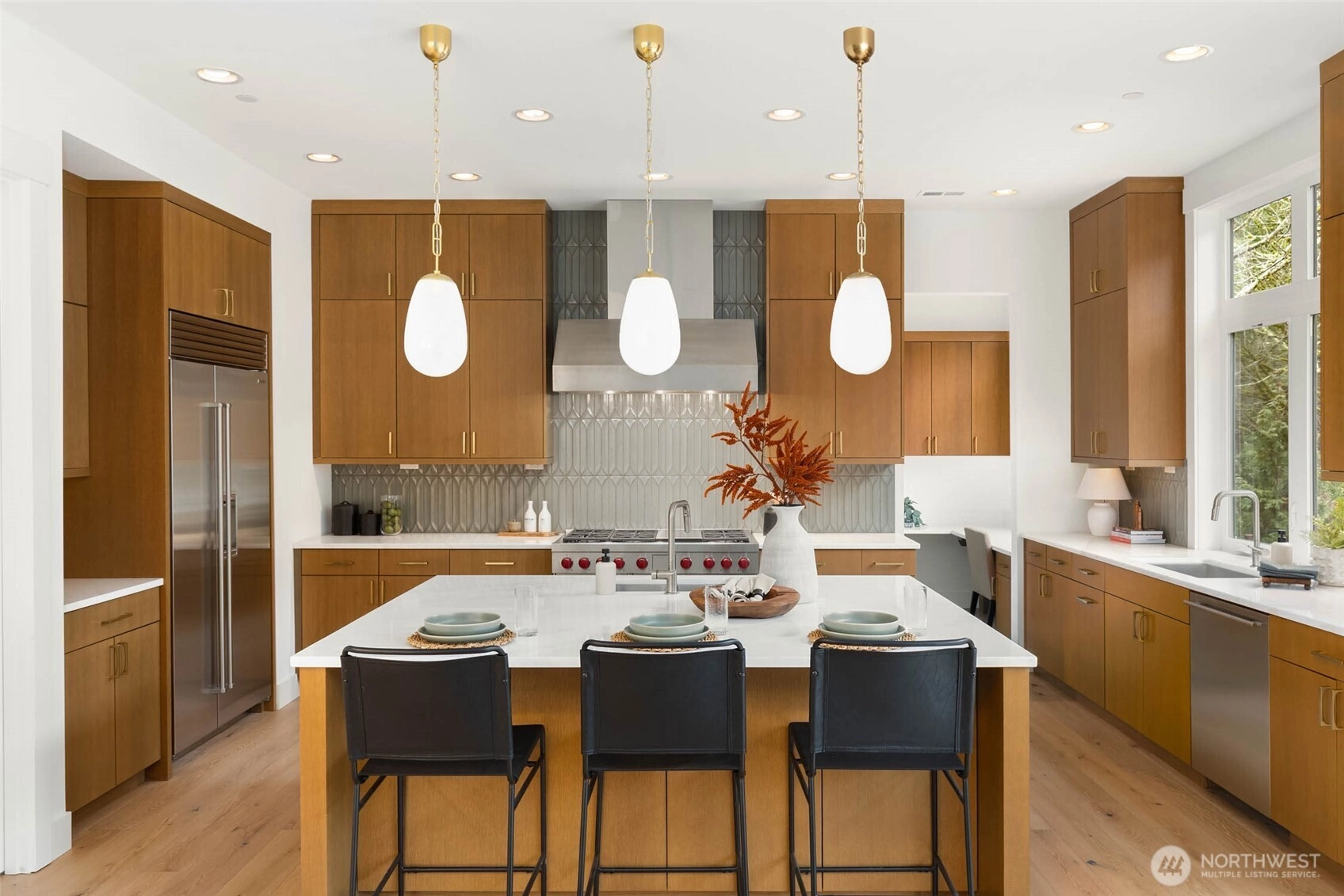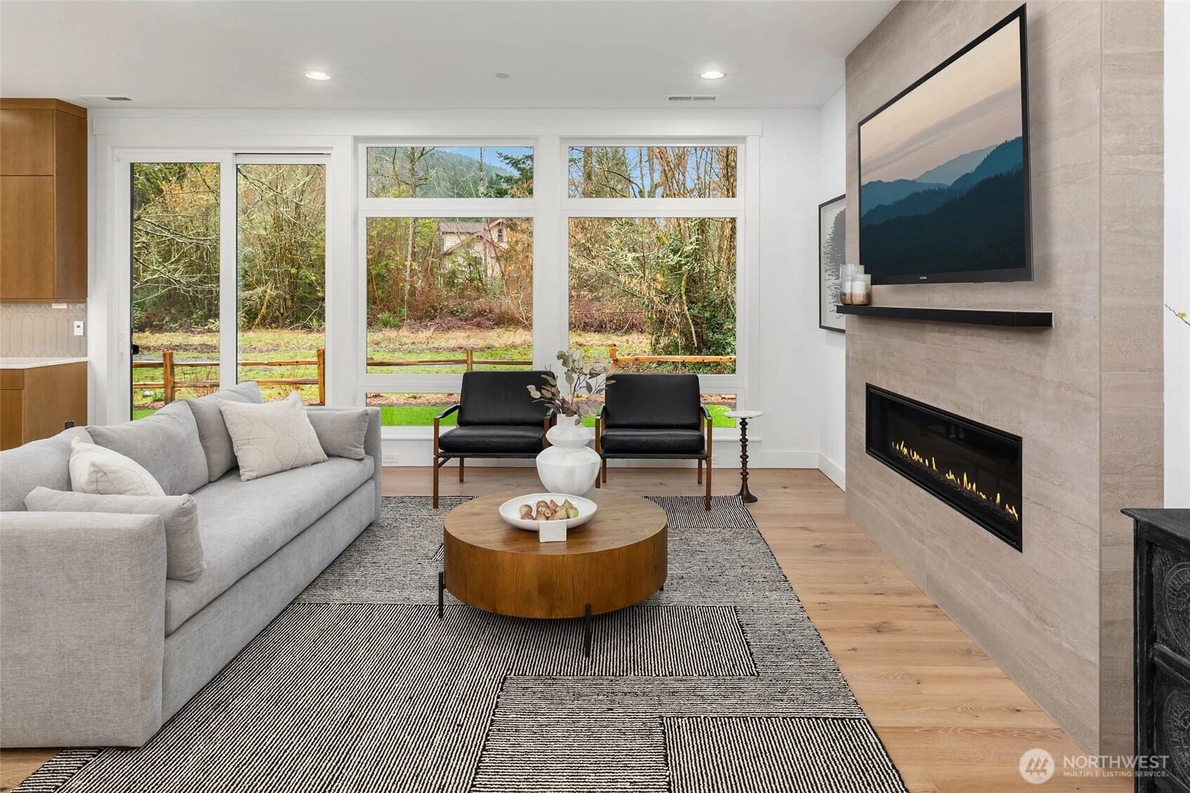 Just Released, newly completed home in Steve Burnstead Constructions newest offering, Tibbetts Crossing. A stunning community of 20 custom NW contemporary homes on 21 acres with Tibbetts Creek serenely running through. The Evans Plan on lot 5 is a stunning 3,546 SF 5 Bed/4 Bath Custom Designed Residence. Main floor flooded with natural light through Floor to Ceiling window walls and 10 Foot Ceilings. Home office/guest suite, dramatic 2 story entry, and Open Concept Great Room open to patio and greenbelt backing yard. Chef’s kitchen with Custom Cabinets oversized island with designer selected quartz slab and eating bar, and premium Wolf/Sub-Zero/Cove appliance package. Dedicated dining space with built in custom floating buffet, floating shelves, and full height tile backsplash. Stunning Primary Suite with greenbelt views, contemporary fireplace with slab surround, and Spa like bath one of 4 upper bedrooms. Spacious Rec-Room and Well Appointed Utlility/mud room with tile floors, custom cabinets, cubbies, shelves, and stainless steel sink. Installed and ready to save solar panels. Designer Curated fixtures and finishes throughout. Only move in ready home in this brand new, over a quarter sold out neighborhood. A+ Location, Schools, Quality, Design by a TRUSTED LOCAL NAME.
