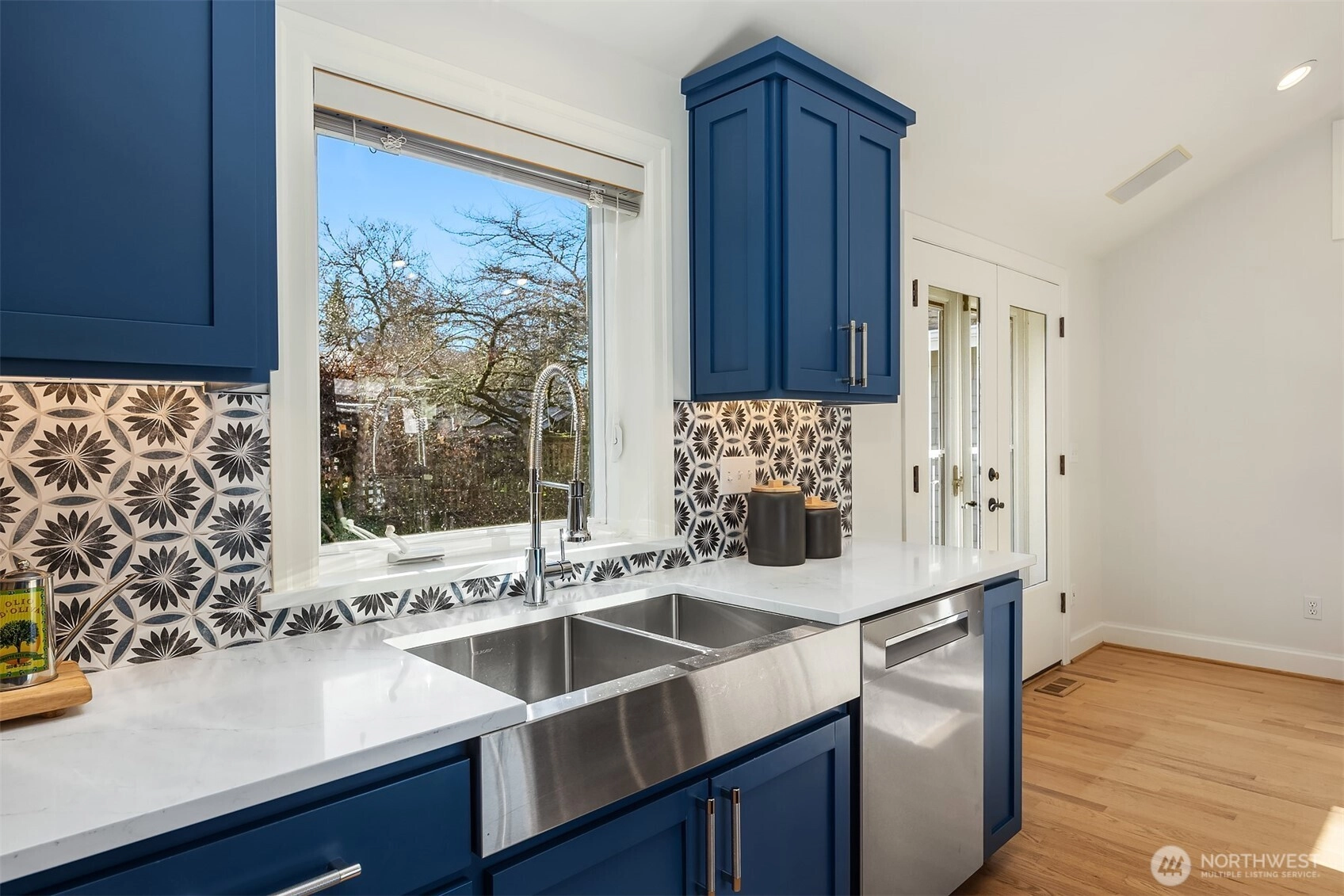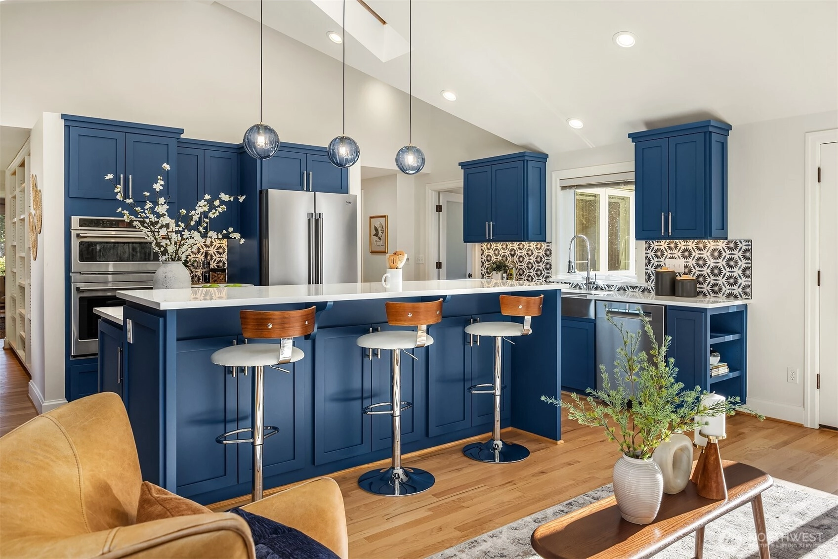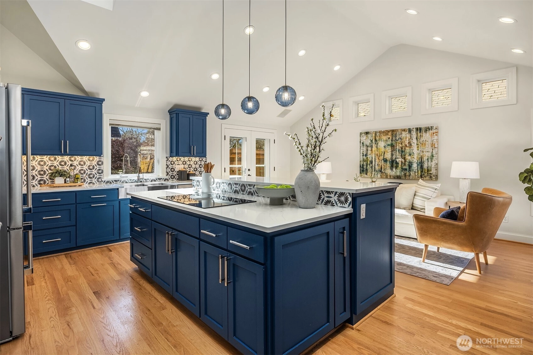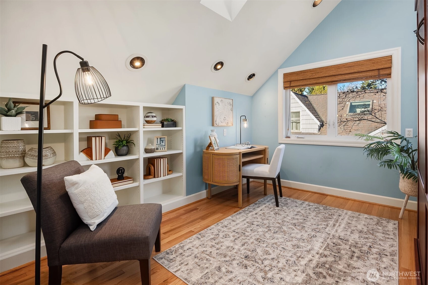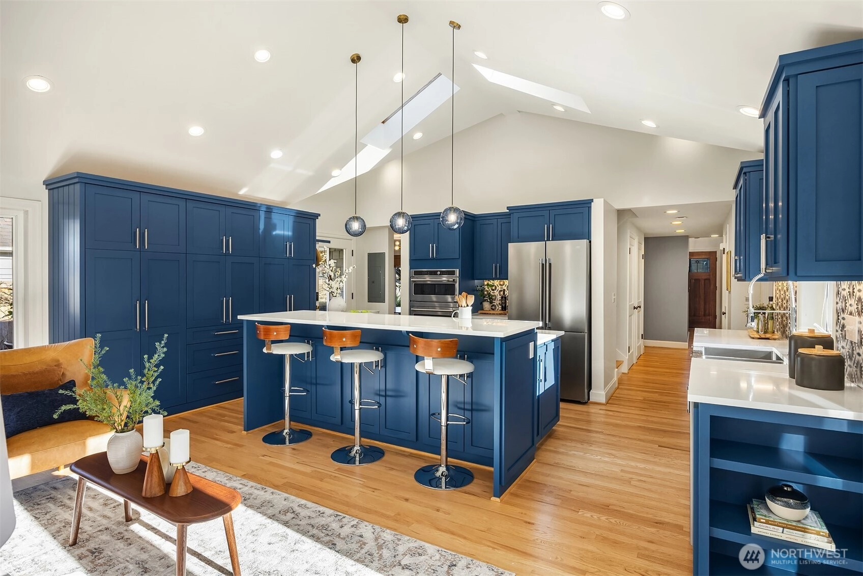 Set above the street in one of View Ridge’s most sought-after pockets, this custom home blends architectural presence, privacy, and sweeping lake and Cascade views from nearly every room. A beautifully landscaped front yard creates a gracious sense of arrival. Inside, rich architectural lines, custom cabinetry, and refreshed finishes deliver warmth and sophistication. The main-floor primary suite offers rare flexibility, while multiple work-from-home spaces support modern living. Upstairs features two storybook bedrooms plus a private office with a Murphy bed, all with inspiring outlooks. A generous patio invites effortless entertaining. A substantial garage with both front and rear access provides excellent storage and future ADU potential. Minutes to Magnuson Park, the Burke-Gilman Trail, View Ridge Swim & Tennis Club, and neighborhood amenities that make Northeast Seattle so desirable. This is a home that lives beautifully, offering an elevated yet comfortable lifestyle with seamless indoor-outdoor flow, abundant natural light, and spaces designed for both everyday living and special gatherings. Recent updates including newer flooring, roof, carpet, and paint mean the heavy lifting has already been done. A rare opportunity to own a view home that truly balances design, function, and location. Enjoy privacy, sunshine, and unforgettable sunsets from this exceptional Northeast Seattle retreat. Truly special. An offering that feels both timeless and entirely move-in ready!