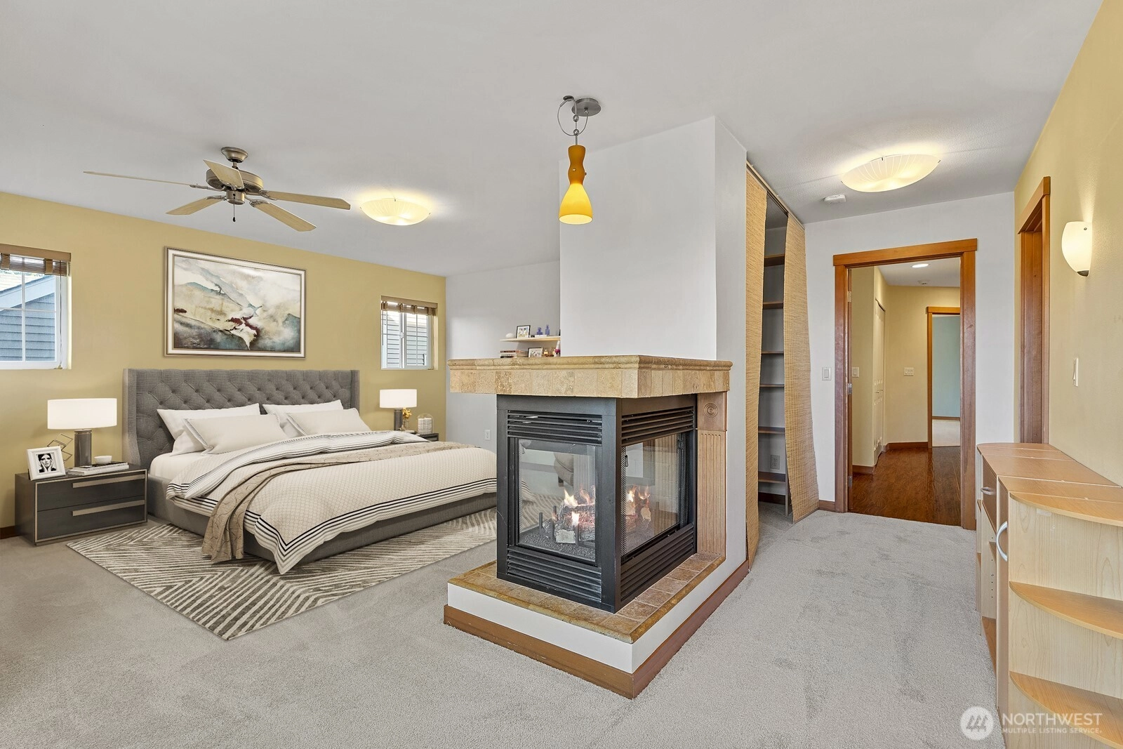 Snoqualmie Ridge gem! Sited high on a quiet street with territorial views. Open floor plan creates an ideal setting for entertaining or relaxing. Large, open chef's kitchen with generous counter space, ample storage, and walk-in pantry. The spacious primary suite offers a double-sided fireplace, sitting area, walk-in closet, french doors, and scenic views. Optimized layout with 3 bedrooms plus bonus room. Enjoy year-round comfort with central AC. Hardwood floors + new carpet. Step outside to the delightful, fully landscaped yard, including a covered deck complete with hot tub and covered splash pool. 2 storage sheds. Alley access to plentiful off-street parking, gated driveway, and two-car garage with storage shelving system. Located in the highly rated Snoqualmie Valley School District. Quick access to I-90 for an easy commute to Bellevue or Seattle. Community parks, 20+ miles of serviced trails, and premier outdoor recreation are just minutes away. This is the one!