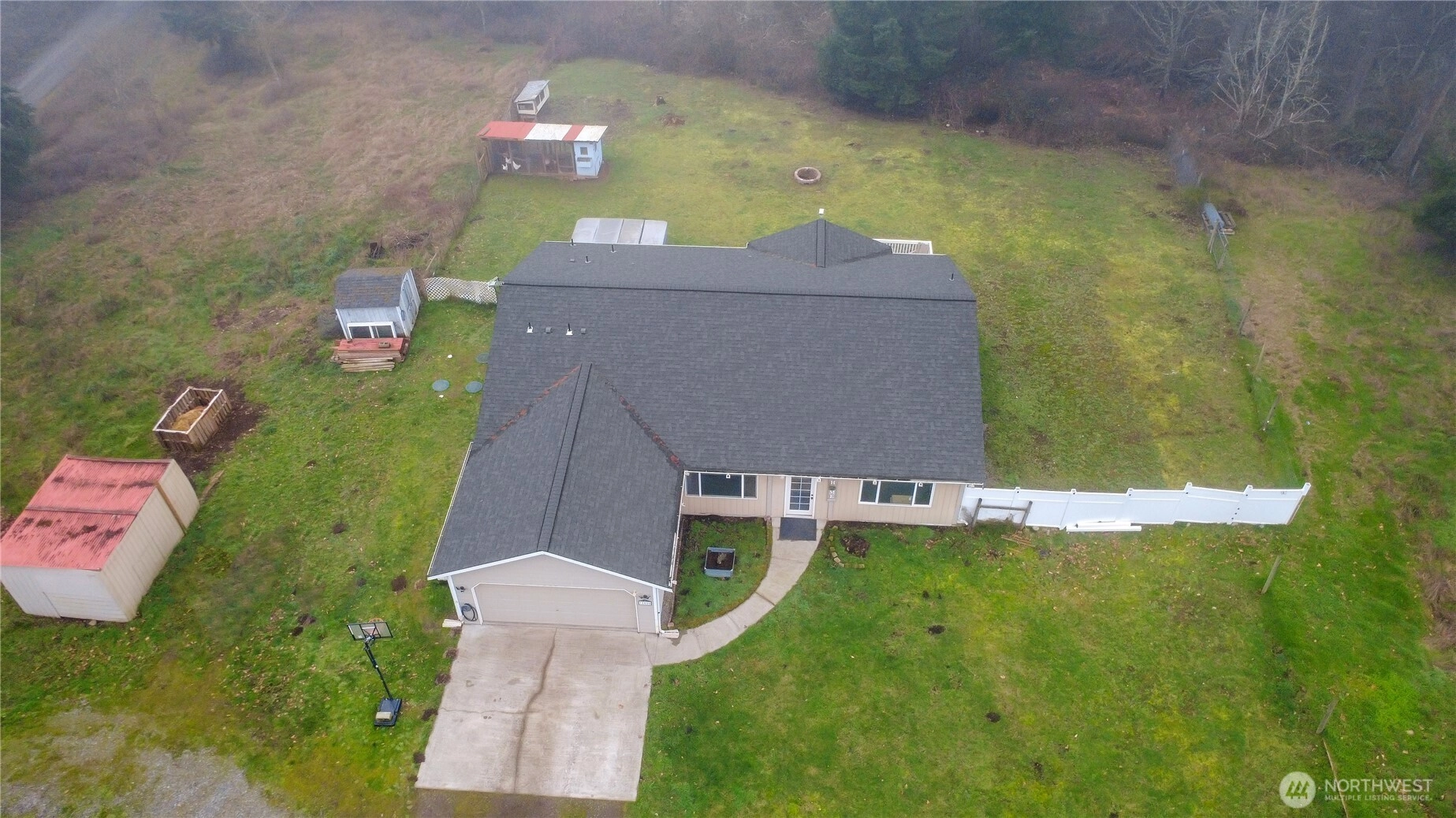 Charming 3-bedroom, 2-bath rambler featuring vaulted ceilings and an open, functional layout. The kitchen offers a breakfast bar that opens to the dining area and living room. The primary bedroom includes a full ensuite bath and dual closets.Recent updates include a new roof in 2024 and newer water heater. Enjoy the enclosed porch with a convenient side dog door providing access to the backyard. The home is equipped with air conditioning, a pellet stove, a generator, and a swim spa for added comfort and enjoyment. All appliances stay.Situated on nearly 5 fully fenced acres with a gated entry. The property features fruit trees, established garden areas, multiple pasture sections, outbuildings, a chicken coop, and ample parking, including RV space.Conveniently located with an easy commute to JBLM and Yelm. Ideal for buyers seeking space, privacy, and recent improvements.