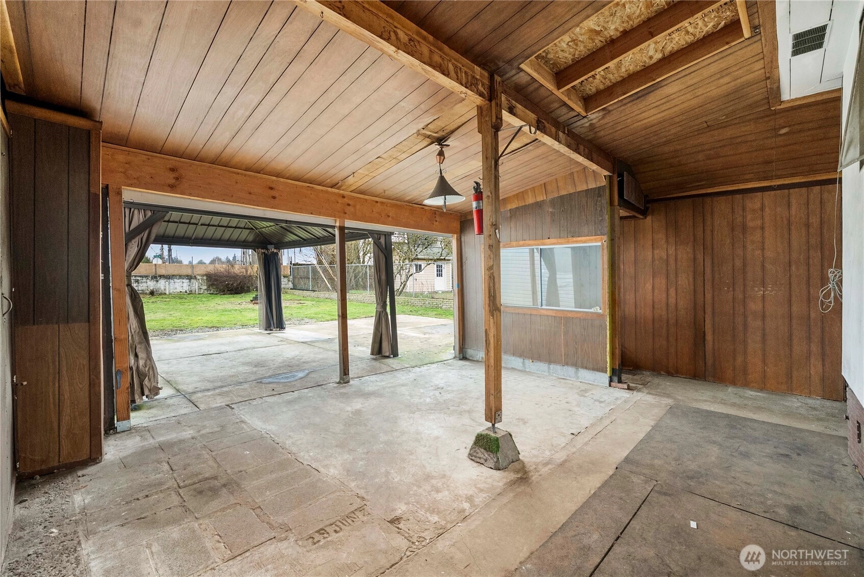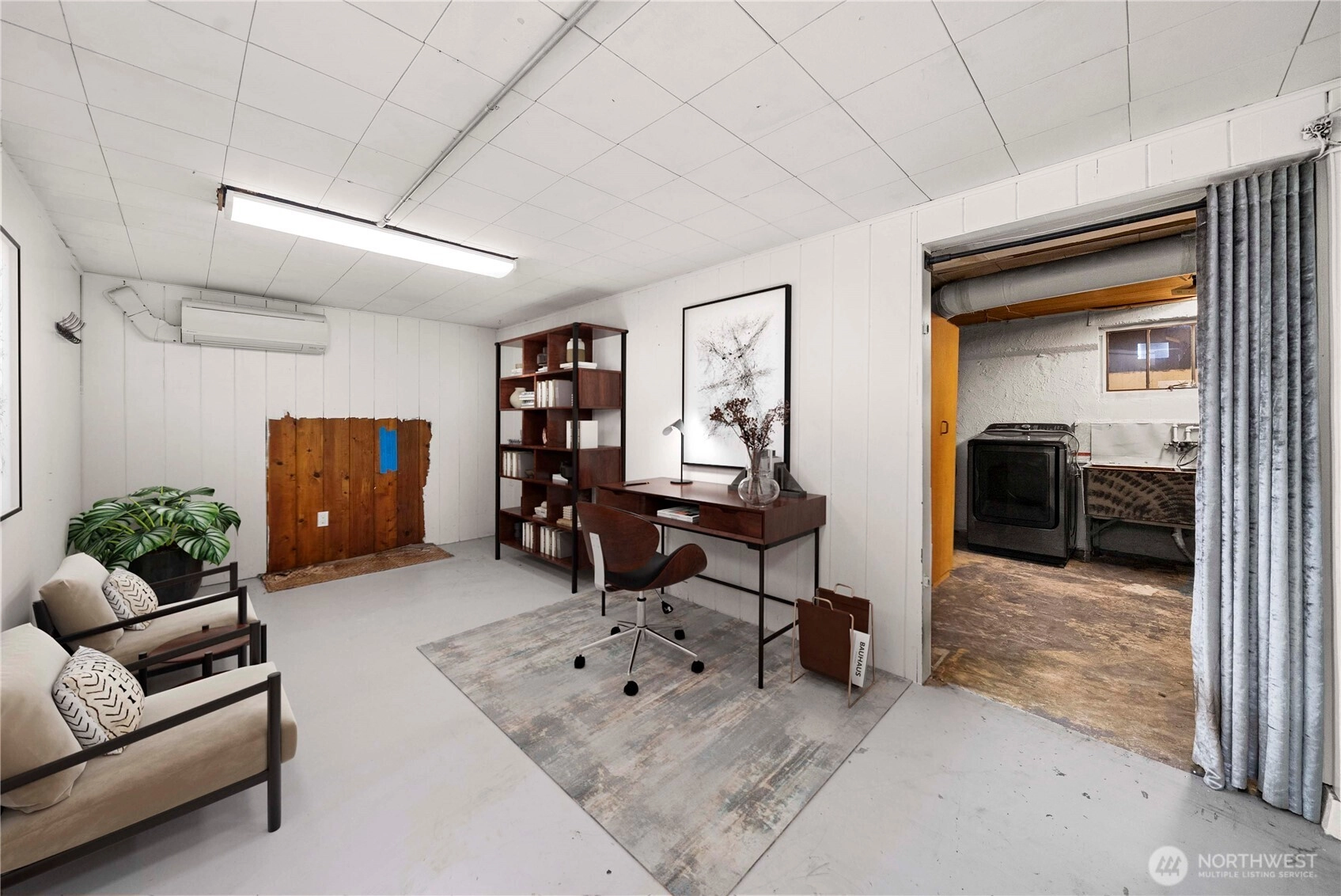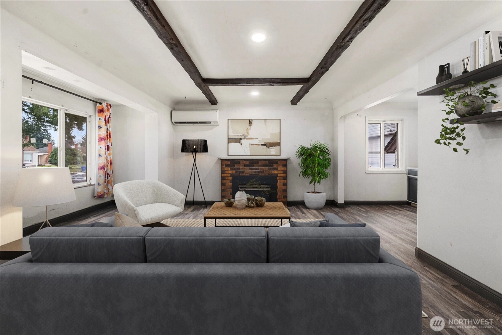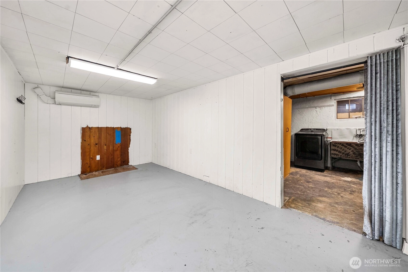 Detached garage with WORKSHOP! Home offers a lot of potential w/ 2 beds and 3/4 bath on the main level. Efficient mini-splits provide heating & cooling comfort in all rooms. Enter into living room w/ wood-burning insert, brick surround, and classic beam detailing on the ceiling. NEW laminate flooring thru-out the home! Practical kitchen offers newer stainless fridge & range. Bathroom fully RENOVATED to include roll-in shower. Basement is mostly finished with 2 additional mini-splits that could easily work as office or bedroom space. Additional utility room w/ sink and extra storage room w/ door exiting to backyard on basement level. Large, covered back patio is great for entertaining and fully-fenced yard offers room to play, PLUS separately fenced garden area. Home needs a little love and is priced accordingly.