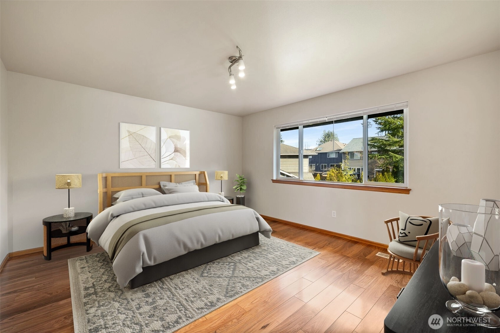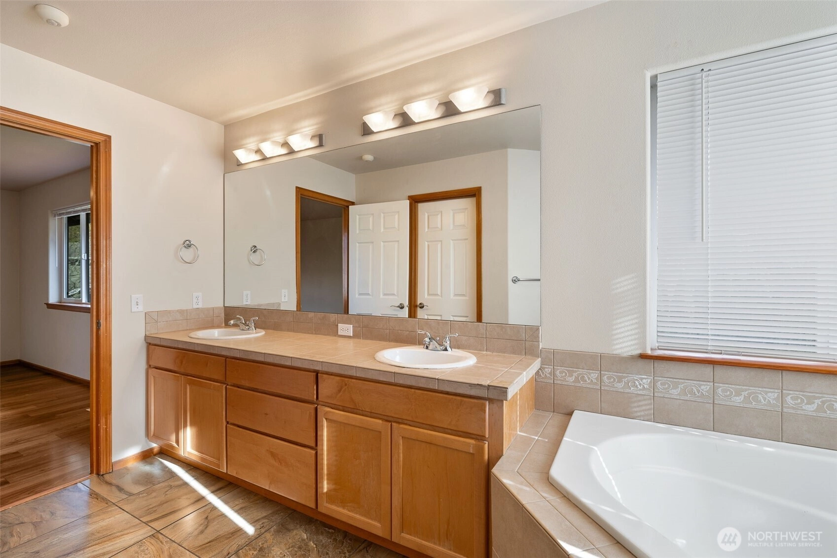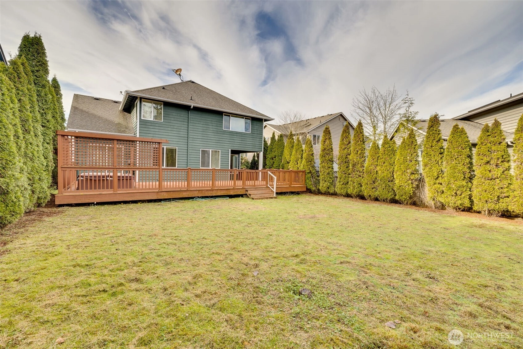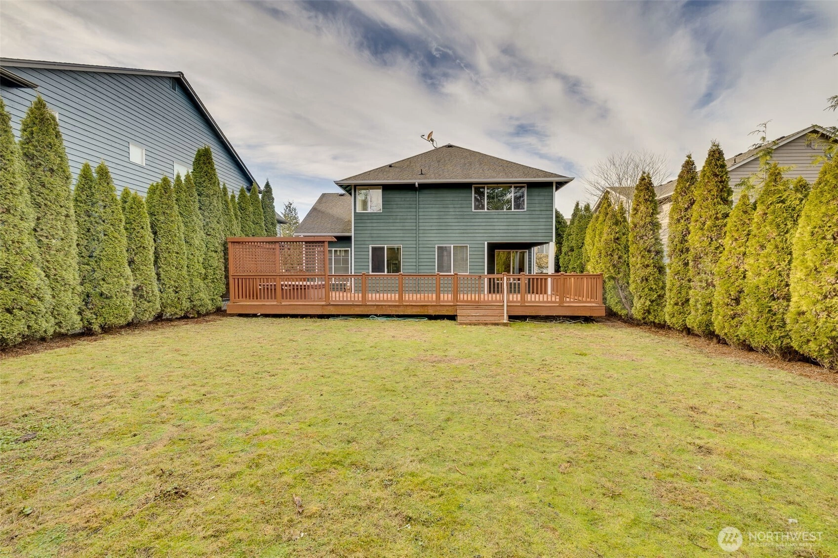 One of the largest lots in the community at over 7400 sqft! Discover this stunning 4-bedroom + den, 2.5-bathroom home offering 2,481 square feet in the desirable Copper Creek community. Perched at the end of a quiet cul-de-sac, this residence features cathedral ceilings and abundant natural light creating an inviting atmosphere throughout. Step inside to experience elegant vaulted ceilings, and beautiful ceramic tile, hardwood, and laminate flooring. The well-appointed kitchen includes dishwasher, disposal, microwave, range/oven, and refrigerator. Premium Outdoor Living: Unwind in your private hot tub – perfect for relaxation or entertaining guests and a house-width deck. The property boasts the largest yard in the community, providing exceptional space for gardening, play, pets, or future outdoor projects. Located in the heart of Bothell with easy access to shopping, dining, parks, and major commuter routes. This is more than a home – it's a lifestyle. Don't miss your opportunity to own the most spacious outdoor retreat in Copper Creek!