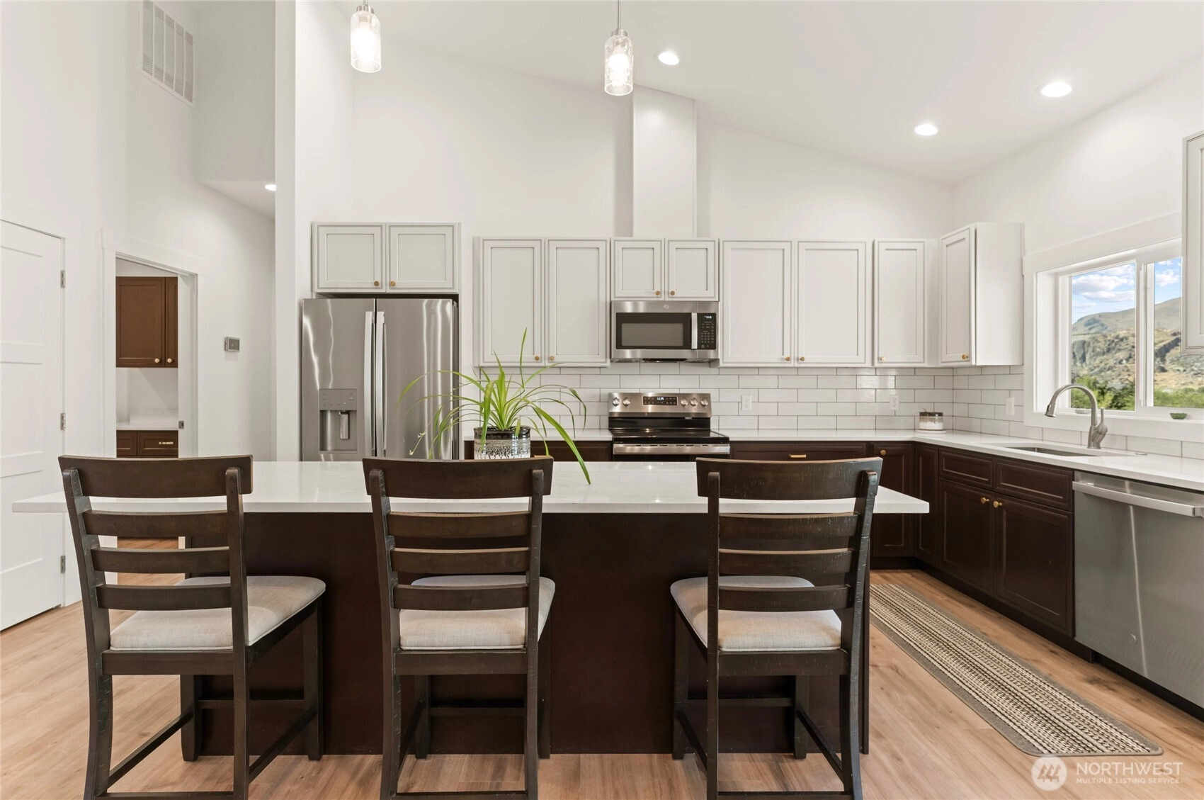 DREAM HOME OVERLOOKING THE COLUMBIA RIVER AND ONLY MINUTES TO LAKE CHELAN. Enjoy panoramic river views from this dream home on over an acre in the desirable Columbia Riverfront community of Beebe Ranch. This estate features a one-level main residence plus a private, fully sustainable guest suite above the detached garage. Thoughtful design and high-end features throughout. Separate living quarters offer added value and flexibility with room for guests, or a private remote work area. With both attached and detached garages, there's plenty of room for vehicles and all your toys. Relax on the stamped concrete patio while taking in the stunning river views. Design your perfect backyard oasis with plenty of room for a pool. Only one block from the river, with the possibility of purchasing a boat slip from the community marina.