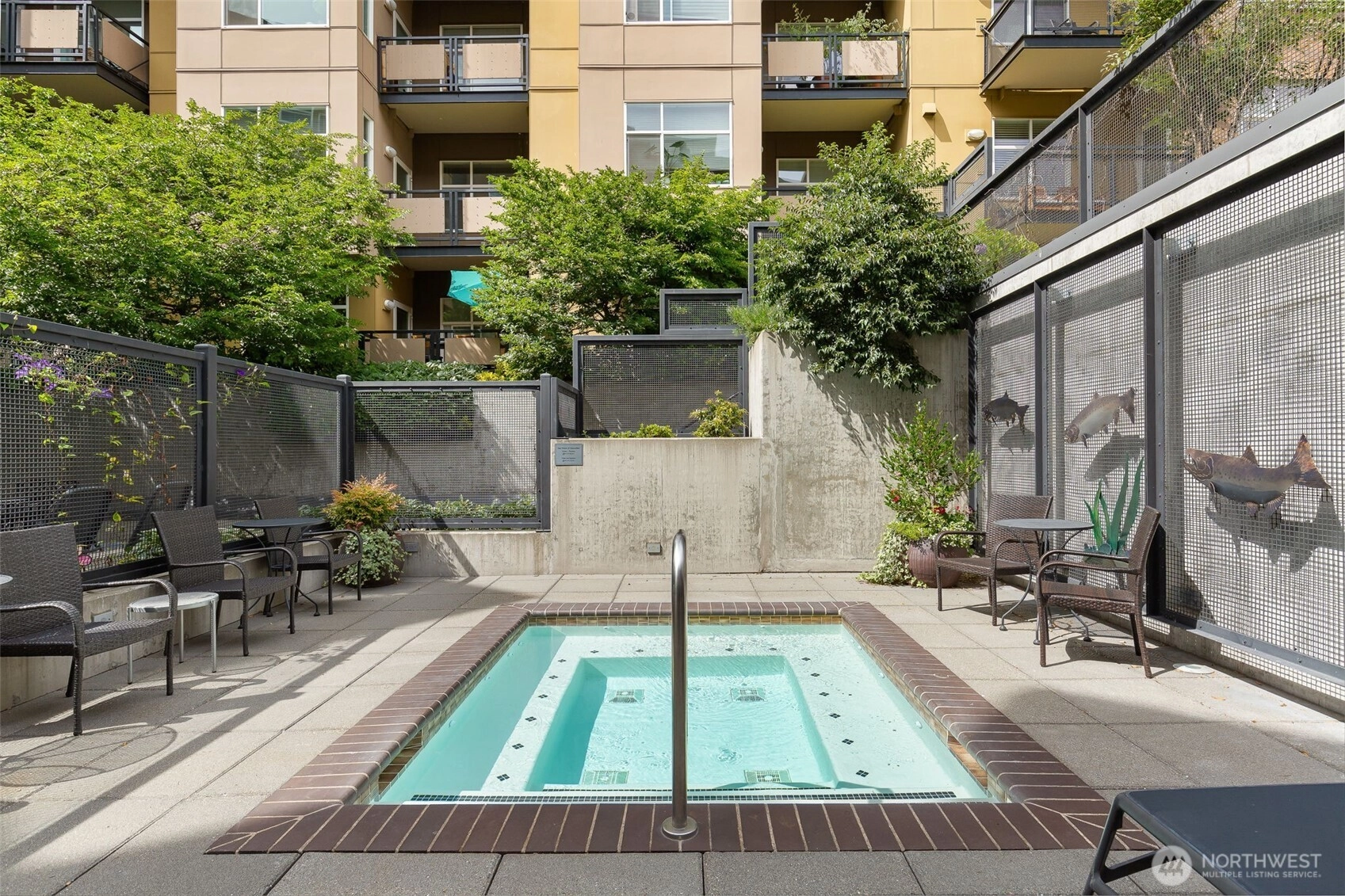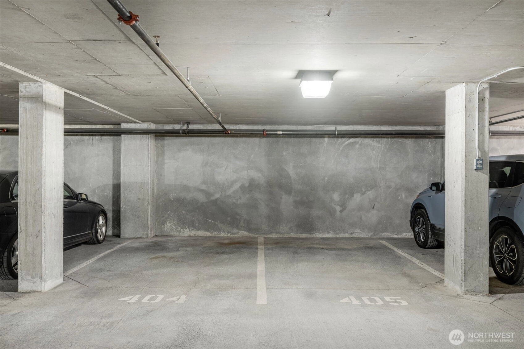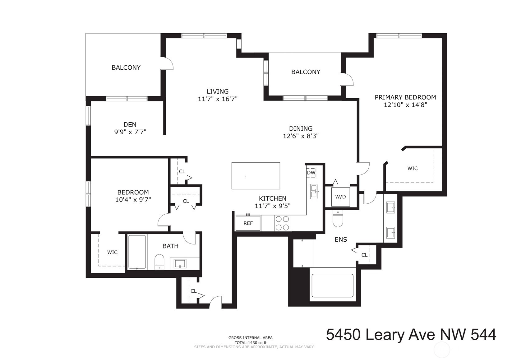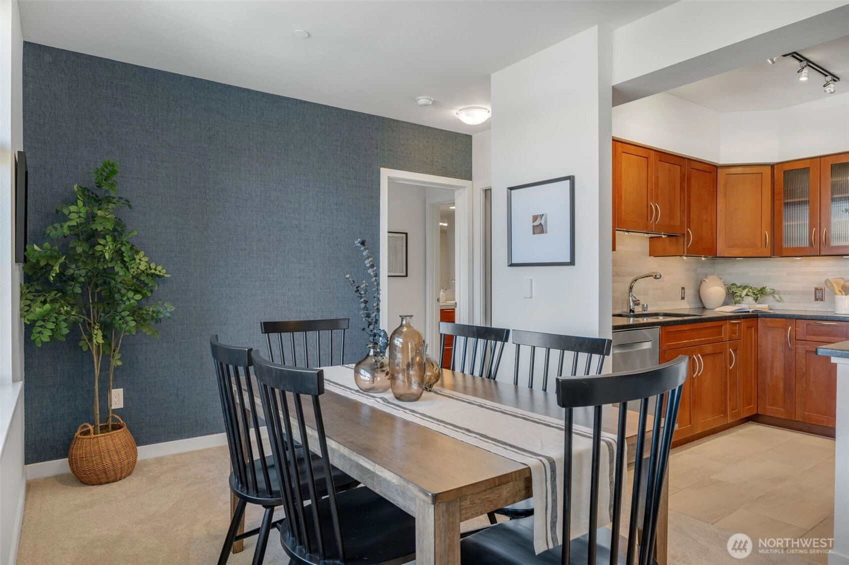 Welcome to Canal Station North. This rare 2-bed + den, 2-bath residence is perfectly positioned in the heart of Ballard—just steps from top-rated coffee, dining, boutique shopping, the Sunday Farmers Market, and Golden Gardens. Perched on the 5th floor, this light-filled home showcases the community’s largest floor plan with just one shared wall, expansive northeast-facing windows, and two private balconies for effortless indoor-outdoor living. An open-plan living area flows beautifully into the dining space and a sleek island kitchen with bar-top seating, featuring honed granite countertops, shaker-style cabinetry, and stainless steel appliances—ideal for entertaining or everyday ease. The primary suite is a serene retreat with a spa-inspired five-piece ensuite bath, while the second bedroom is thoughtfully outfitted with a Murphy bed, making it equally suited as a guest room or flex space. Both bedrooms offer walk-in closets, complemented by ample additional storage throughout the home. The versatile den functions perfectly as a home office or third non-conforming bedroom. Recent updates include fresh interior paint, new carpet, and custom blinds. Everyday convenience is elevated with an in-unit washer/dryer, two side-by-side secure garage parking spaces near the elevators, and an 85sf storage unit. Additional highlights include a strong HOA, no rental cap (90-day minimum), resort-style amenities, and an exceptional Walk Score of 97—delivering the best of Ballard living.