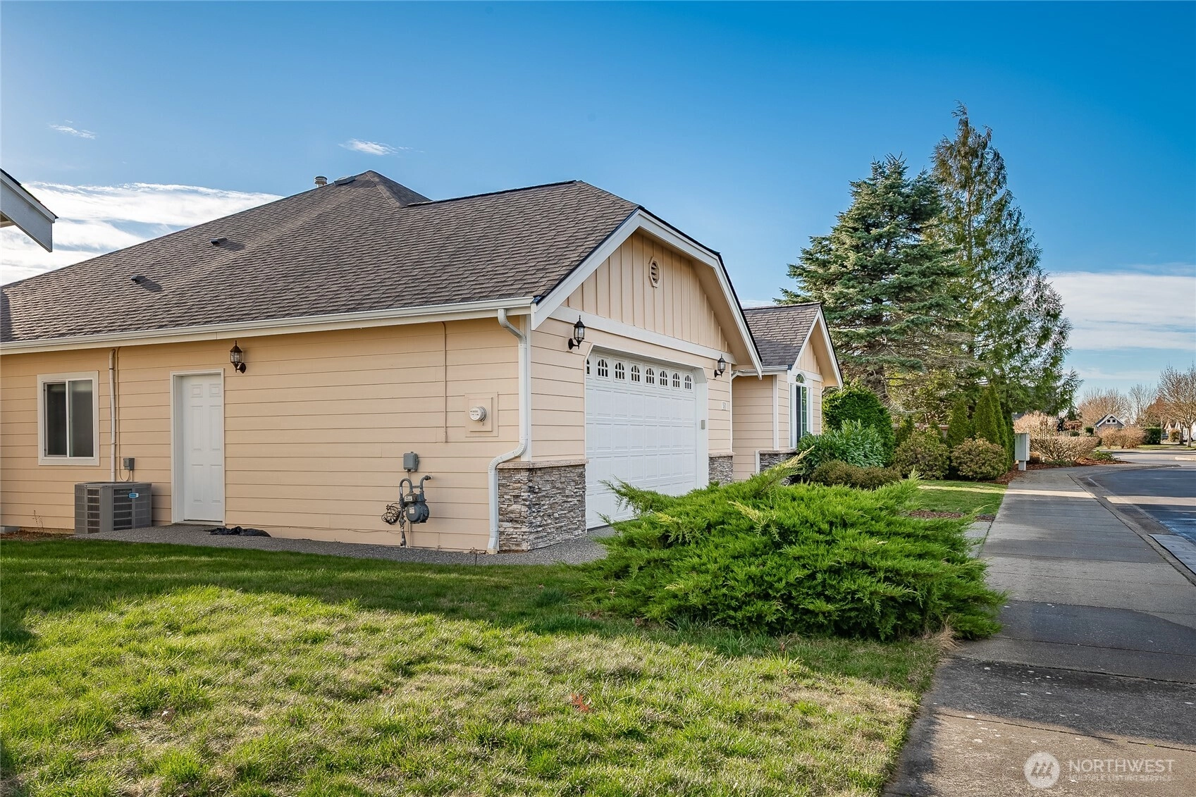 Enjoy easy living in this well-maintained, single-level home with 0 stairs! The thoughtful layout offers two bedrooms and a full bath on one side, with a private primary suite featuring a large walk-in closet, a luxurious bathroom with granite countertops, double sinks, a soaker tub and a separate shower on the other. The open-concept main living area is filled with natural southern light and includes a cozy gas fireplace. The kitchen boasts granite countertops, a large island and a walk-in pantry. New carpet throughout! A spacious 2-car garage offers ample storage and includes an enclosed bonus space perfect for a salon or music studio! Addt'l features include A/C, a covered back patio, and a private low-maintenance backyard with partial fence and garden shed. Inexpensive HOA features an enclosed lot where you can store your RV or boat!