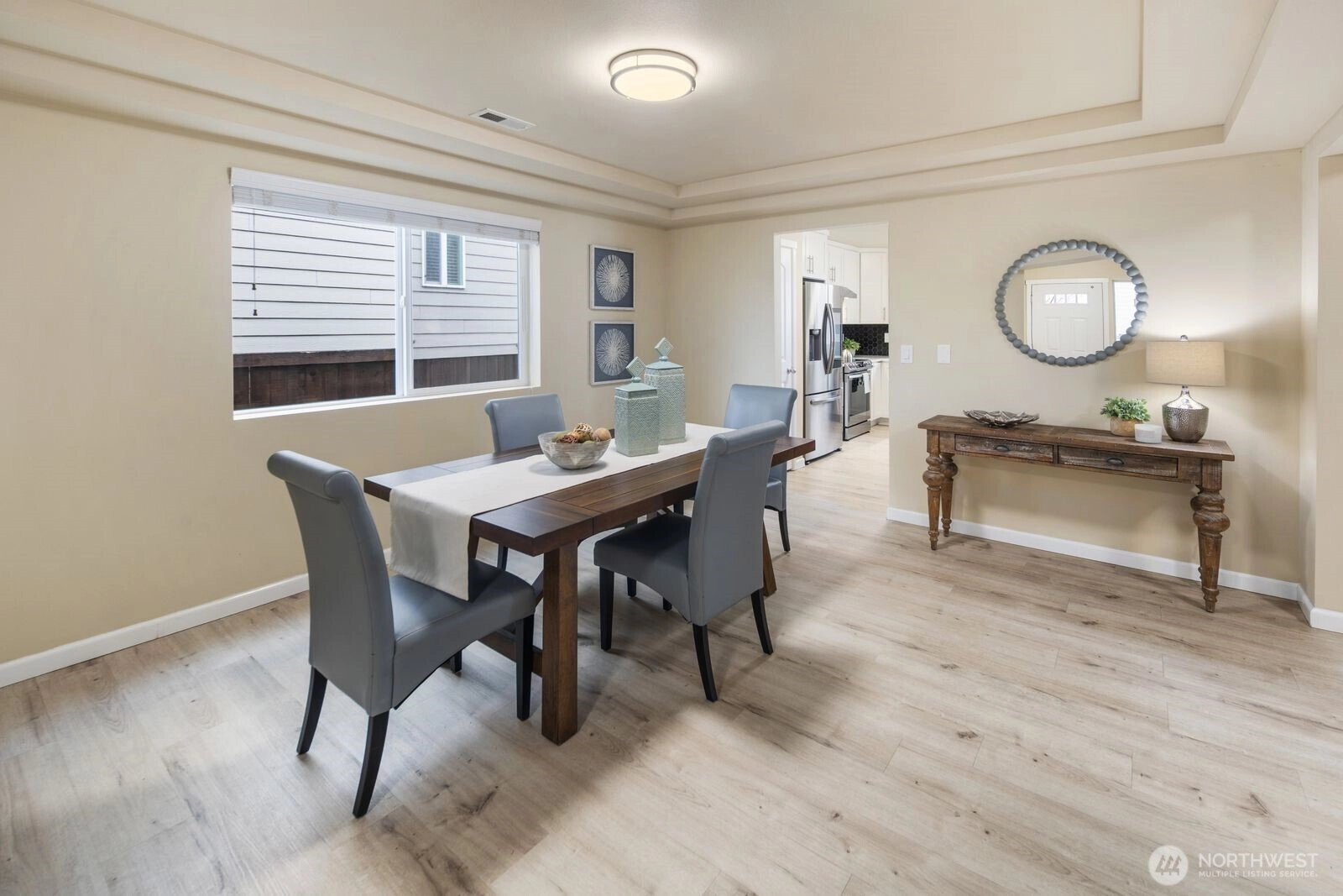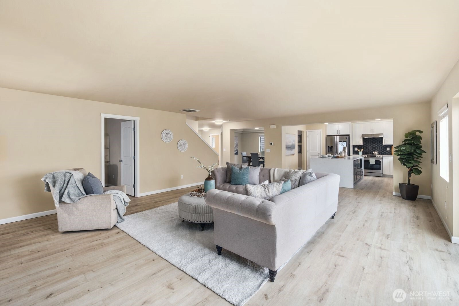 Lovely move-in ready home nestled in a quiet cul-de-sac! This spacious 5-bedroom, 2.5-bath residence offers 3,361 sq. ft. of comfortable living space featuring an office on the main floor, a large bonus room upstairs, and an expansive mezzanine hallway, generous primary en-suite. The open-concept kitchen and living areas flow seamlessly to the backyard, which overlooks a greenery - perfect for relaxing or entertaining. Enjoy modern comforts such as air conditioning, freshly repainted interiors, and stainless steel appliances. A generous 3-car garage provides ample parking and storage. Conveniently located near 272nd St. Light Rail for easy access to Seattle and Sea-Tac Airport, with close proximity to I-5, public parks, and local amenities.