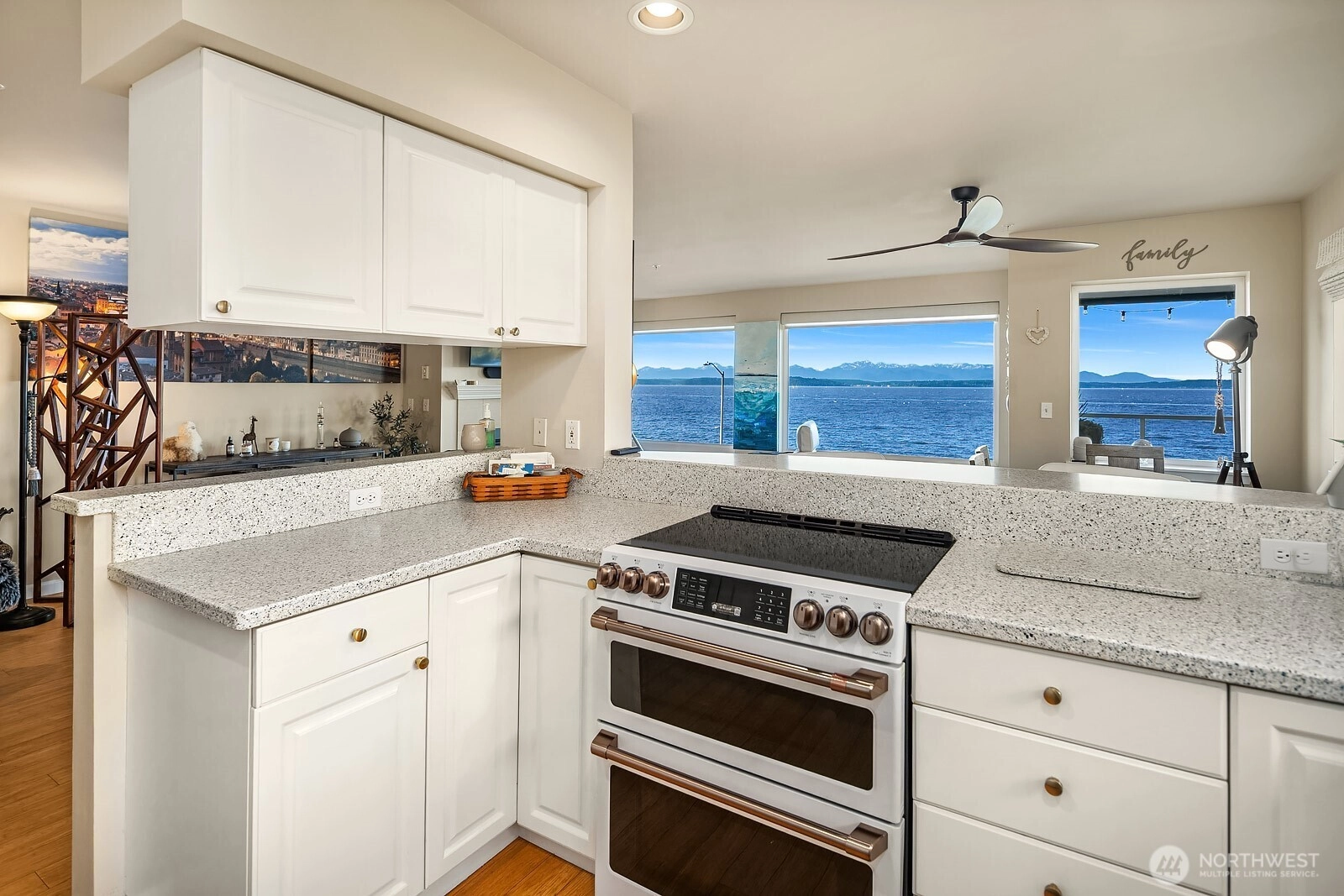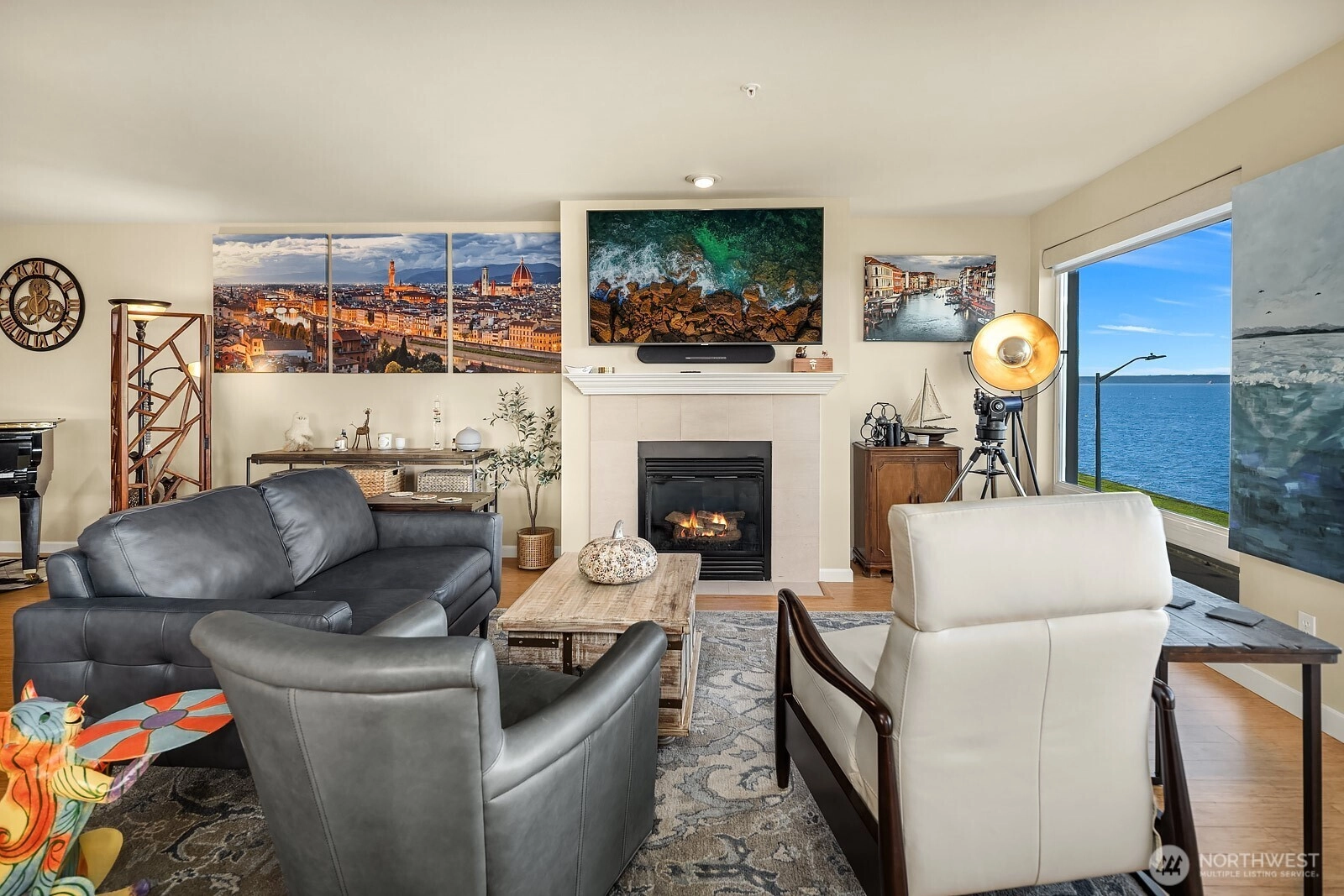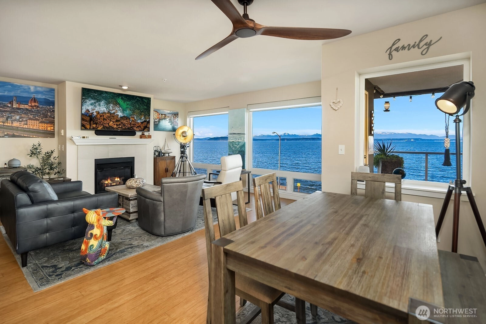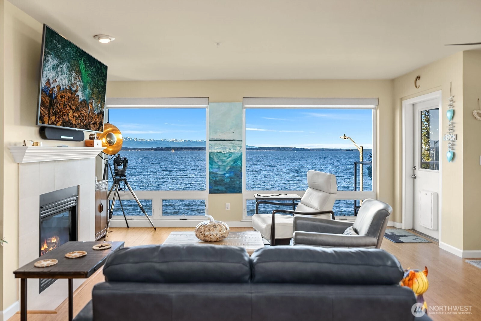 Marvel at jaw dropping, unobstructed views of the Puget Sound and snowcapped Olympic Mountains from this exceptional 2bed/2bath West Seattle retreat. Designed to showcase the scenery, open sightlines frame the water from nearly every room, delivering a front row seat to passing ferries, playful seals, and the occasional pod of orcas. Wake up to shimmering water, fall asleep to salty sea air, and savor golden sunsets from your expansive private deck overlooking the iconic Alki Trail. This thoughtfully designed residence offers over 1,300 square feet of light filled living, featuring a spacious primary suite with five piece bath, an open kitchen with eating space, formal dining area, and a generous living room anchored by a cozy gas fireplace. Custom closet systems throughout provide effortless organization and storage. Enjoy the convenience of two secured parking spaces with EV Supercharger, additional storage, and one of the most coveted locations along the Sound. Just outside your door, the 2.5 mile paved Alki Trail invites morning jogs, sunset strolls, beach volleyball, picnics, and evenings around fire pits. Minutes to Alki Beach, waterfront dining along the Alki Strip, and West Seattle’s vibrant California Avenue retail hub, yet only 15 minutes to Downtown Seattle.