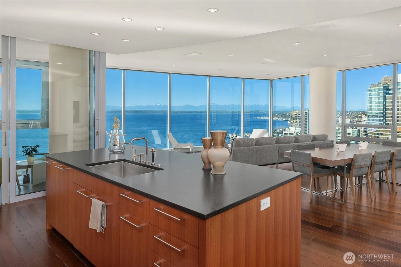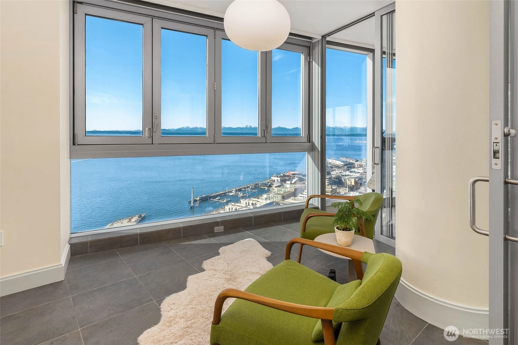 Sophisticated and refined design in this coveted NW corner home located at the award winning condominium Fifteen Twenty-One Second Avenue. Elegant art galleries for the passionate collector, gracious dining and living room for entertaining or taking in the views of Elliott Bay, Pike Place Market, Olympics and city skyline. Water and mountain views from both bedrooms located in opposite wings. Luxurious primary suite, spa bathroom, epicurean kitchen, media room, pantry, 3 parking spaces with EV, coveted large work studio, wine cellar and large storage. Concierge 24/7, new waterfront park, new aquarium, arts, restaurants, stadiums, retail and light rail. Rooftop terraces, BBq, gym, yoga, boardroom, skylounge.