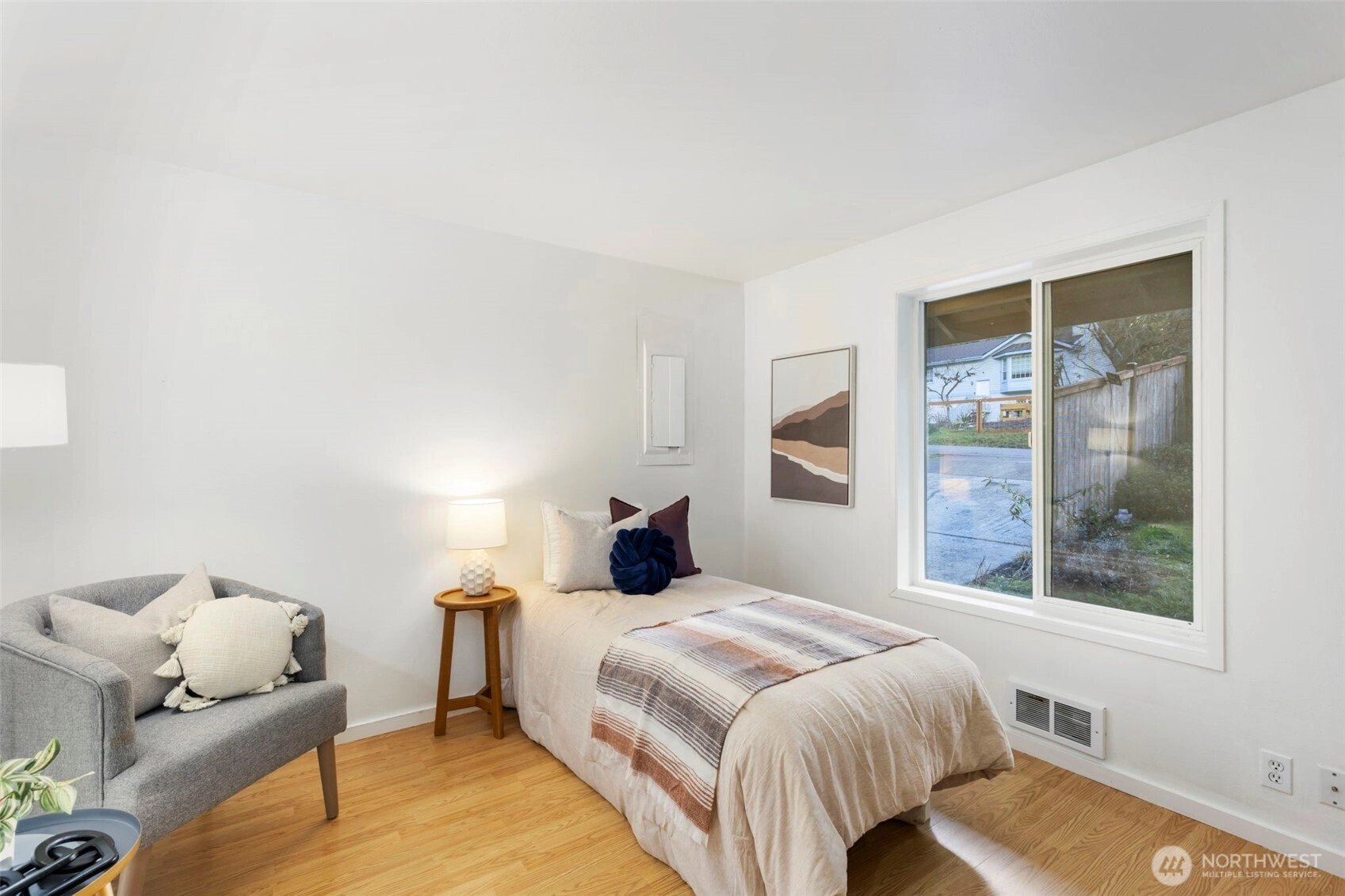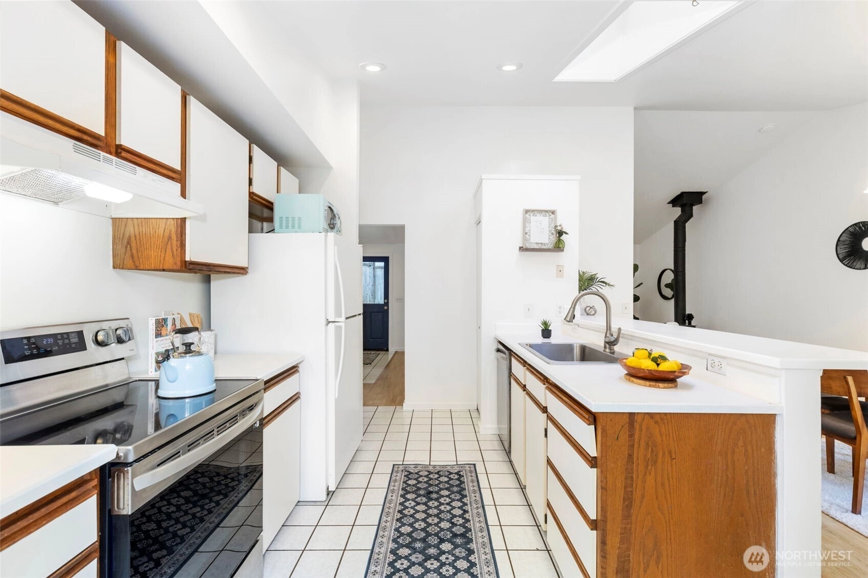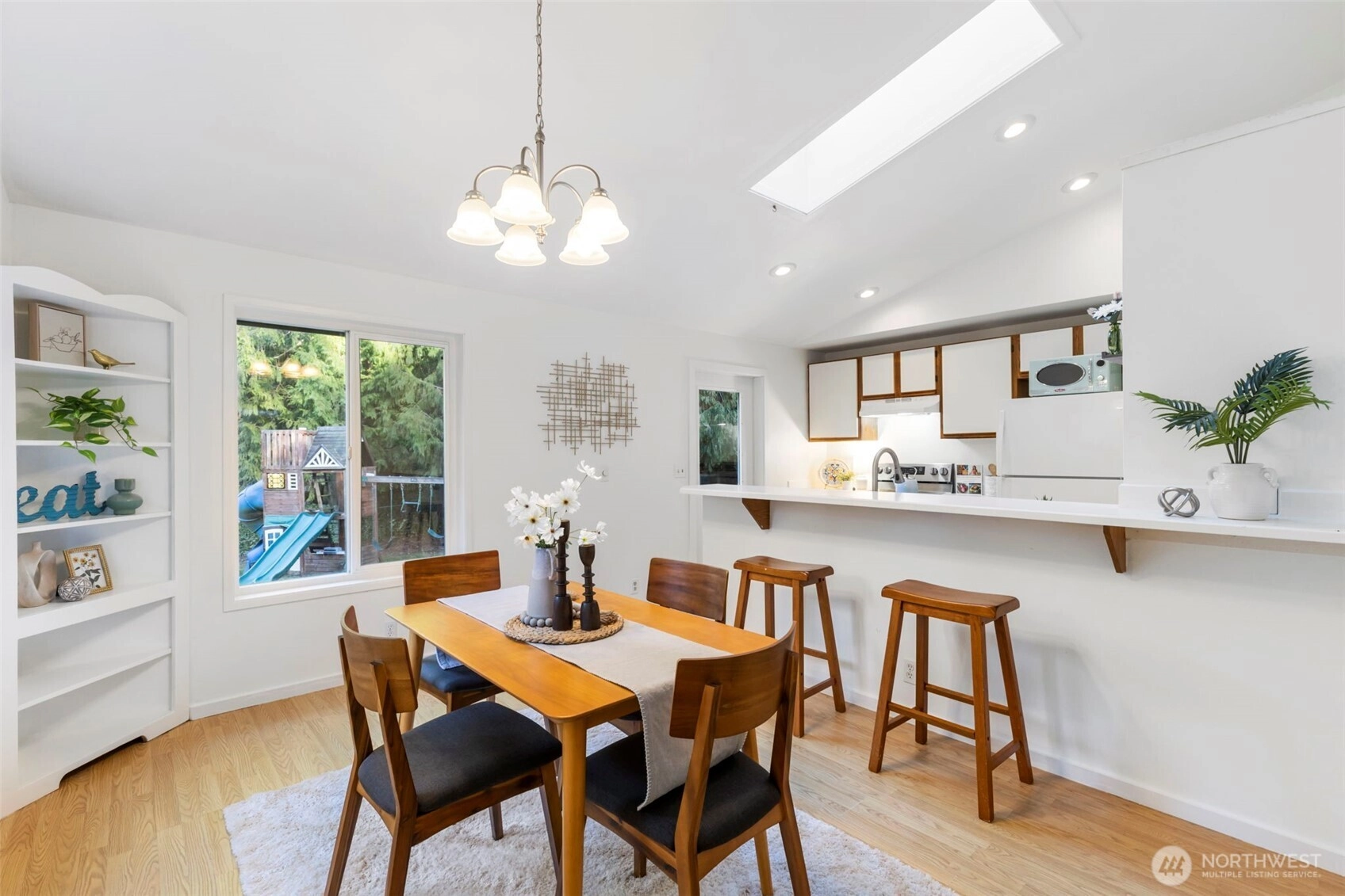 Charming 2-bedroom, 2 bath single level home in Miller Bay Estates! Inviting floorplan has open living area with cozy free-standing stove, vaulted ceilings, skylights and laminate flooring throughout. Spacious kitchen with breakfast bar and dining area. Primary bedroom with two closets and attached full bath. Additional guest bedroom and full bathroom. Private backyard with patio, attached garage, and large shed for extra storage. Miller Bay Estates community features private clubhouse, playground, basketball court, and pool – perfect for enjoying PNW summers! Great location close to ferries, highways, local shopping and dining.
