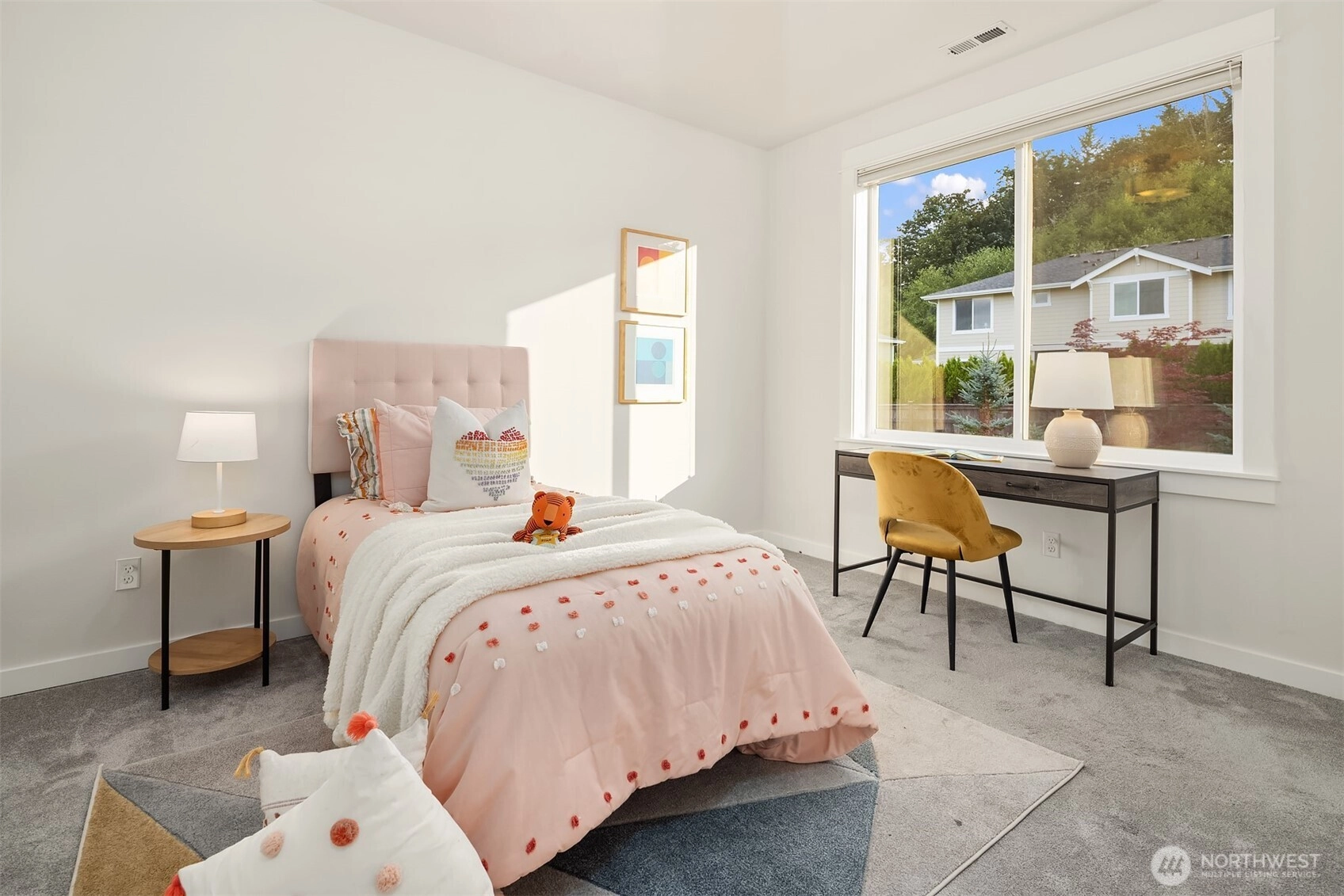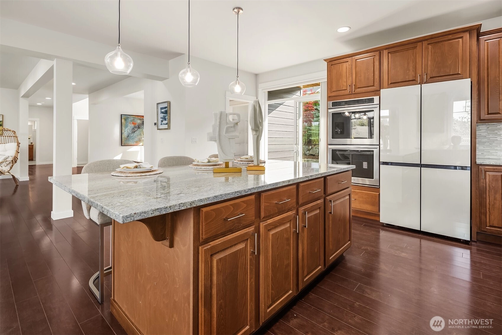 Welcome to this stunning 4-bedroom, 3.25-bath, 4,000 sq ft home in sought-after South Bothell. Built in 2014 and meticulously maintained, this residence offers a spacious open floor plan filled with natural light and sweeping views. The main level features a gourmet kitchen and seamless flow to the living and dining areas, perfect for entertaining. Step onto the newly updated oversized deck to enjoy year-round outdoor living. The level backyard is a private retreat with a serene water feature, mature landscaping, and plenty of usable space. Tucked in a private, friendly community, this home is close to Totem Lake Village, vibrant Bothell Downtown, and offers easy I-405 access—ideal for modern living.