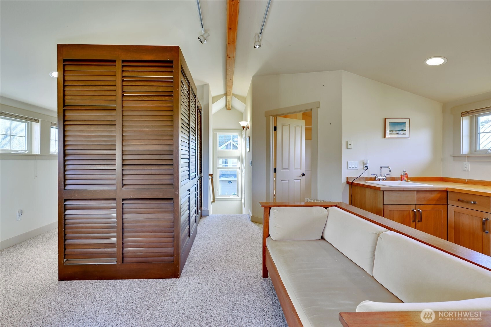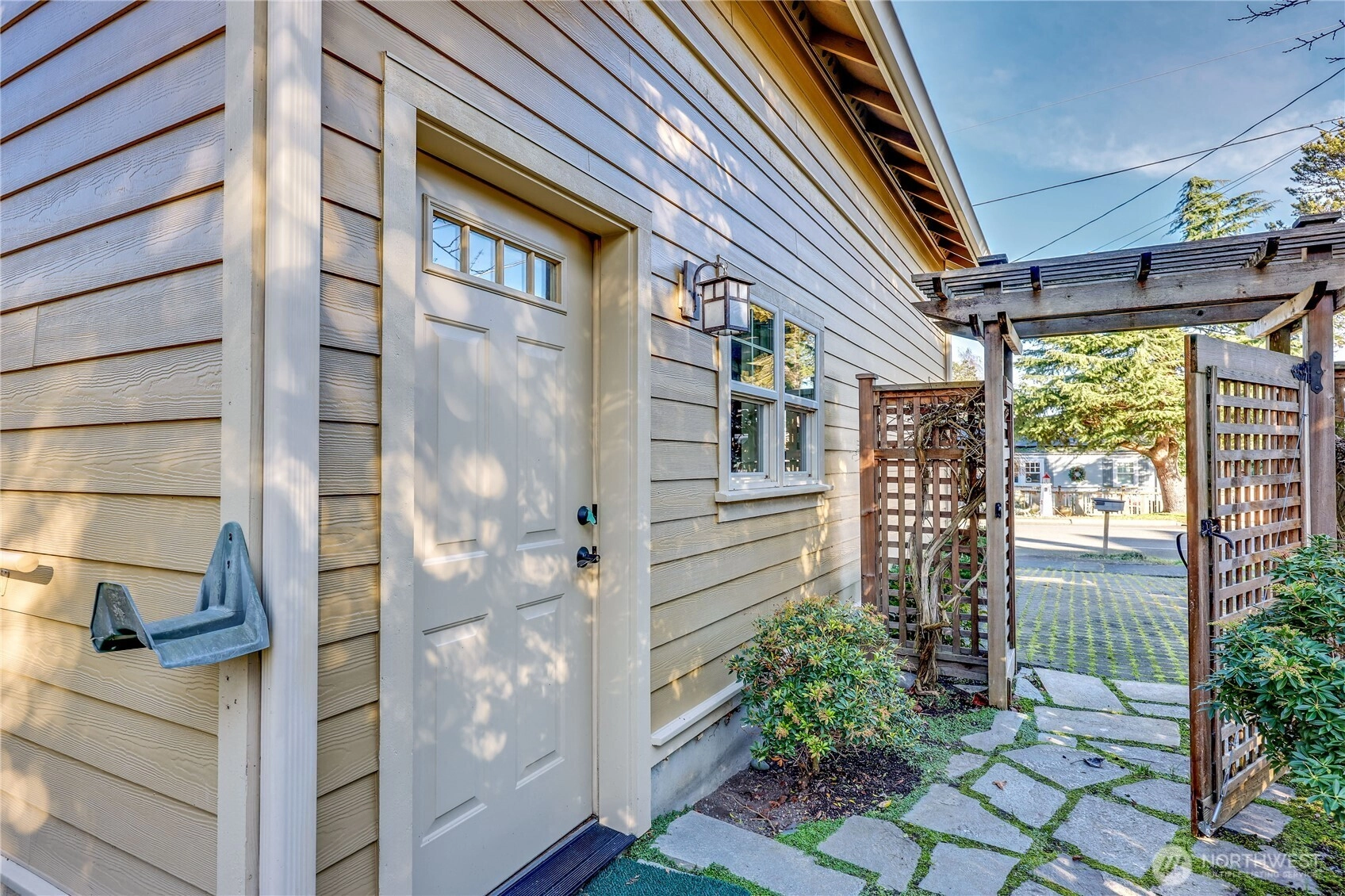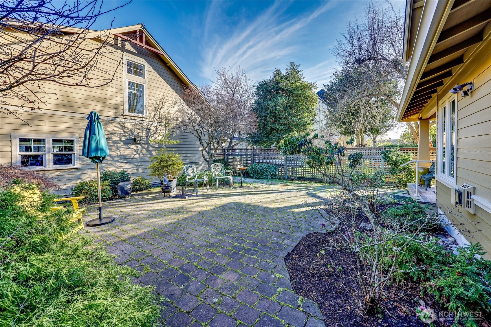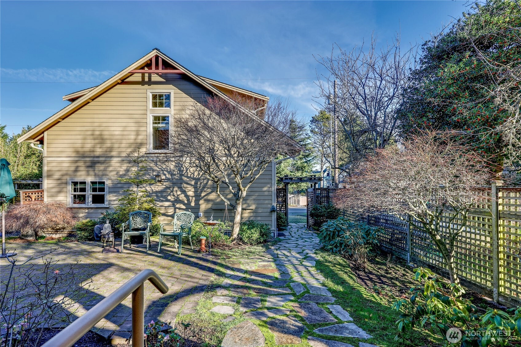 Uptown Classic 3 bedroom craftsman style home privately tucked away, but easily walkable to downtown, uptown central, beaches and 2 blocks from Chetzemoka City Park. Built in 2001 by LD Richert, this is a custom high end build with many outstanding features, including a very private large courtyard, a large 2 car garage with work space, and a fabulous loft (~530 sqft.)studio, with a full bath, large storage closet, propane stove, and filtered marine views. The design concept here provides for a low maintenance, ease of care home that allows for main floor living, and totally separate studio living space with many options and uses all tucked in for privacy with a wonderful courtyard as the centerpiece.