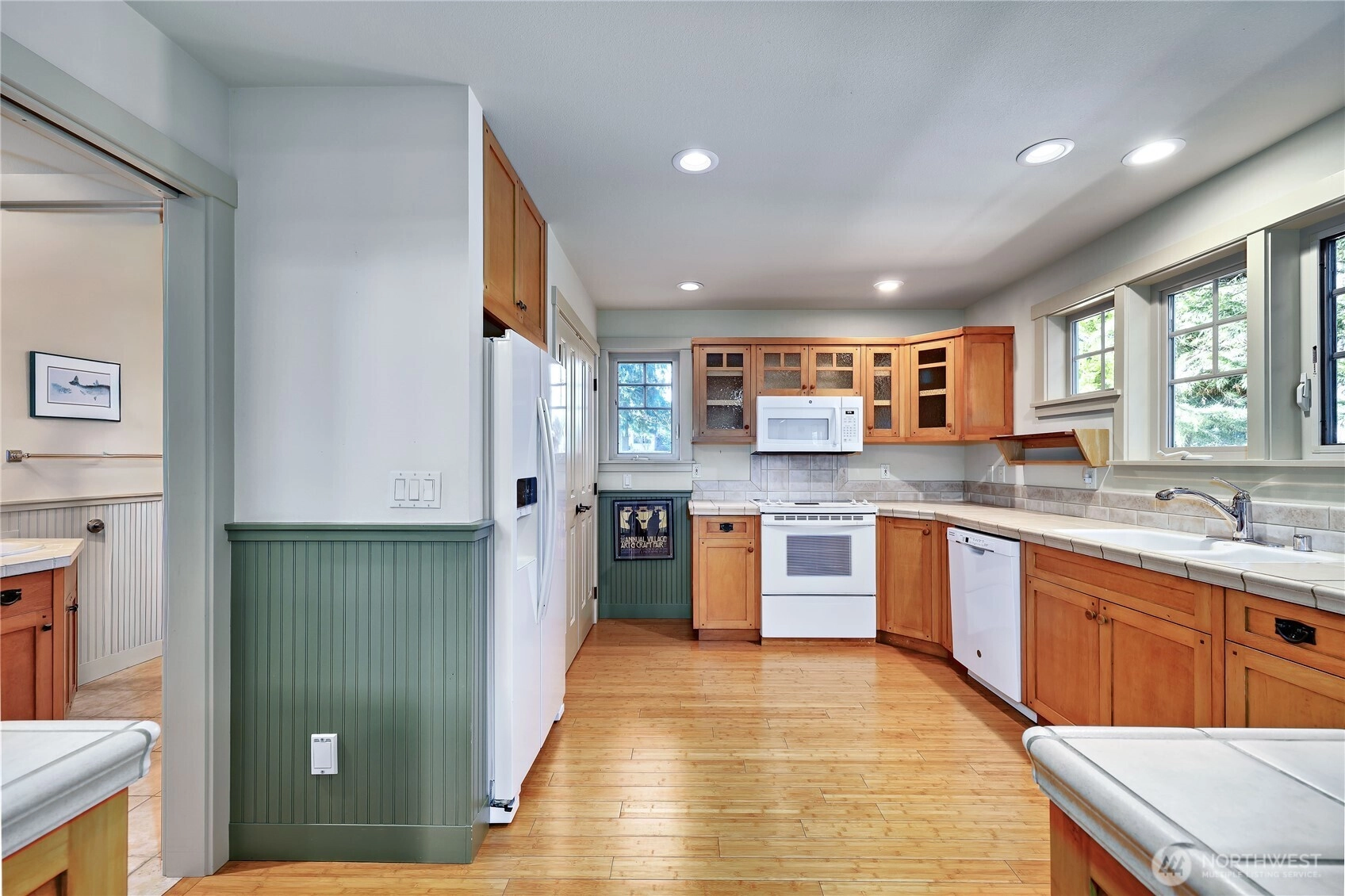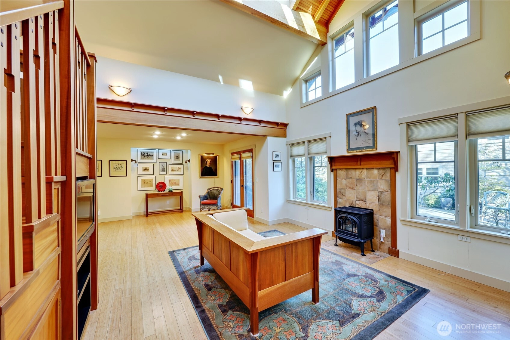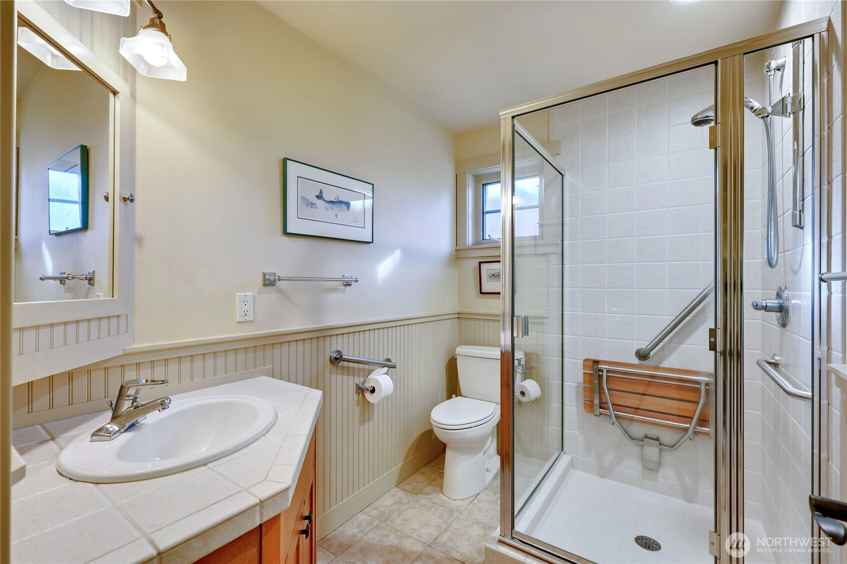Uptown Classic 3 bedroom craftsman style home privately tucked away, but easily walkable to downtown, uptown central, beaches and 2 blocks from Chetzemoka City Park. Built in 2001 by LD Richert, this is a custom high end build with many outstanding features, including a very private large courtyard, a large 2 car garage with work space, and a fabulous loft (~530 sqft.)studio, with a full bath, large storage closet, propane stove, and filtered marine views. The design concept here provides for a low maintenance, ease of care home that allows for main floor living, and totally separate studio living space with many options and uses all tucked in for privacy with a wonderful courtyard as the centerpiece.