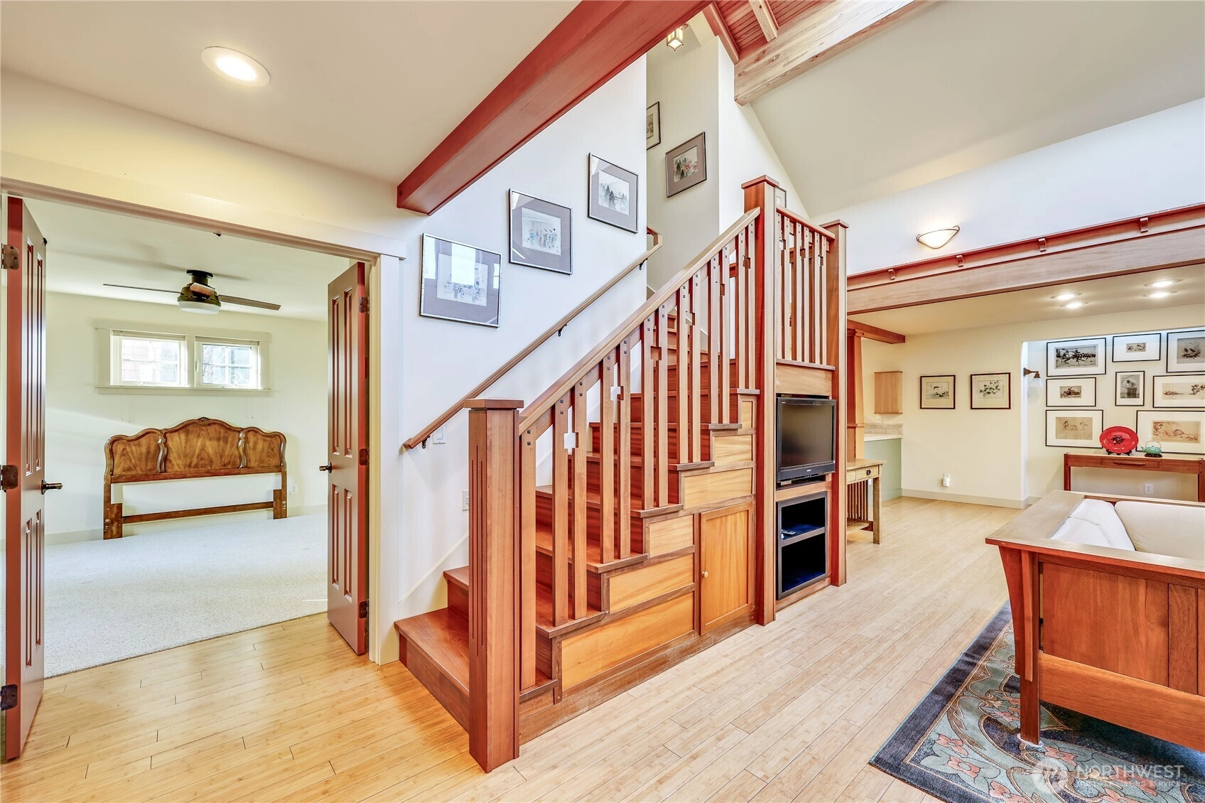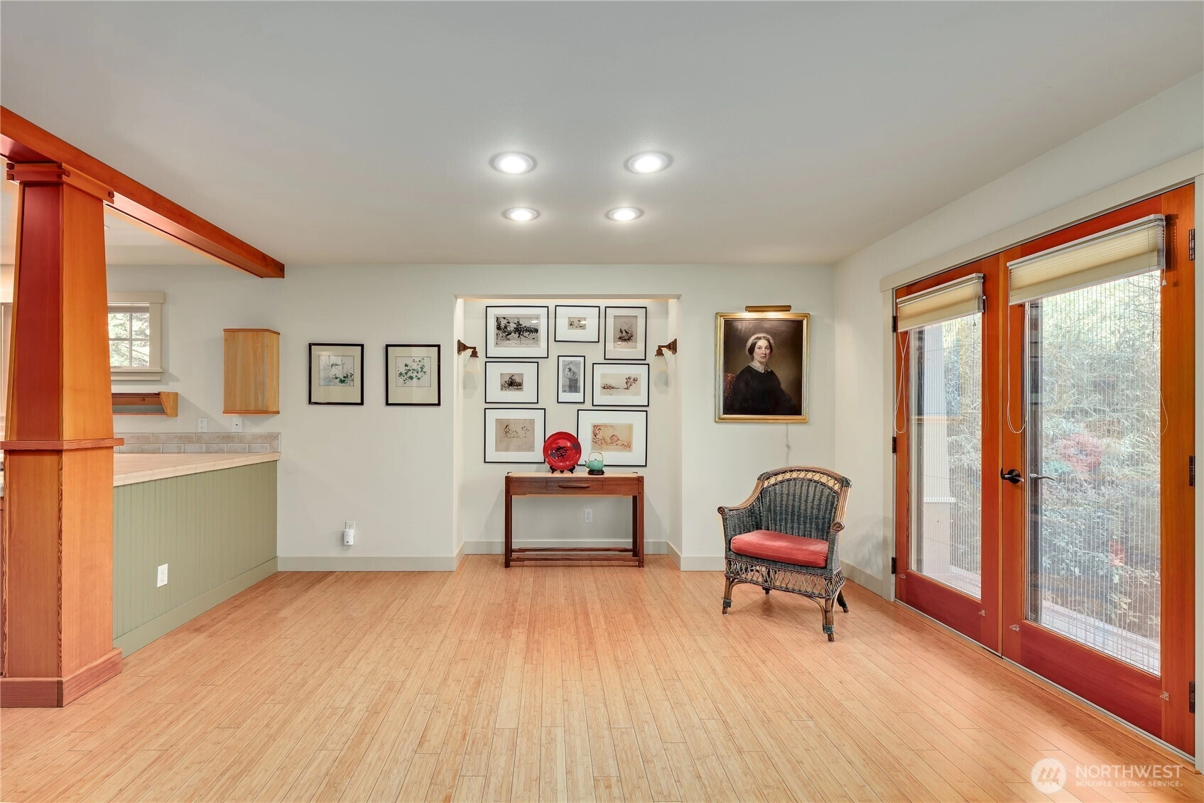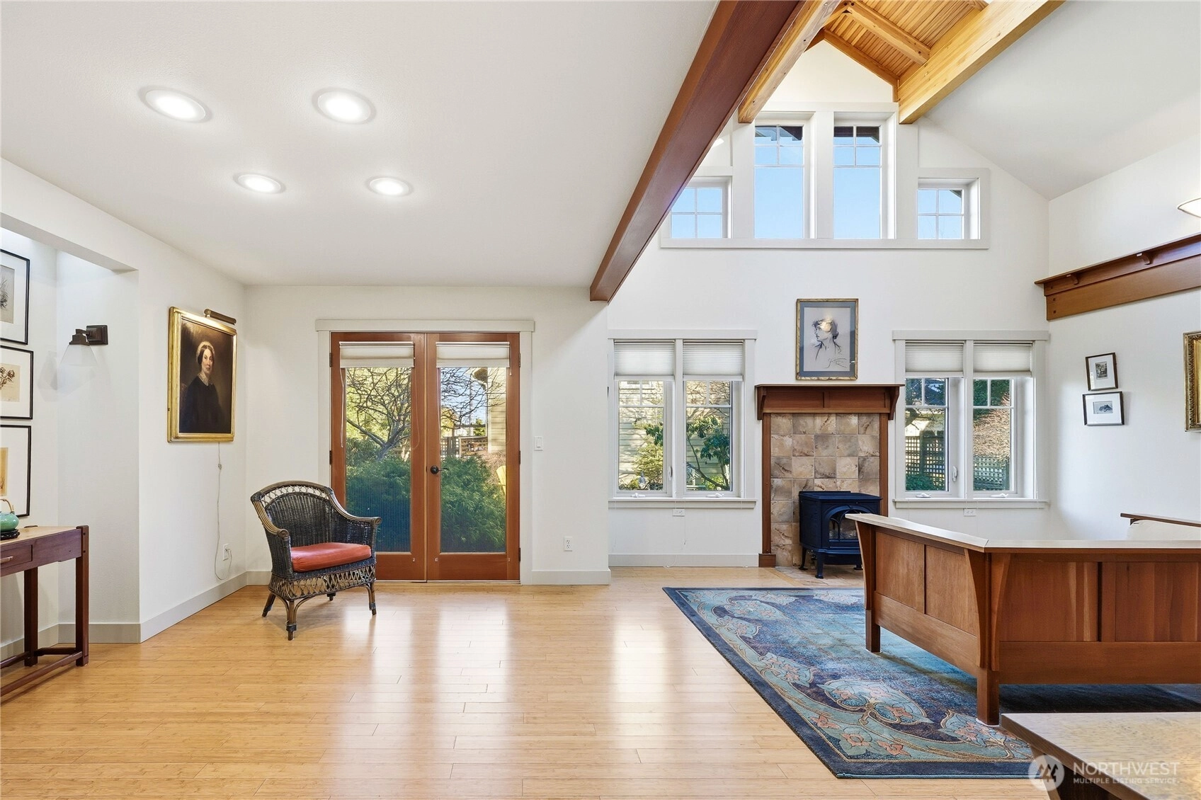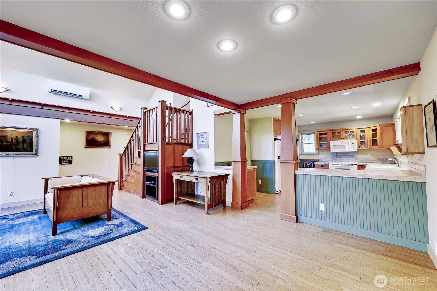 Uptown Classic 3 bedroom craftsman style home privately tucked away, but easily walkable to downtown, uptown central, beaches and 2 blocks from Chetzemoka City Park. Built in 2001 by LD Richert, this is a custom high end build with many outstanding features, including a very private large courtyard, a large 2 car garage with work space, and a fabulous loft (~530 sqft.)studio, with a full bath, large storage closet, propane stove, and filtered marine views. The design concept here provides for a low maintenance, ease of care home that allows for main floor living, and totally separate studio living space with many options and uses all tucked in for privacy with a wonderful courtyard as the centerpiece.