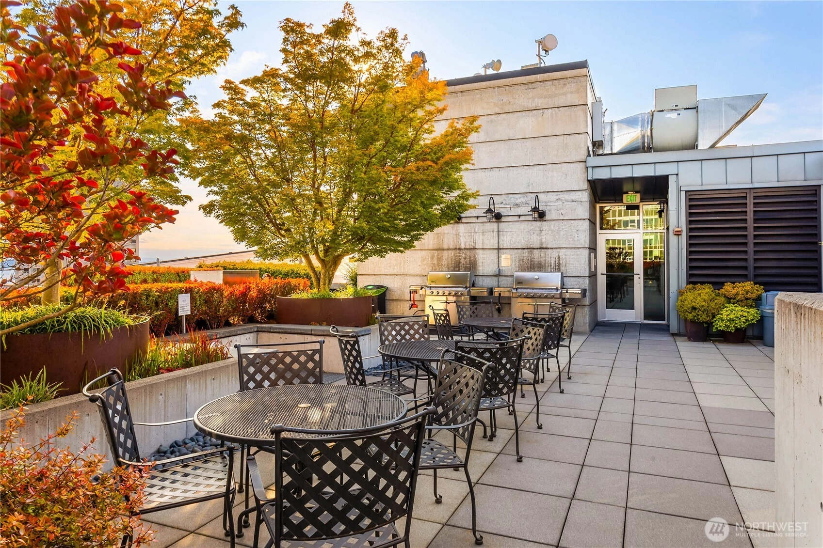 Experience the epitome of city living in this near 1000SF 1BD+Den at Mosler Lofts. This home features 10'ceilings, exposed concrete, & West-facing floor-to-ceiling windows opening to a private terrace oasis. The sleek kitchen boasts quartz counters, SS appliances w/gas stv, & great strg. The BD can remain open for intended loft-style vibes or enclosed as preferred, while the Den is ideal for a home office. EV-ready parking, motorcycle parking, private storage, & amenities incl- a rooftop deck w/Space Needle & sound views, 24-hr concierge, fitness & guest suite. Steps from the Olympic Sculpture Park, Climate Pledge & Pike Place, this home offers the best of Belltown, Lower Queen Anne & SLU living w/quick access to ALL major transit routes.