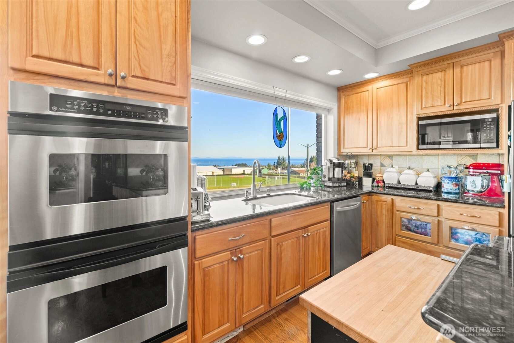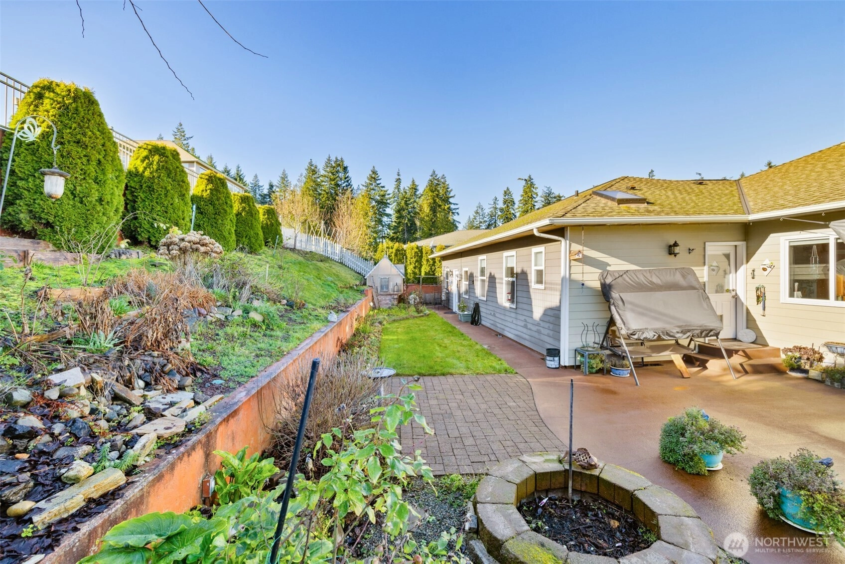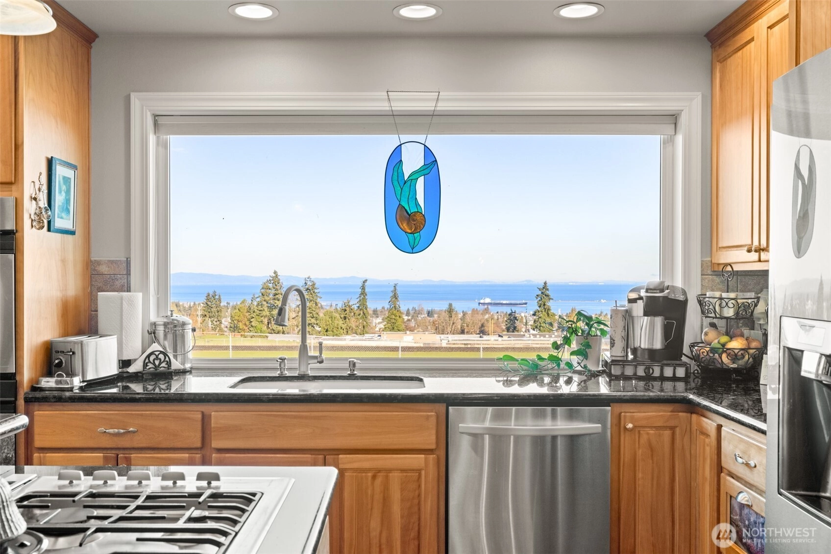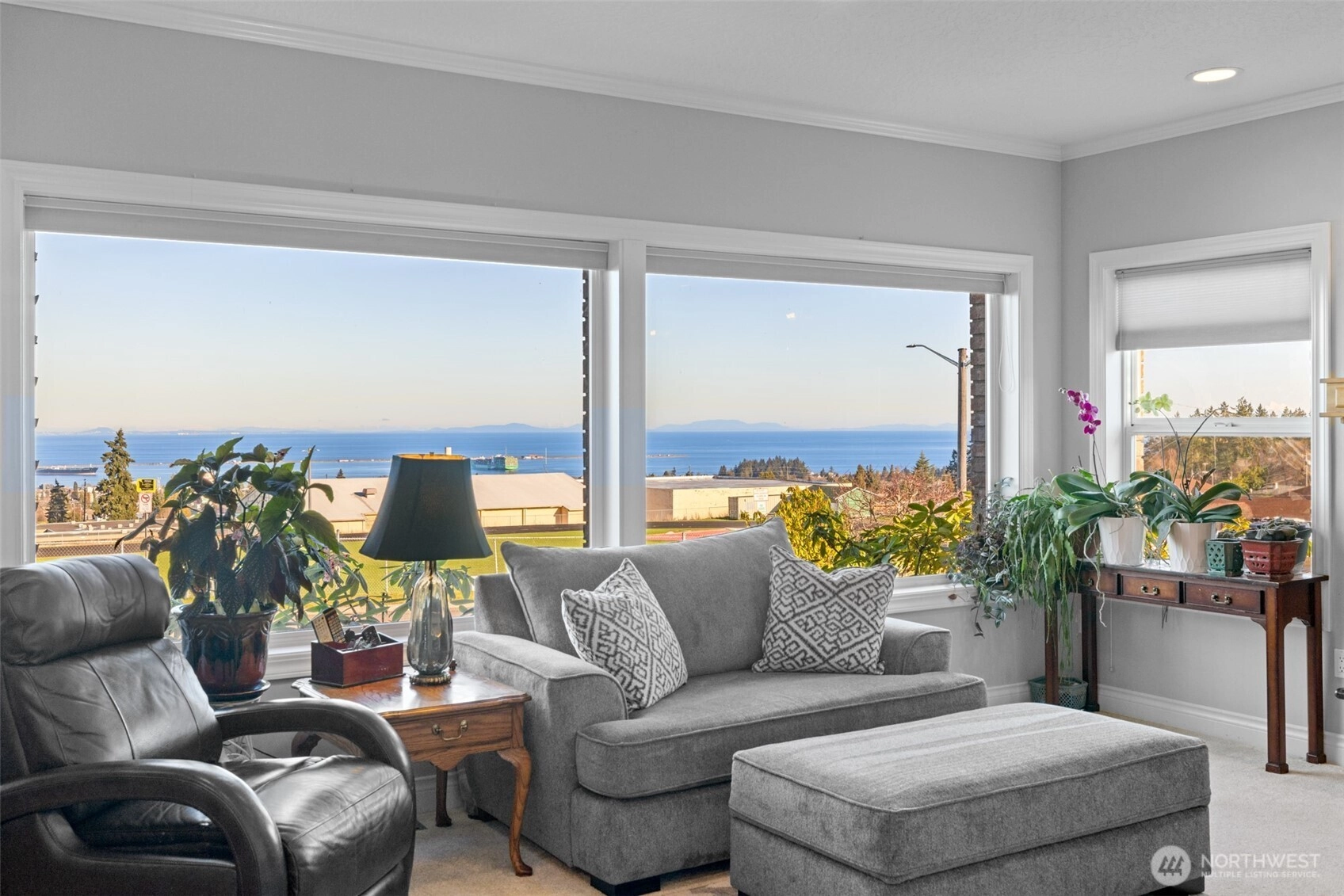 Enjoy beautiful views of the Strait from this spacious, well-maintained 3-bedroom, 2-bath home with 1,949 sq ft of comfortable living space. The thoughtful floor plan provides generous living areas filled with natural light and designed for both everyday living and entertaining. Large windows frame the scenery and bring the outdoors in. Step outside to a beautifully landscaped yard and expansive back patio—perfect for hosting gatherings, summer BBQs, or relaxing while taking in sunsets, marine activity, and coastal breezes. The outdoor space offers privacy, tranquility, and an ideal setting for entertaining or unwinding at the end of the day. A wonderful opportunity to enjoy Northwest living with space, views, and a welcoming atmosphere.