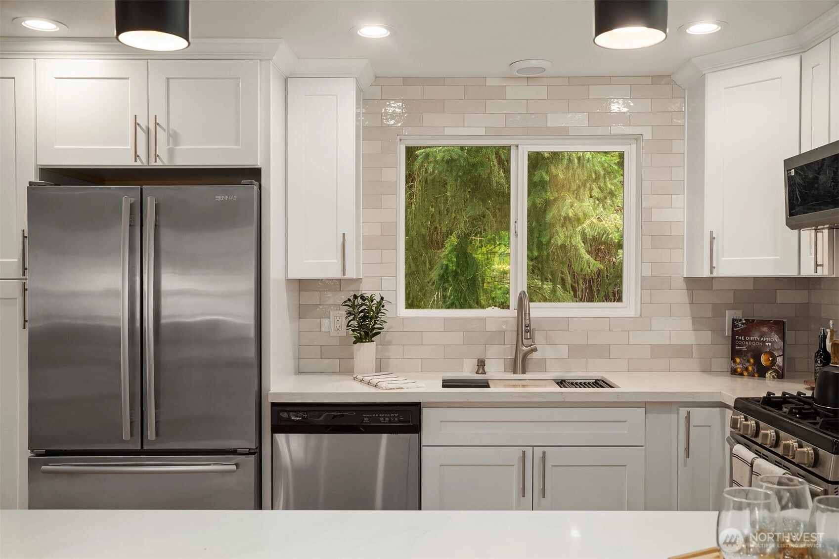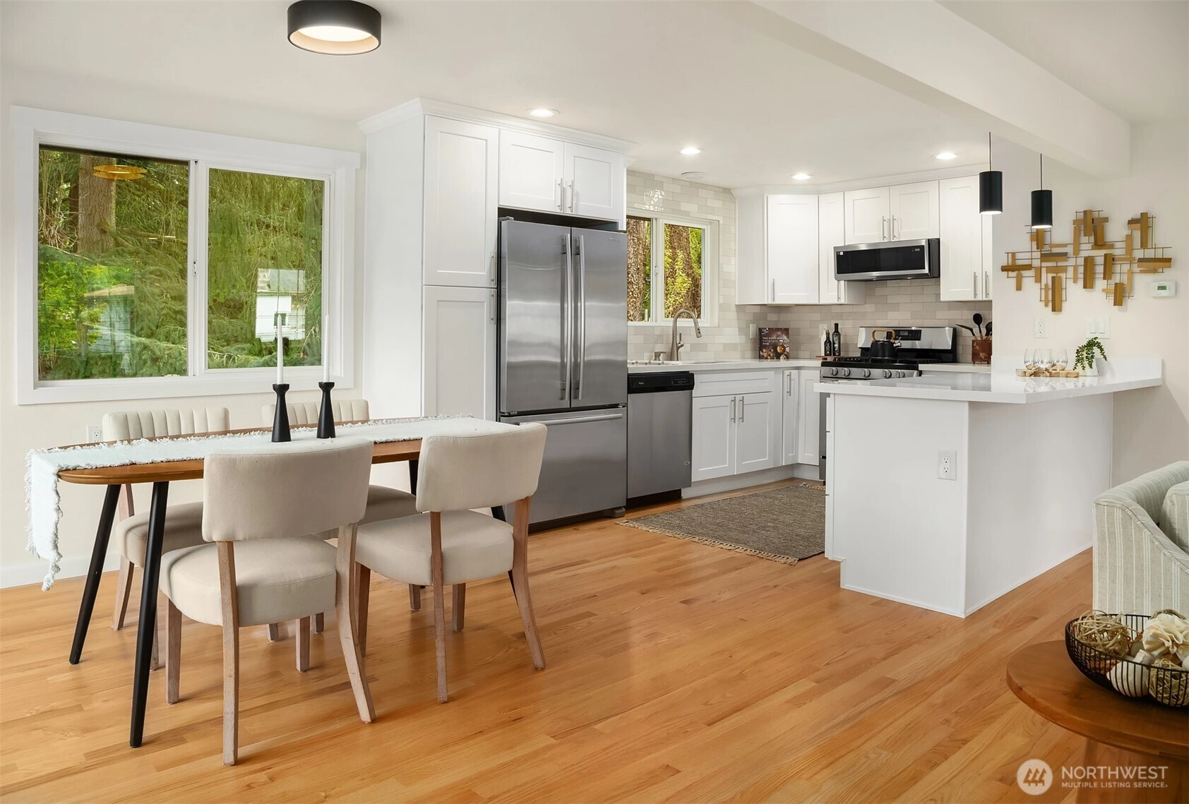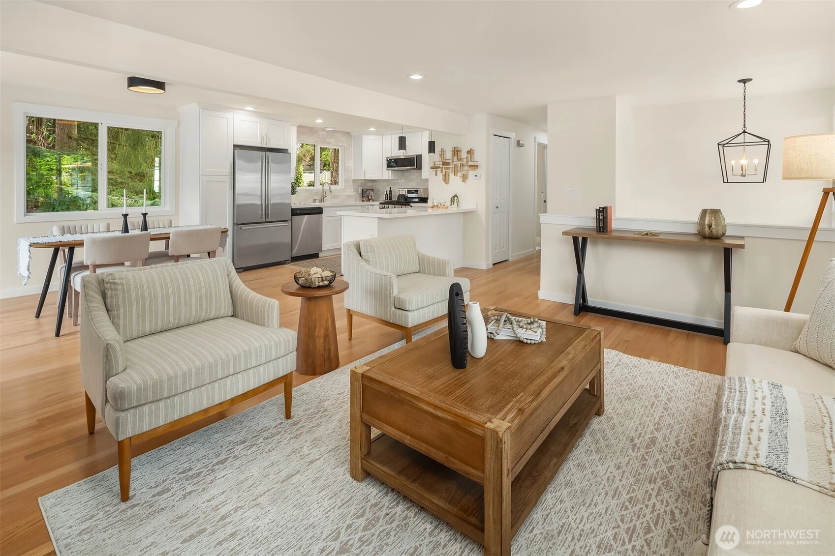 Modern & turnkey this 5-bed + den Edmonds split-level is fully updated. Open-concept main w/ hardwoods throughout. Gas fireplace & oversized windows enhance the inviting light-filled space. All-NEW kitchen w/ spacious island, white shaker-style cabinetry, quartz countertops & SS appliances—designed for effortless entertaining. Step to the expansive deck for seamless indoor/outdoor living, perfect for summer gatherings. Ideal layout w/ 3 beds up & 2 down. Corner Primary Suite overlooking the fenced backyard, complete w/ large walk-in shower & walk-in closet w/ built-ins. All baths feature NEW tile, vanities & fixtures. Lower level w/ generous rec rm & huge utility/laundry rm w/ ample storage. 2-car garage. Near schools, parks & mins to Bowl.