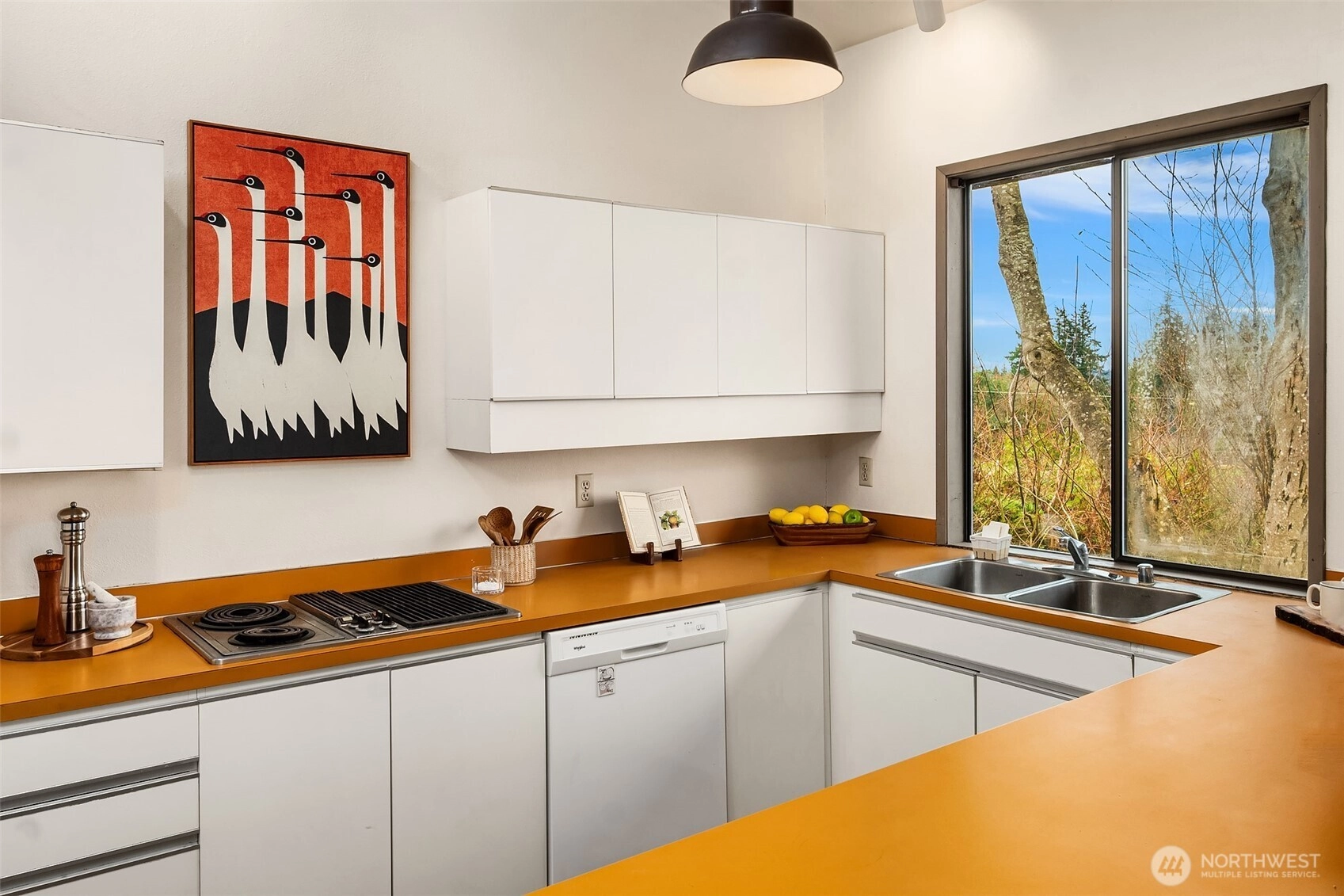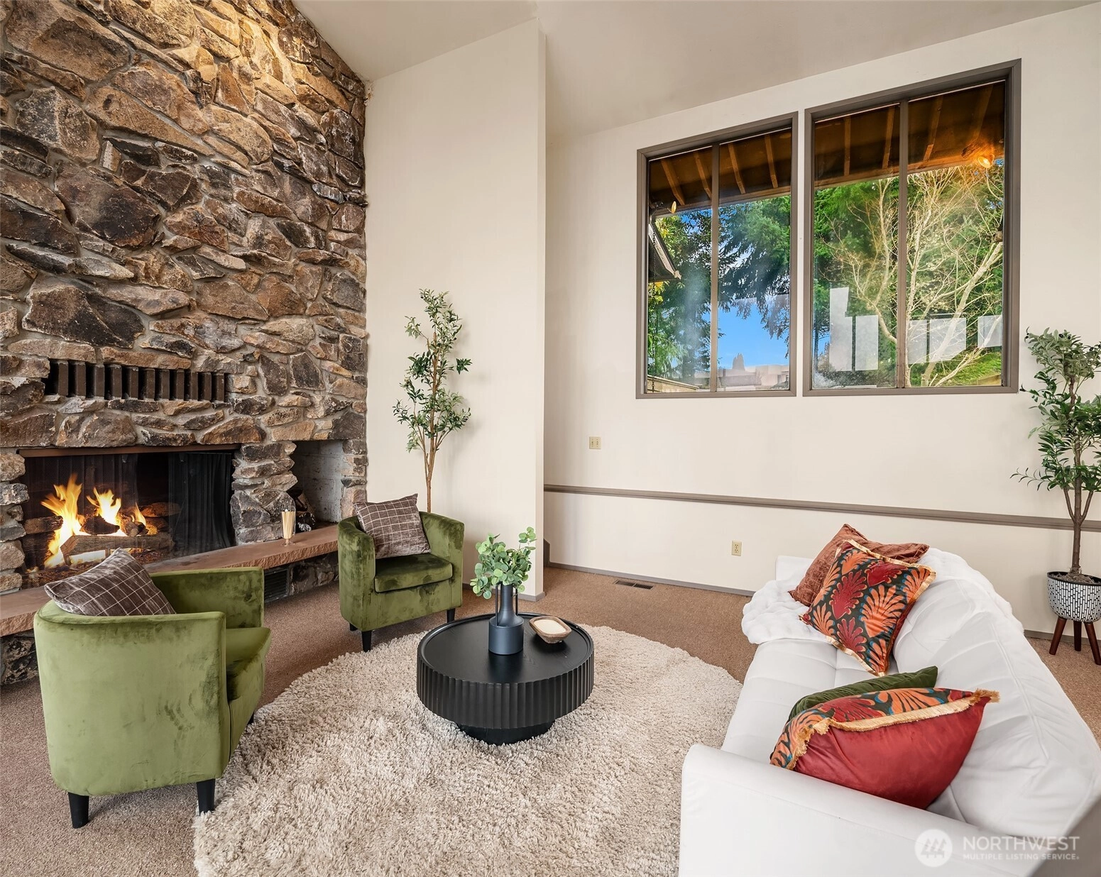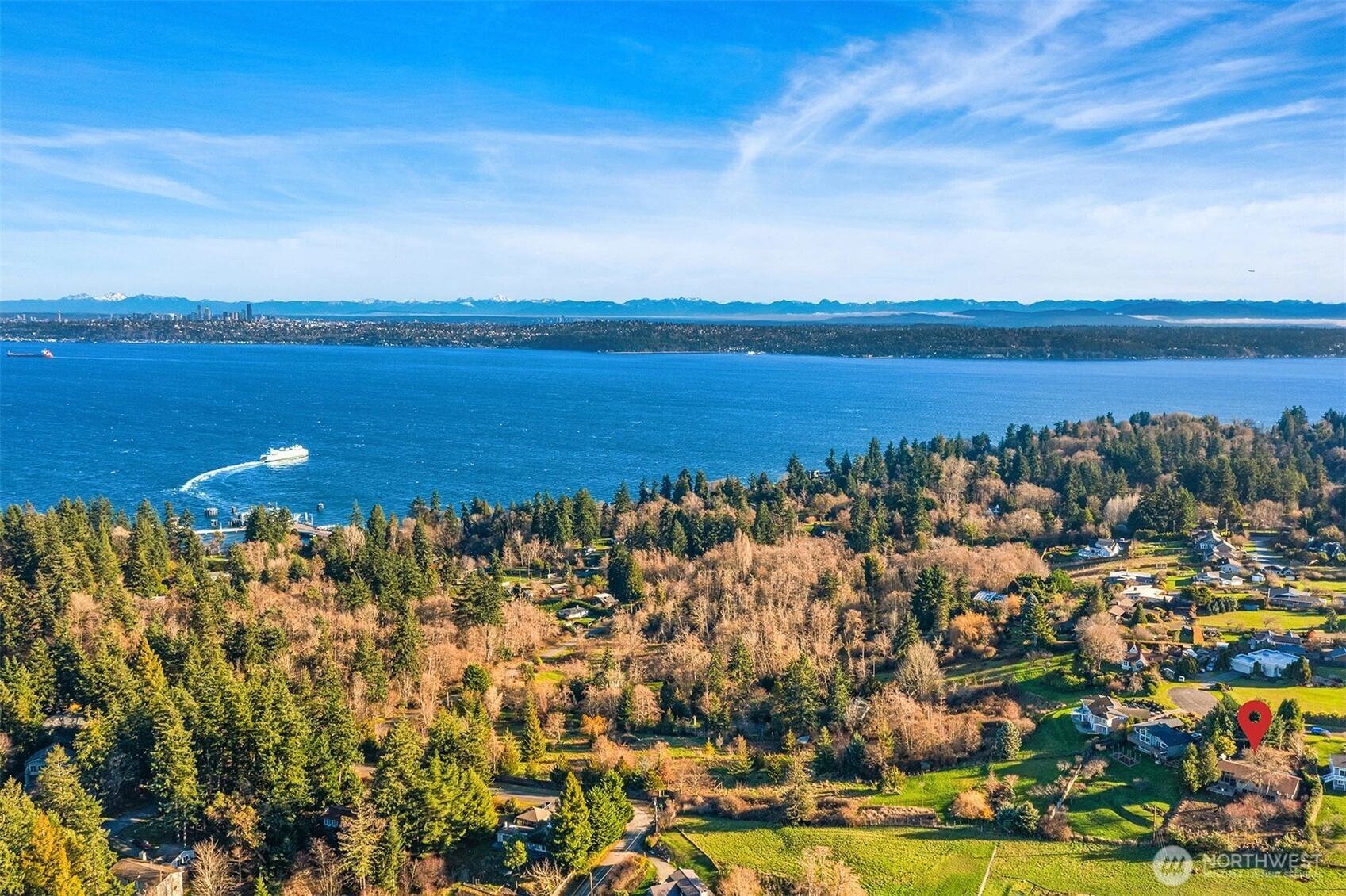 Unbelievable North End opportunity! Set on a .45-acre cul-de-sac lot with sweeping views of the Olympic Mountains and Colvos Passage, this classic 1978 home offers a rare chance to restore and elevate a true architectural gem. Just up the hill from the north end ferry, iconic 70s design elements remain, including a sunken living room, exposed wood beams, and a dramatic two-sided stone fireplace. Expansive windows frame the scenery and flood the 1,880 sq/ft interior with natural light. The main level includes 2 bedrooms and 1.75 baths, while the 910 sq/ft partially finished daylight basement offers flexible options for future bedrooms, studio space, or retreat areas. An inspiring opportunity to reimagine a home in a remarkable setting.