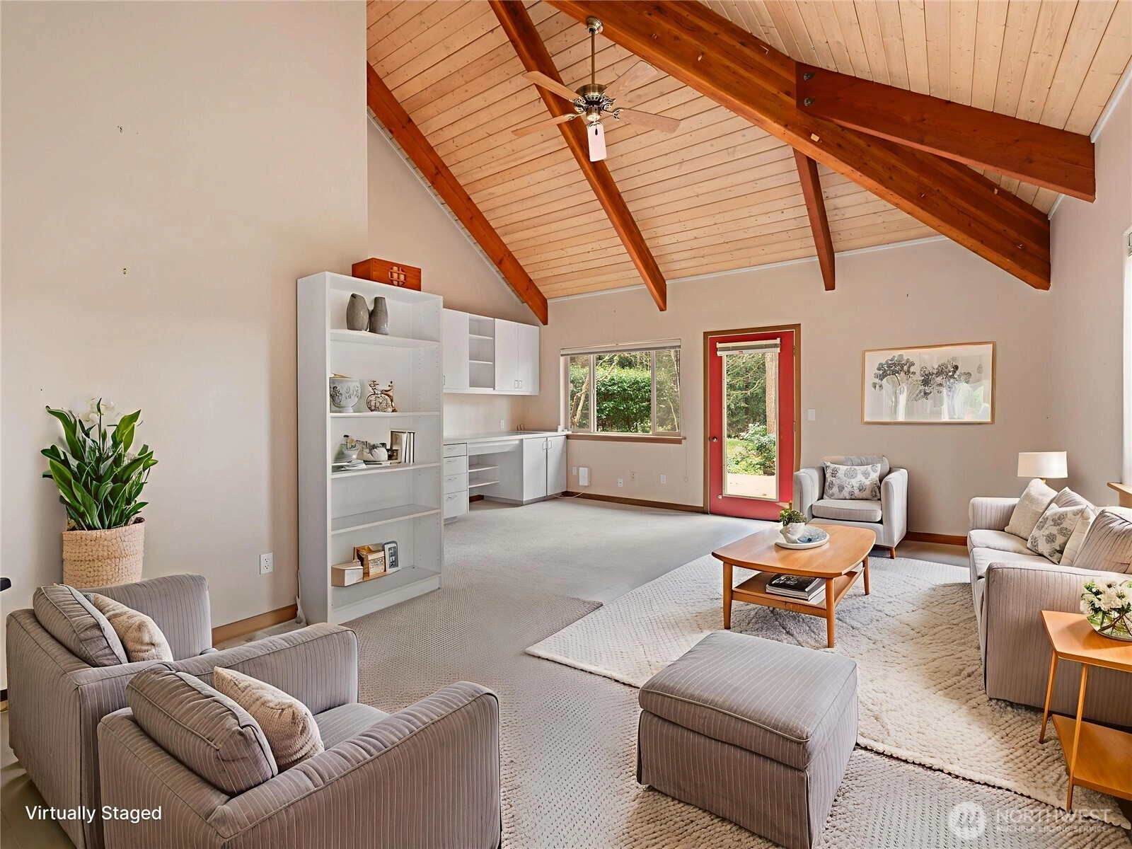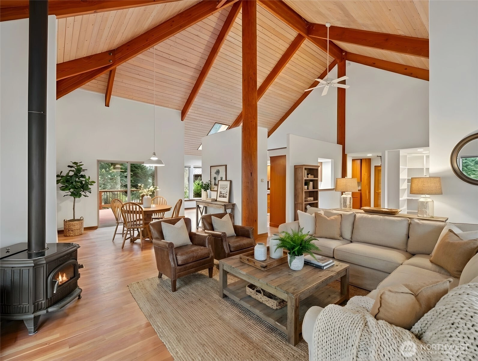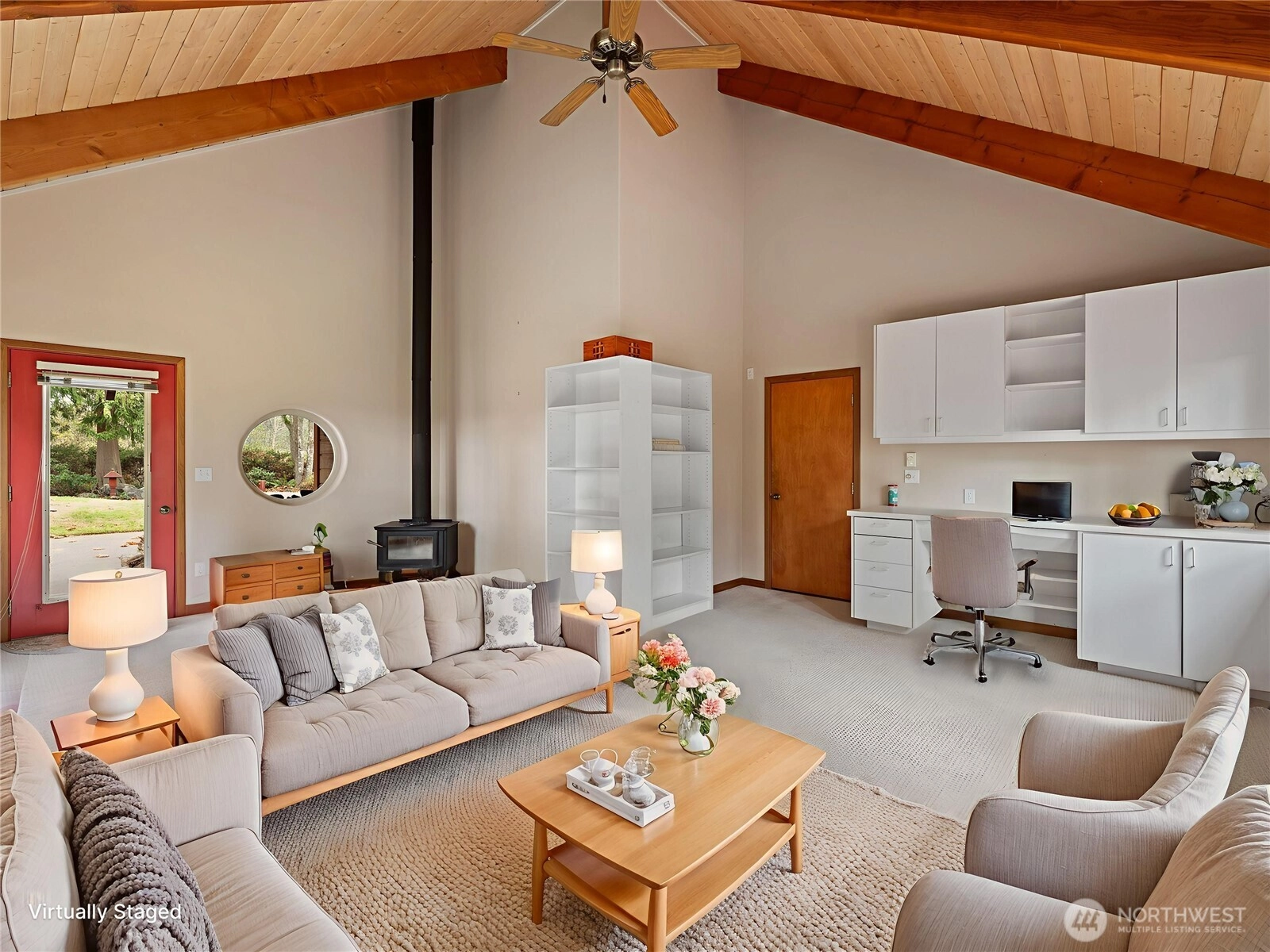 You’ll love this quiet oasis in the heart of town—surrounded by forest and professionally landscaped for privacy. Inside, wood-clad vaulted ceilings add warmth, and an upstairs bedroom and bath accessed by pull-down stairs create flexible guest or studio space. The property is zoned for two lots with an option to split. Enjoy a three-deck system with a fire pit, plus two outbuildings: a shop and a garage with an attached studio that could function as an ADU or hobby space. The home, garage, and well house can all run off-grid with a 10 kW propane generator, giving you comfort and independence. Special financing applies to qualified buyers!