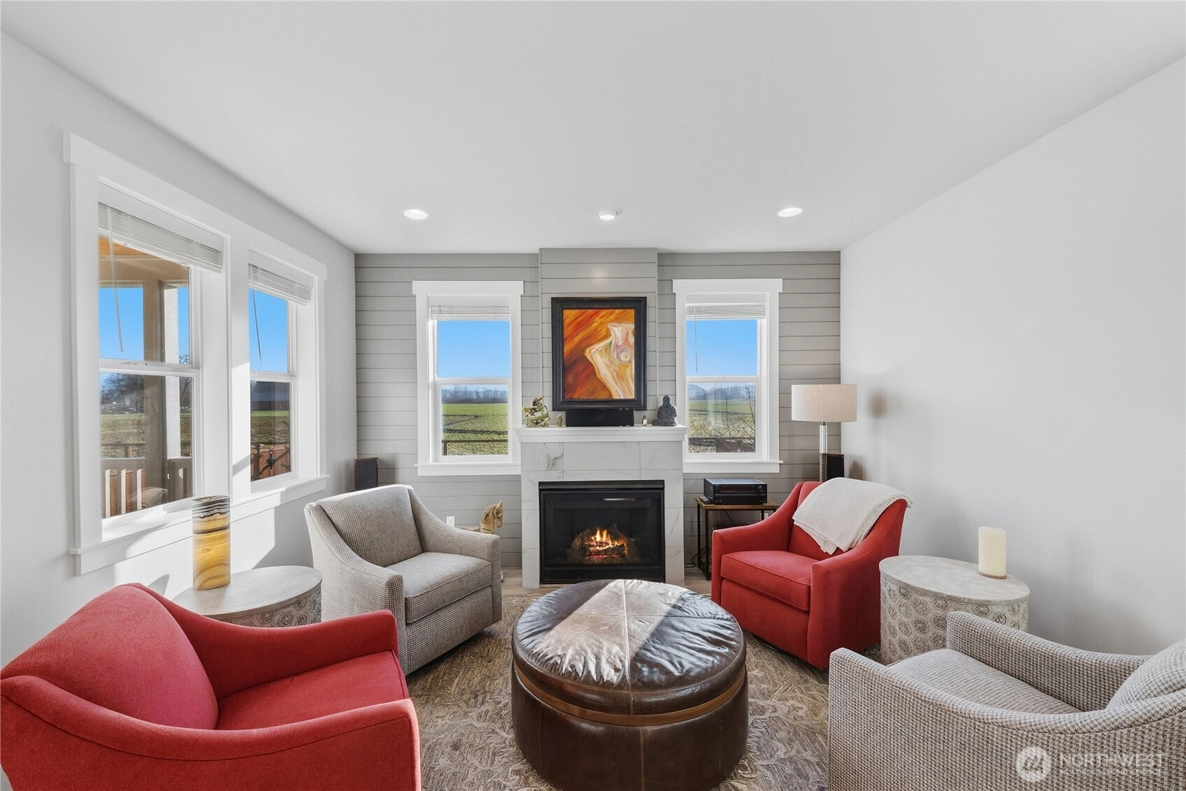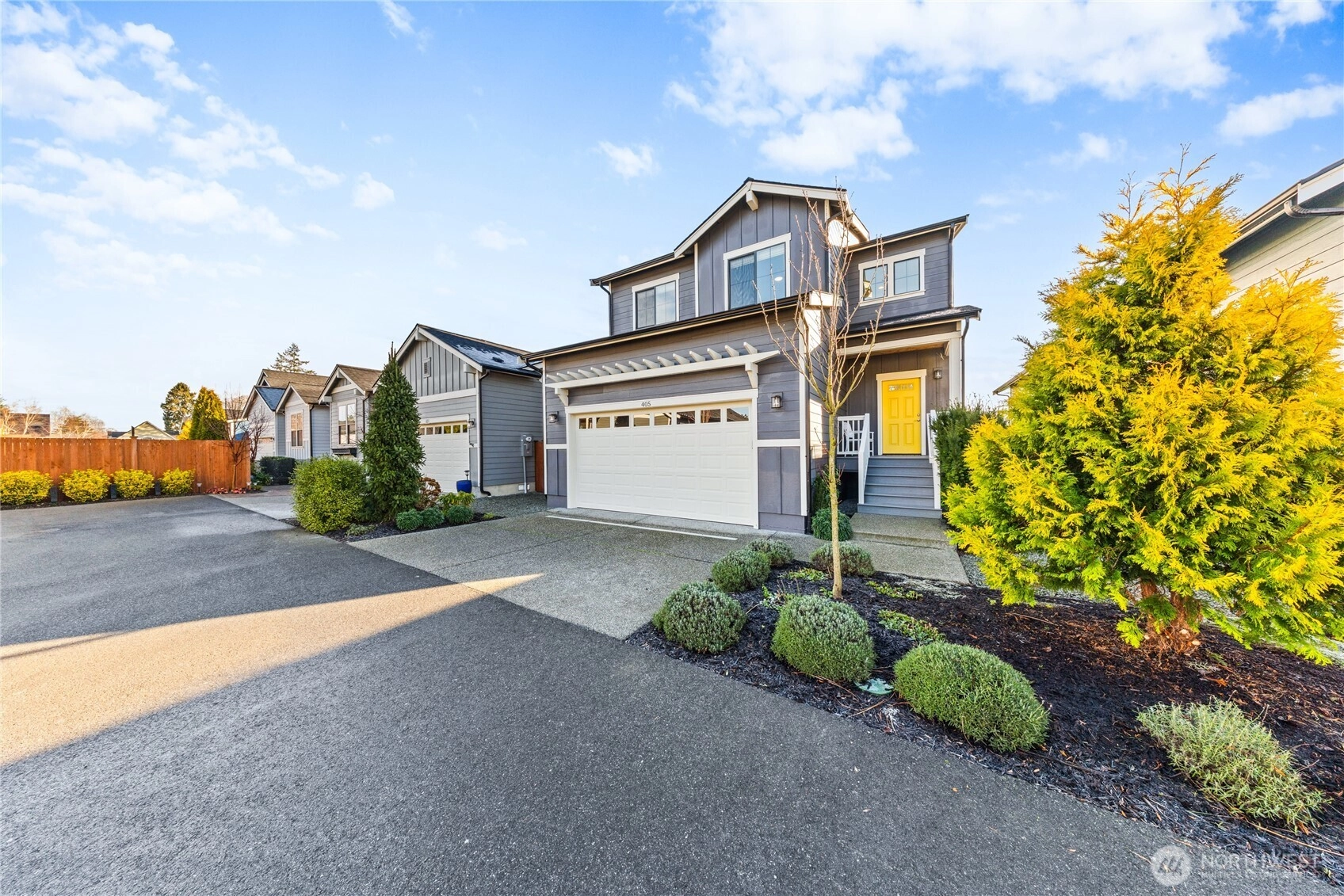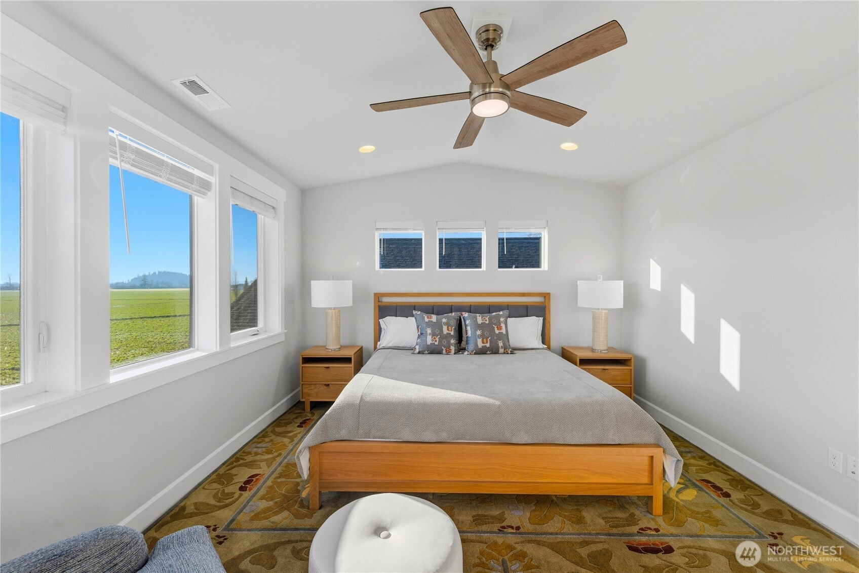 Pristine condition and move-in ready right in La Conner! This very walkable town features shops, services, restaurants and more. The home, just built in 2022, needs very little upkeep. Privacy abounds inside the home, with views focused on farmland and mountains out back. Relax by the gas fireplace in the living room. Spend mornings on the covered back deck with a cup of coffee as the sun rises over Skagit Valley. The completely fenced backyard is beautifully landscaped, with plenty of space for entertaining on summer evenings. The large kitchen space features a gas range, plenty of cupboards and closet pantry, and an island with lots of counter space for chefs. And an office on the main level just off the kitchen. The laundry room is located upstairs with the bedrooms. The primary bedroom suite features farmland views, ceiling fan, large double-sink bathroom with heated tile floor, and a walk-in closet. The large 2-car attached garage is bright with room for toys. Don’t miss this one!