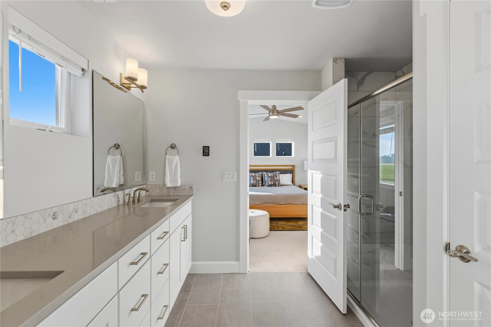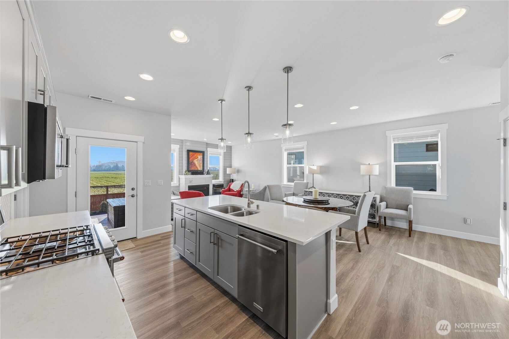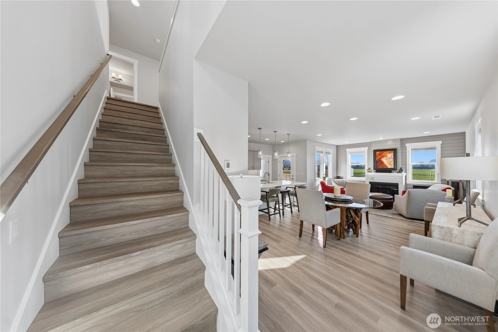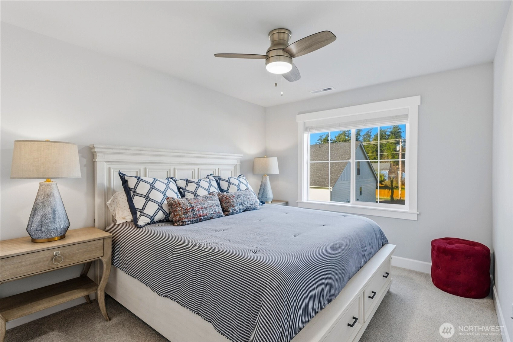 Pristine condition and move-in ready right in La Conner! This very walkable town features shops, services, restaurants and more. The home, just built in 2022, needs very little upkeep. Privacy abounds inside the home, with views focused on farmland and mountains out back. Relax by the gas fireplace in the living room. Spend mornings on the covered back deck with a cup of coffee as the sun rises over Skagit Valley. The completely fenced backyard is beautifully landscaped, with plenty of space for entertaining on summer evenings. The large kitchen space features a gas range, plenty of cupboards and closet pantry, and an island with lots of counter space for chefs. And an office on the main level just off the kitchen. The laundry room is located upstairs with the bedrooms. The primary bedroom suite features farmland views, ceiling fan, large double-sink bathroom with heated tile floor, and a walk-in closet. The large 2-car attached garage is bright with room for toys. Don’t miss this one!