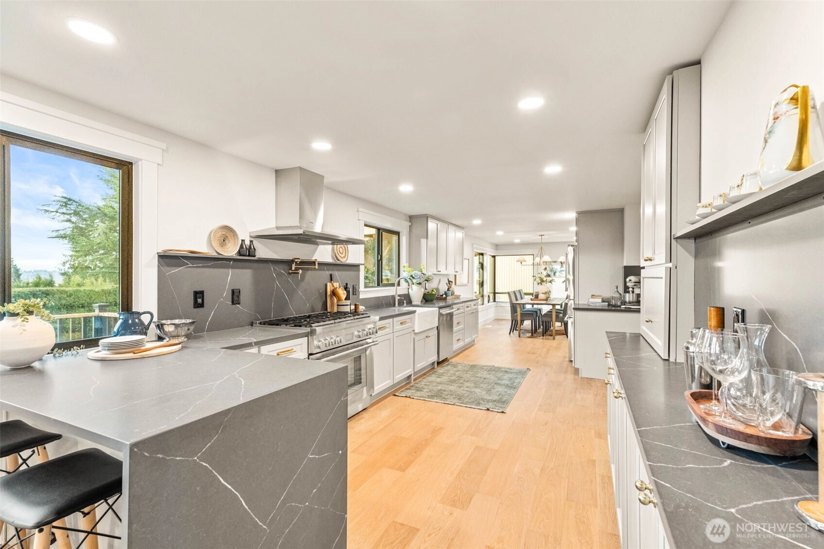 Fully updated Houghton home w/timeless finishes & new modern systems, offering today’s comforts while preserving the warmth of a truly special home. Gorgeous brand-new chef’s kitchen w/all-new cabs, rich counters, Thermador SS apps & a view anchoring formal & informal lvg spaces-perfect for entertaining. Expansive glass wall doors opens to an impressive deck overlooking the freshly manicured yard w/ample rm for play. Moody office w/upgraded French doors creates the ideal WFH retreat. 4 BDs on one level incl stunning primary suite w/views, private deck access, sophisticated 5-pc BA & lg walk-in. New windows, roof, doors, hardwoods & much more! Mins to Lake WA, Met Market, Cross Kirkland Corridor trail, LW schools, Google & commuter routes.