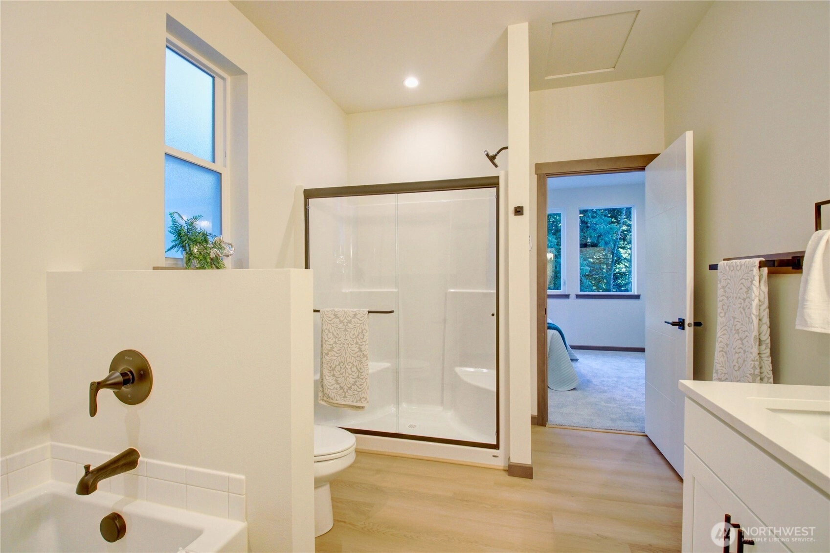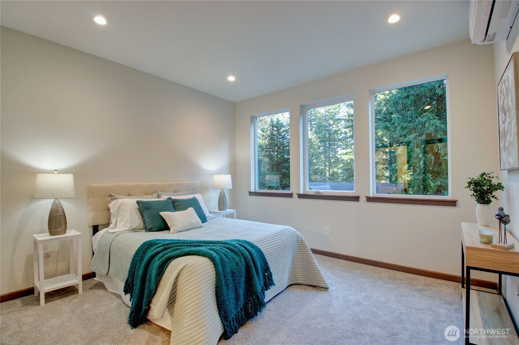 Brand new home located on a private cul-de-sac in the lakeside & golf course community of Sudden Valley. The property borders the edge of the Sudden Valley community - and lies adjacent to County owned forest land (and the Lookout Mtn. trail). Enjoy an amazing great room with vaulted ceiling over the kitchen, living & dining areas. Rear access to a private deck and back yard area as well. The kitchen has white cabinet package, quartz counter-tops, stainless steel appliances and pantry closet. The primary bedroom has ensuite full bath with separate shower and tub, and walk-in closet. The lower guest suite would also be considered a primary bedroom - with its own ensuite 3/4 bathroom. Extremely energy efficient ductless mini-split heating and cooling system. The Lookout Mountain Trail system is located right behind the property and the trailhead is located at the end of the street! Very nice neighborhood with several new homes located on the street - and more to come.