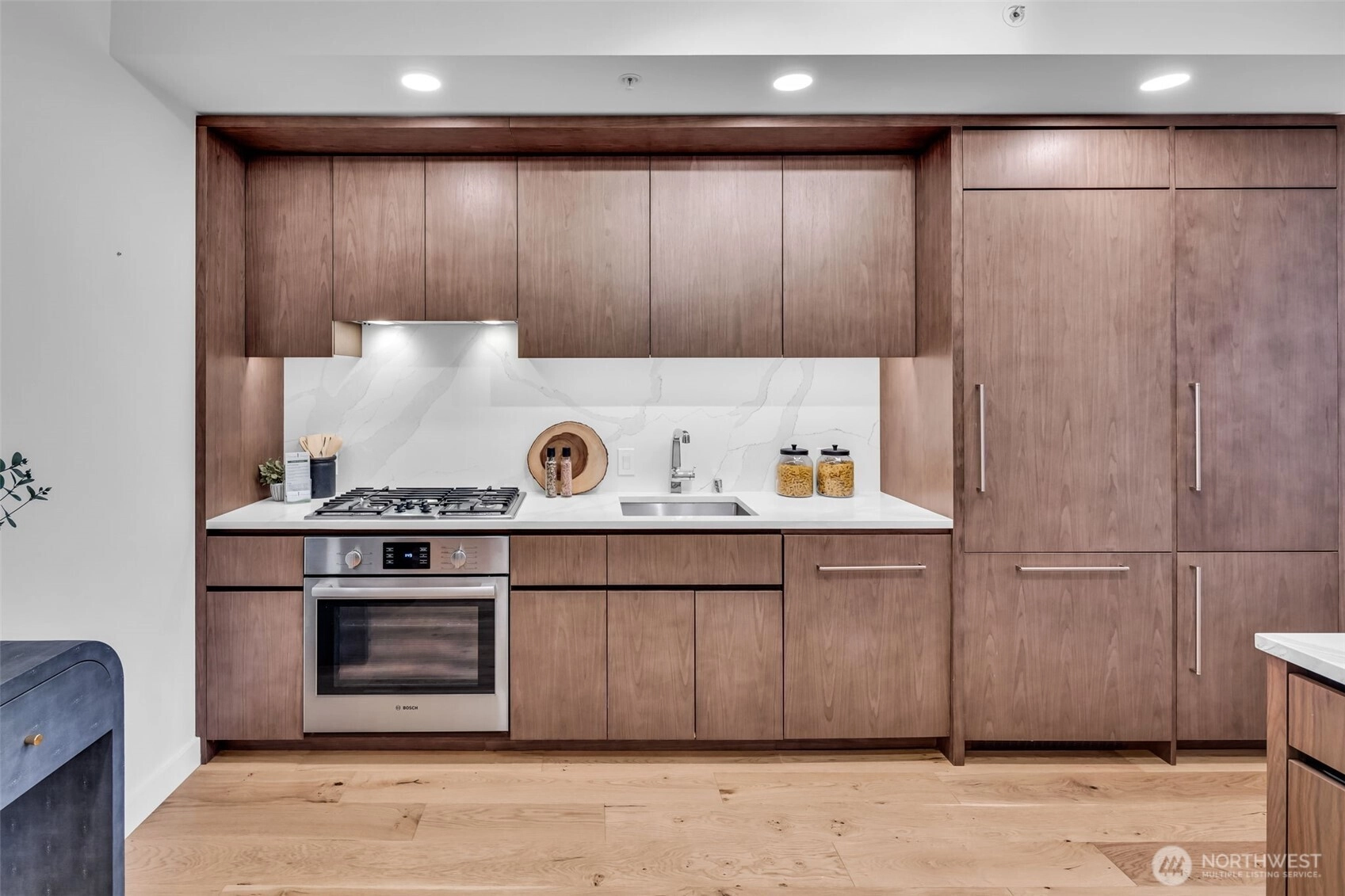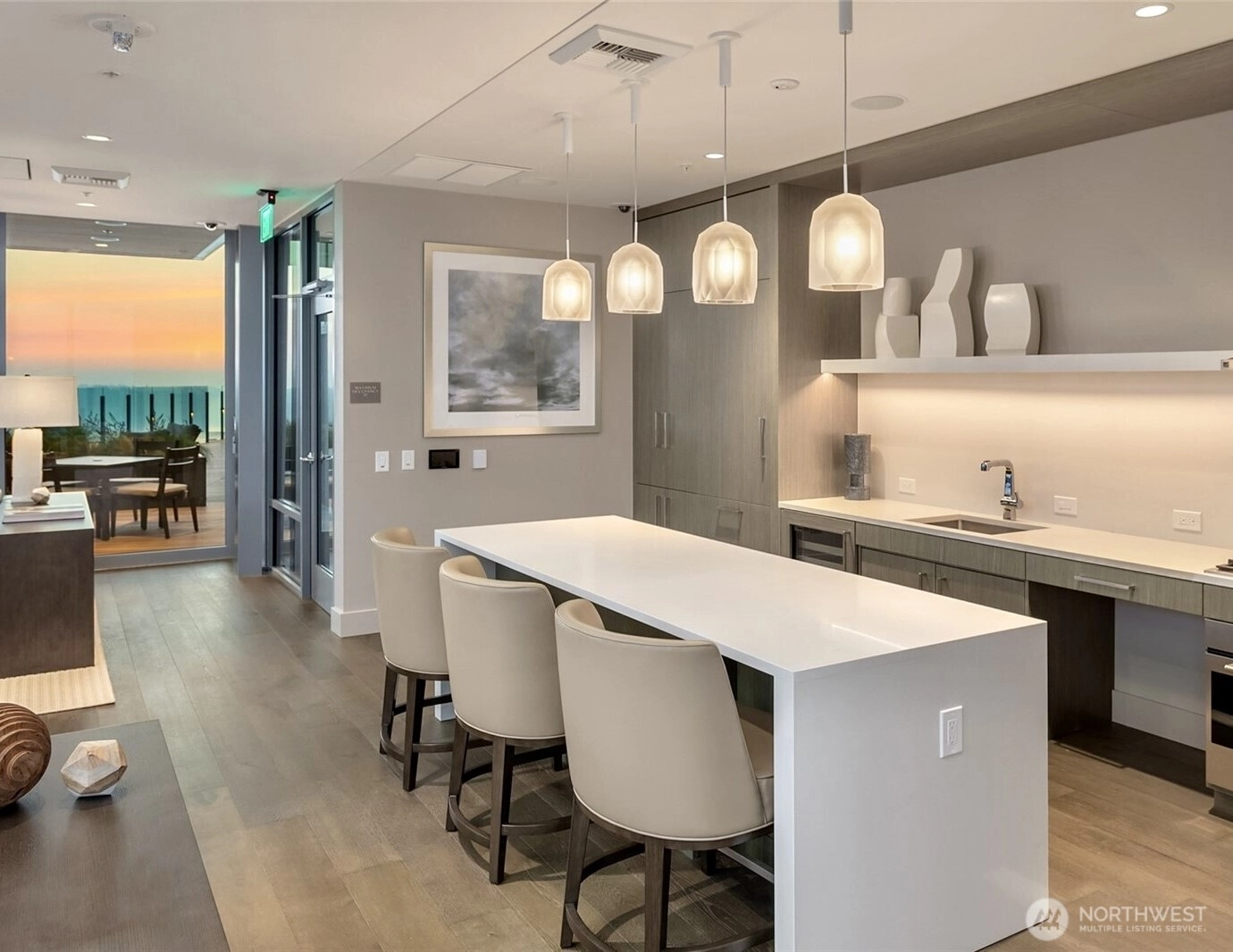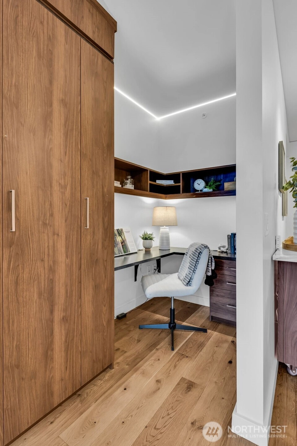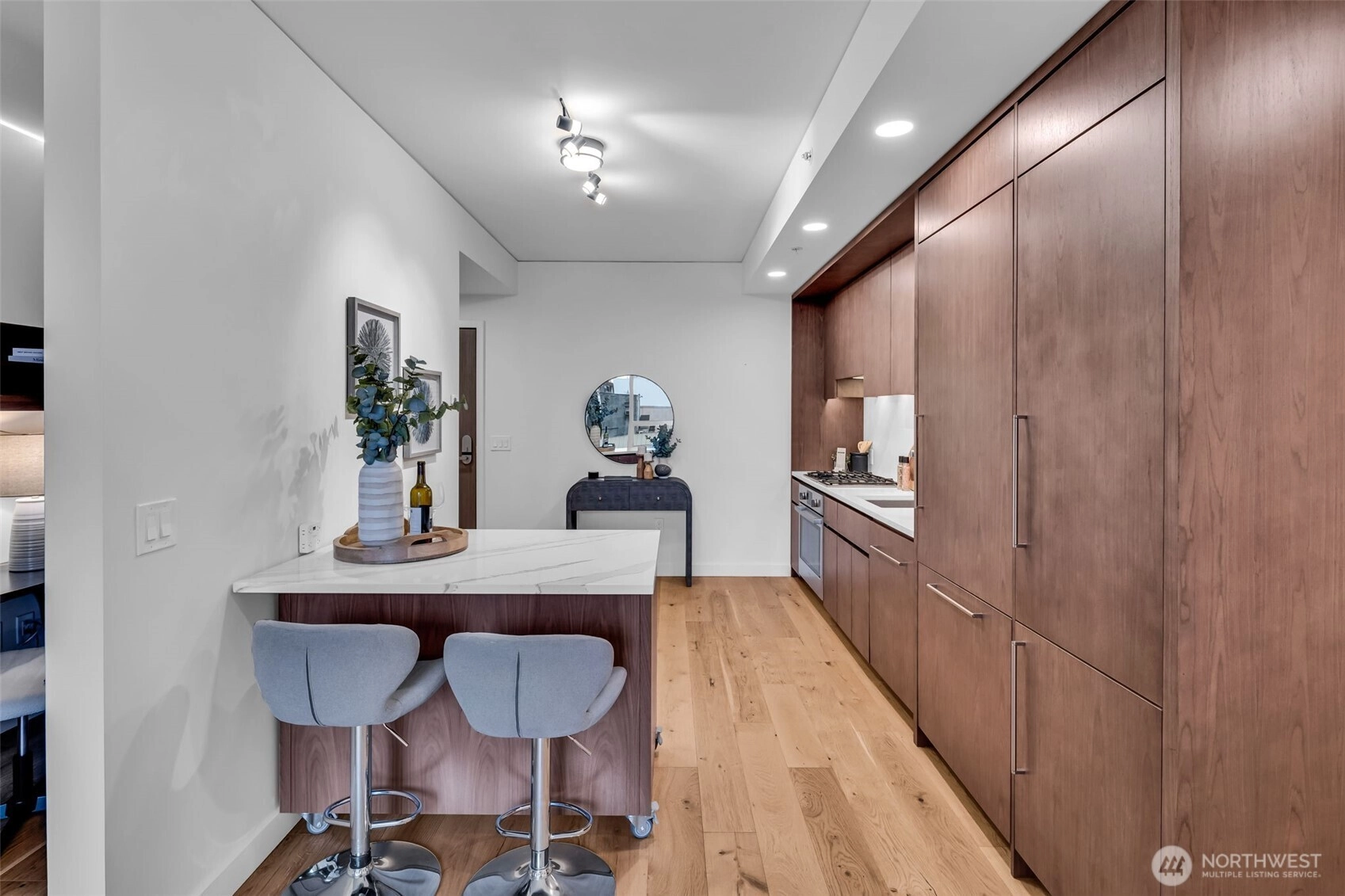 Seattle has a few true headliners, The Emerald is one of them. Rare downtown high rise home that feels thoughtfully curated, effortlessly elevated. Steps to Pike Place Market, Seattle’s reimagined waterfront, wrapped in floor to ceiling glass, tons of natural light, twinkly skyline, city views, 75k in upgrades you feel the second you walk into this spacious one bed + den home. Brand new wide plank hardwoods, custom lighting, scene settings in living, den, primary, bright by day, warm, cinematic at night. Showpiece kitchen, gas cooking, Pedini cabinetry, smart pull outs, built in drawer org, high end Bosch appliances (gas), marble style quartz, custom movable island, equal parts design statement and daily workhorse. Custom built in bookcases, integrated under cabinet lighting, den/office is the real deal, true bonus room for work or creative studio. Exceptional stg, huge walk-in custom closets and built-ins, everything has a place. Spacious primary w/large CC walk in, spa like en suite (think lavish hotel level feel) Hardwired sun shades, blackout shades for real rest. Central AC, sleek LG W/D, Latch keyless entry. Residents enjoy professional 24/7 concierge, executive level fitness, yoga, pet run, pet spa, guest suite, onsite electric carshare, full floor rooftop lounge, indoor outdoor spaces, panoramic views of the Sound, Mt. Rainier, Olympics and unreal Seattle skyline. Over 75k in handsome interior upgrades. Living at The Emerald in the Emerald City just hits different.