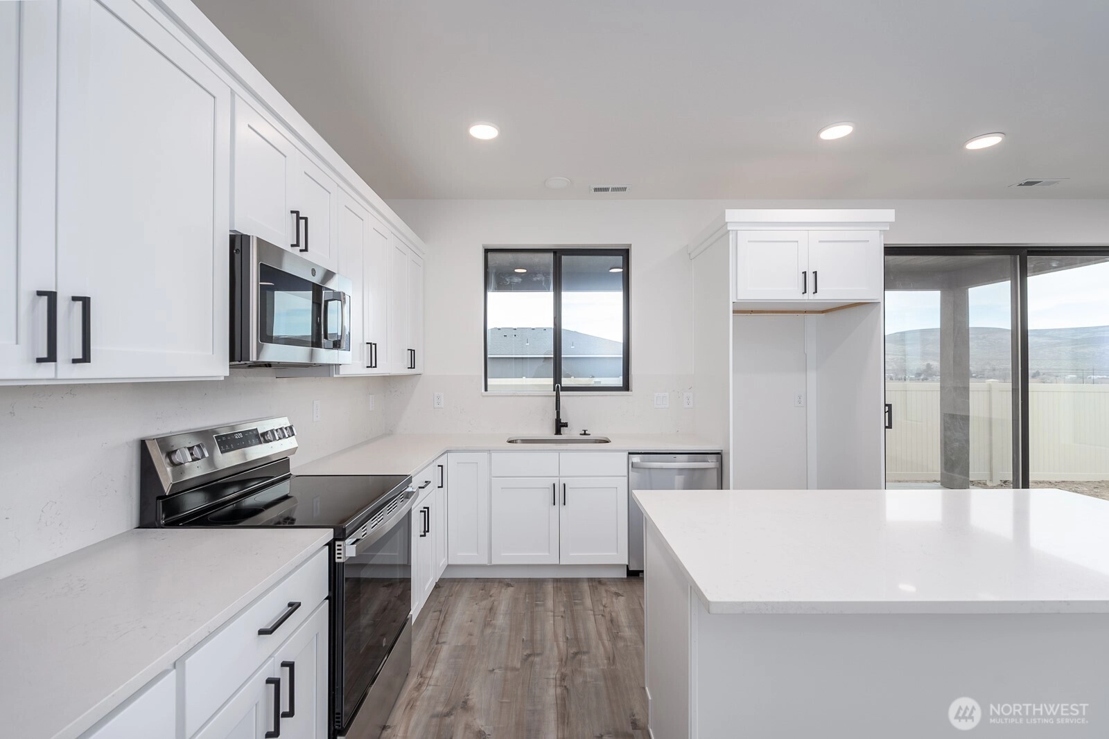 Welcome to The Desert Plains neighborhood in Ephrata, WA! This 1,192 square foot single-level home offers 3 bedrooms and 2 bathrooms with a thoughtfully designed open layout. The kitchen features quartz countertops, white cabinetry, and modern finishes, flowing seamlessly into the main living areas with durable luxury vinyl plank flooring. Bedrooms are comfortably appointed with carpet and 8lb padding. Additional highlights include central heating and air conditioning, a fully landscaped front and backyard, and a fully fenced yard all included in the price! The exterior showcases contemporary stucco styling with white windows for a clean, modern look. Conveniently located near local amenities, this home blends quality construction with stylish finishes in a growing community. Take advantage of our $10,000.00 buyer incentive when you use one of our preferred lenders!