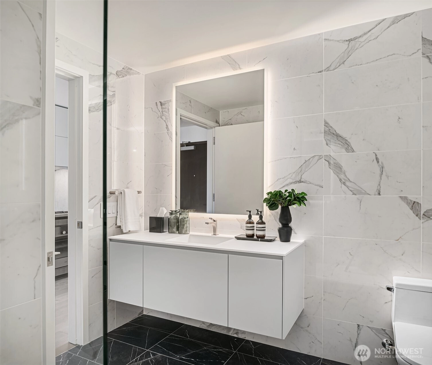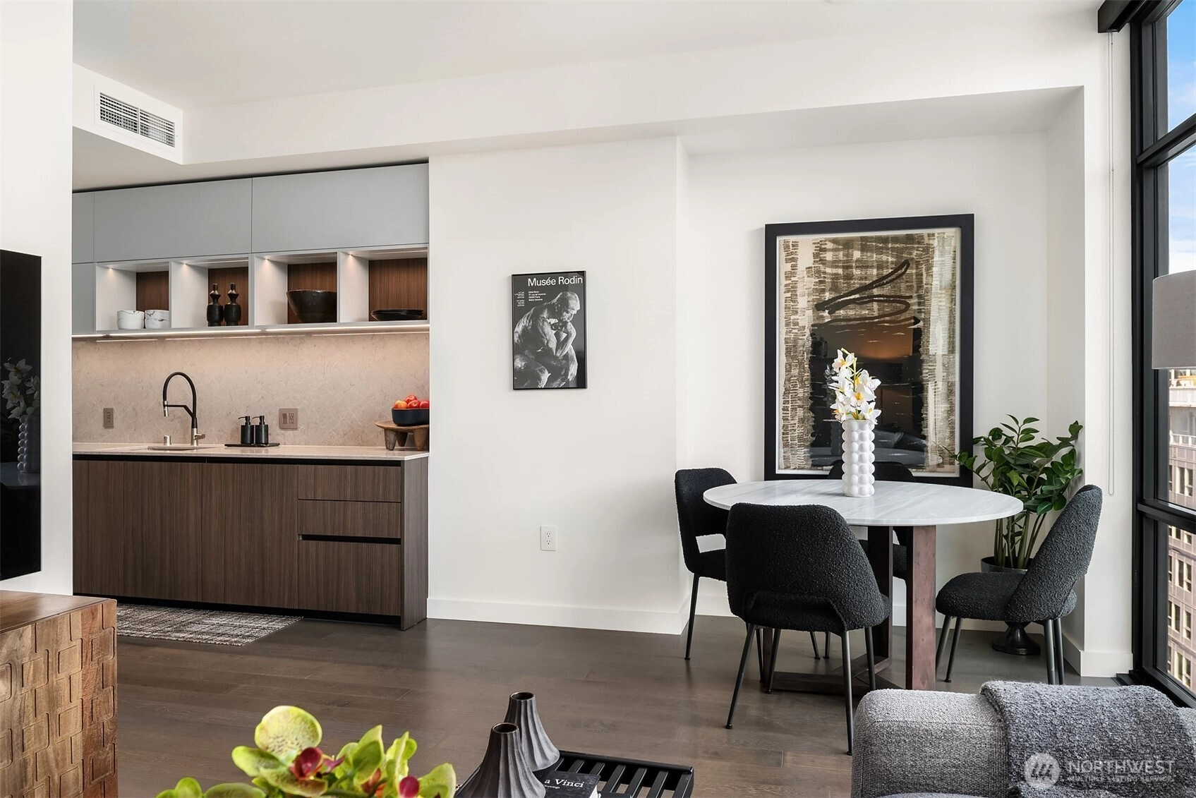 Nestled in the heart of downtown Bellevue, this brand new luxury condo offers a refined open one-bedroom, one-bath retreat crafted for modern living. Smart and functional, the residence boasts top of the line fixtures from world renowned brands, blending elegance with practicality. Thoughtfully crafted interiors feature harmonious tones, clean lines and discreet textures, creating a balanced environment that nurtures well-being. Beyond your private sanctuary, enjoy amenities including a fitness room, stylish lounge and dog run. The building's modern lobby welcomes you with dramatic lighting, a living wall and a striking fireplace - signaling your arrival at a place where luxury and wellness converge seamlessly .