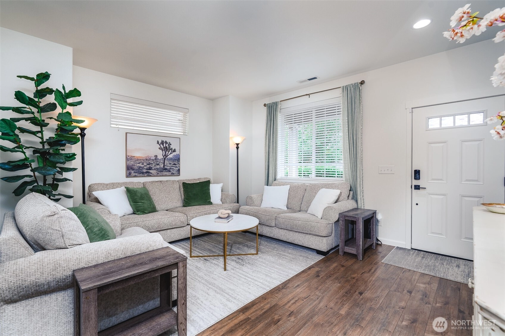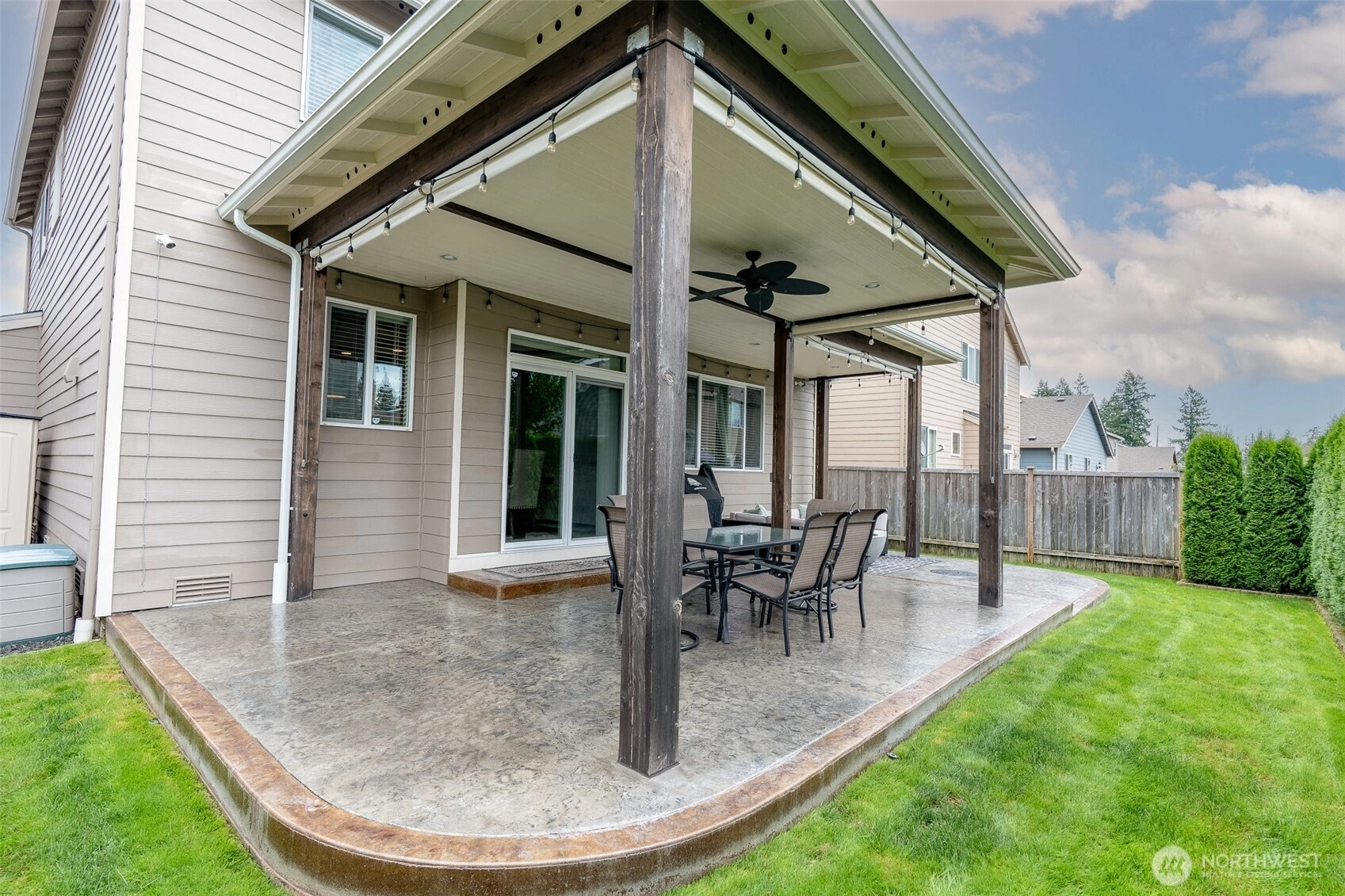 This beautifully maintained and thoughtfully updated home is truly move-in ready, offering a seamless blend of style and functionality for today's lifestyle. Step inside to discover a versatile, open-concept great room that flows effortlessly into the cozy living room, ideal for both lively gatherings and peaceful evenings at home. The floor plan places laundry conveniently upstairs, while the spacious primary suite provides a serene retreat with a 5-piece bathroom and walk-in closet. High-quality finishes and upgrades throughout, from the inviting covered patio featuring stamped concrete flooring, stylish shades, and beautiful custom landscaping, your perfect spot for morning coffee or outdoor dining. The kitchen boasts nearly-new appliances (all included). Recreation is right at your doorstep: enjoy the community park and playground just moments away, plus easy public access to Munn Lake for fishing and relaxation only a few blocks from home. For even more outdoor adventures, Pioneer Park offers river access (Deschutes River in the Tumwater/Olympia area) just down the road—think tubing, trails, and nature escapes without ever leaving the neighborhood. This home combines modern upgrades, thoughtful design, and an unbeatable location surrounded by parks, lakes, and riverfront fun. Don't miss your chance to make it yours. Schedule a showing today and envision your future here.