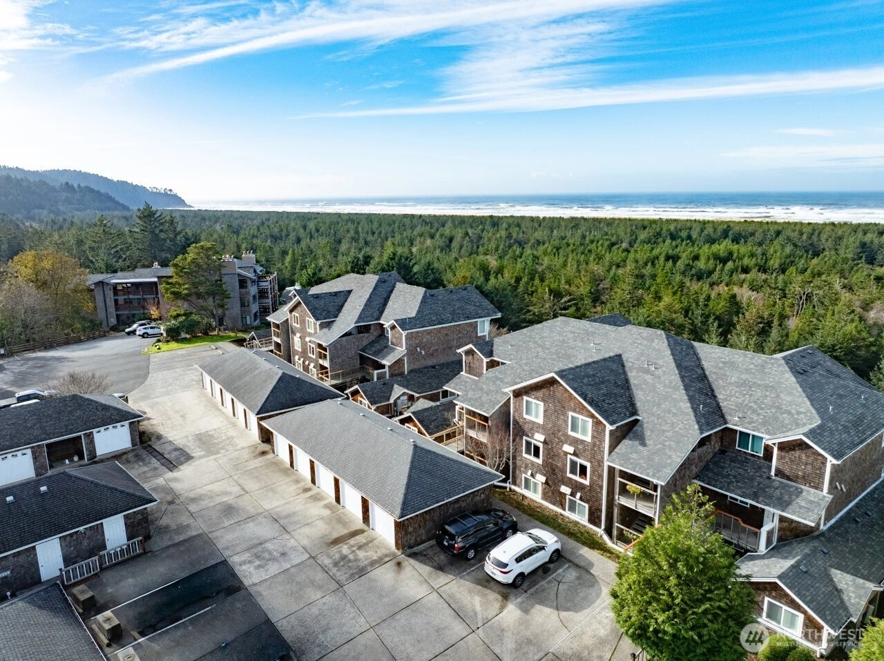 Welcome to Pacific Crest Condos in Seaview! This third floor condo in building B settled in the middle for breathtaking views of the worlds longest beach and beautiful Pacific Ocean. The well laid out 2-bed, 2-bath unit features a primary suite with a private deck overlooking the ocean and an ensuite bath with a jacuzzi tub. The kitchen opens to the living room which has a gas fireplace, creating a warm, inviting space. Enjoy sunsets from the private deck, or storm watch from inside. Each unit includes its own one car garage for parking or storage. Don't miss your opportunity to own this third floor condo with views you will never want to leave.