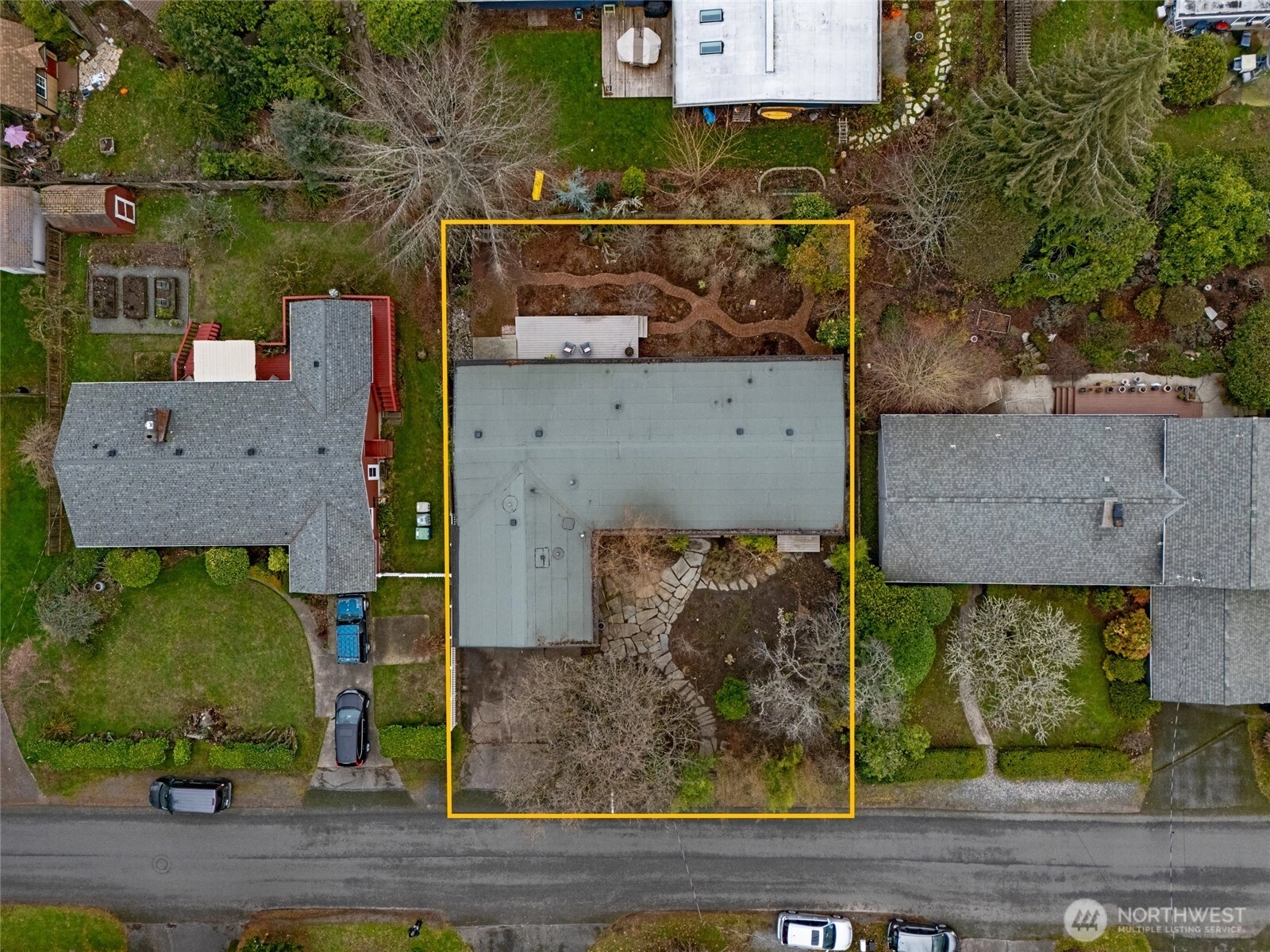 Stunning Mid-Century Modern, filled with light and style and generous space! Just minutes to shopping, commuting routes, schools, and downtown Edmonds. Open Airy Great Room Floor plan. Thoughtfully renovated from top to bottom in 2015. Updated all major systems: Roof, Hot Water, HVAC, Plumbing, Electrical, Windows, Cabinetry, Flooring, Appliances, etc. Also, a beautifully executed addition remodel in 2019. The addition features a flexible second primary suite with wide hallways, laundry, and stubbed for future kitchenette. Walk-in closets, pantry, and custom organizers (premium built-ins—not wire shelving). Step outside to a sun-drenched backyard with deck, flagstone paver patio, and brick path to meditation garden. Enjoy seasonal peek-a-boo views of the Sound and mountains, colorful low-maintenance landscaping, and abundant off street parking. More than 2,000 square feet on a single level!