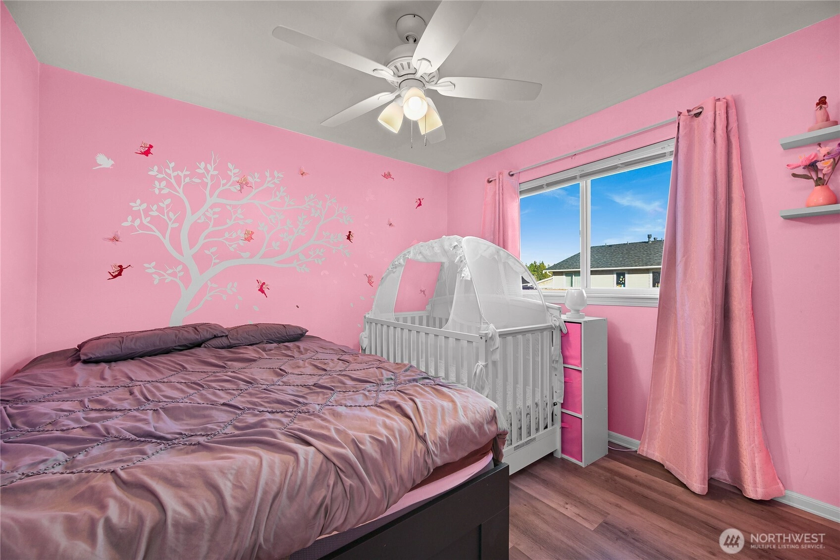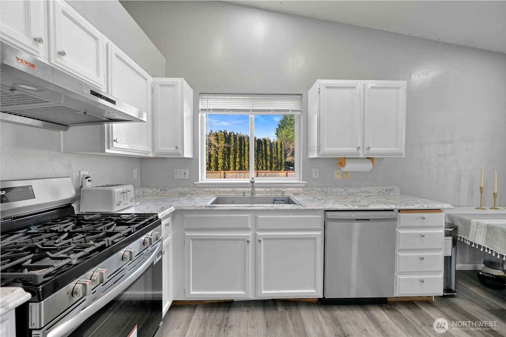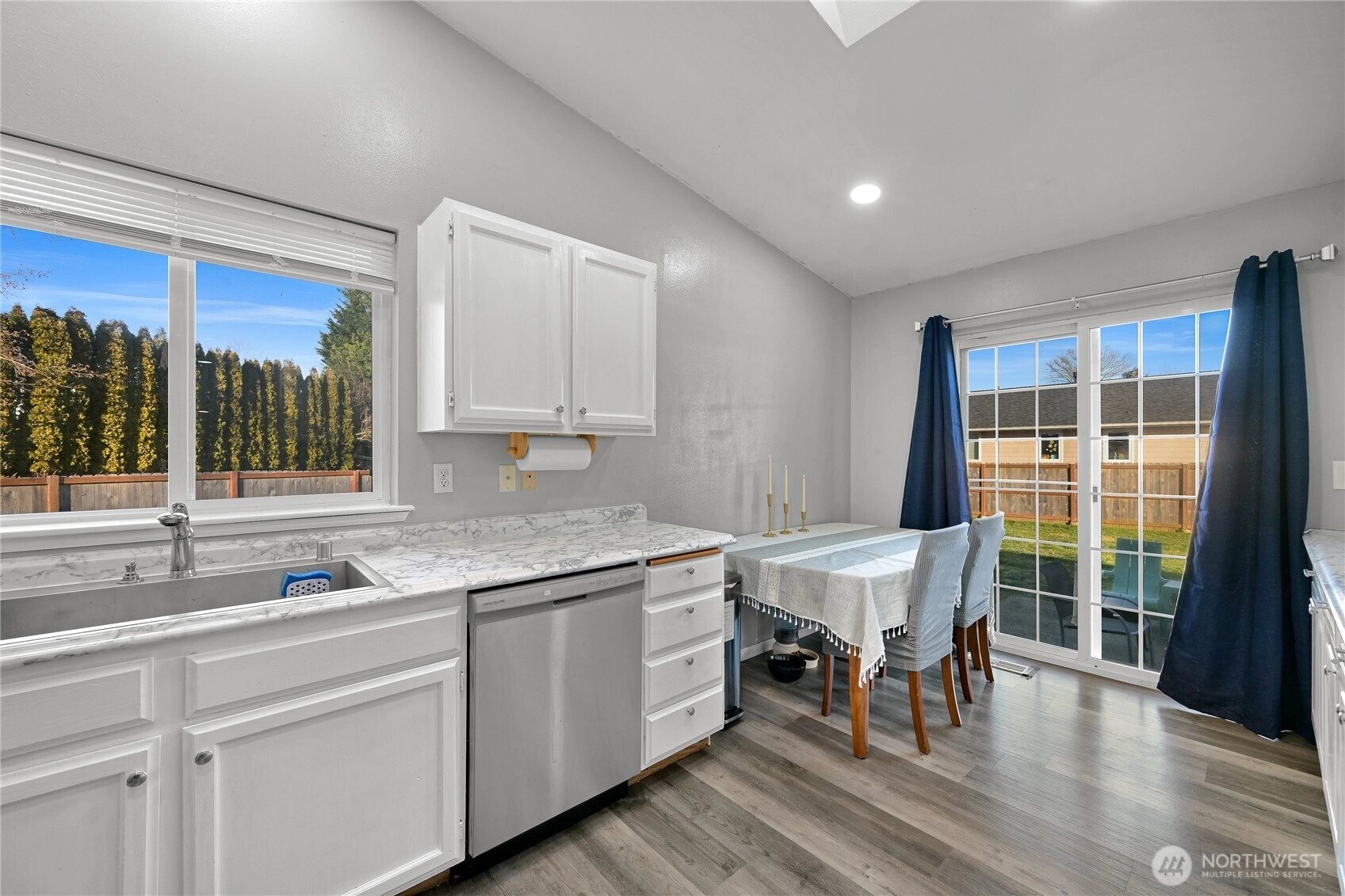 Set at the end of a cul-de-sac, this home is only one of two homes providing a rare combination of privacy, space, and everyday convenience. Located only one lot away from a picturesque neighborhood park that is nicely landscaped and has a basketball court and swings, while the adjoining property is city-owned and will not be built on offering a level of privacy that’s hard to come by. Inside, vaulted ceilings, skylights, and a classic bay window fill the home with natural light creating an open and welcoming feel. Luxury vinyl plank flooring runs throughout, paired with new lighting for a clean, modern look. The updated kitchen features stainless steel appliances, including a brand-new dishwasher and stove, and flows easily to the patio and backyard that's perfect for entertaining. Outside, the large, level, fully fenced backyard is a true highlight, offering space to play, garden, or unwind, plus two sheds for extra storage. This location truly sets this home apart and is only one block from Cascadia Elementary School and close to two middle schools. Tucked away and yet connected, a setting like this is hard to find at this price and even harder to replace.