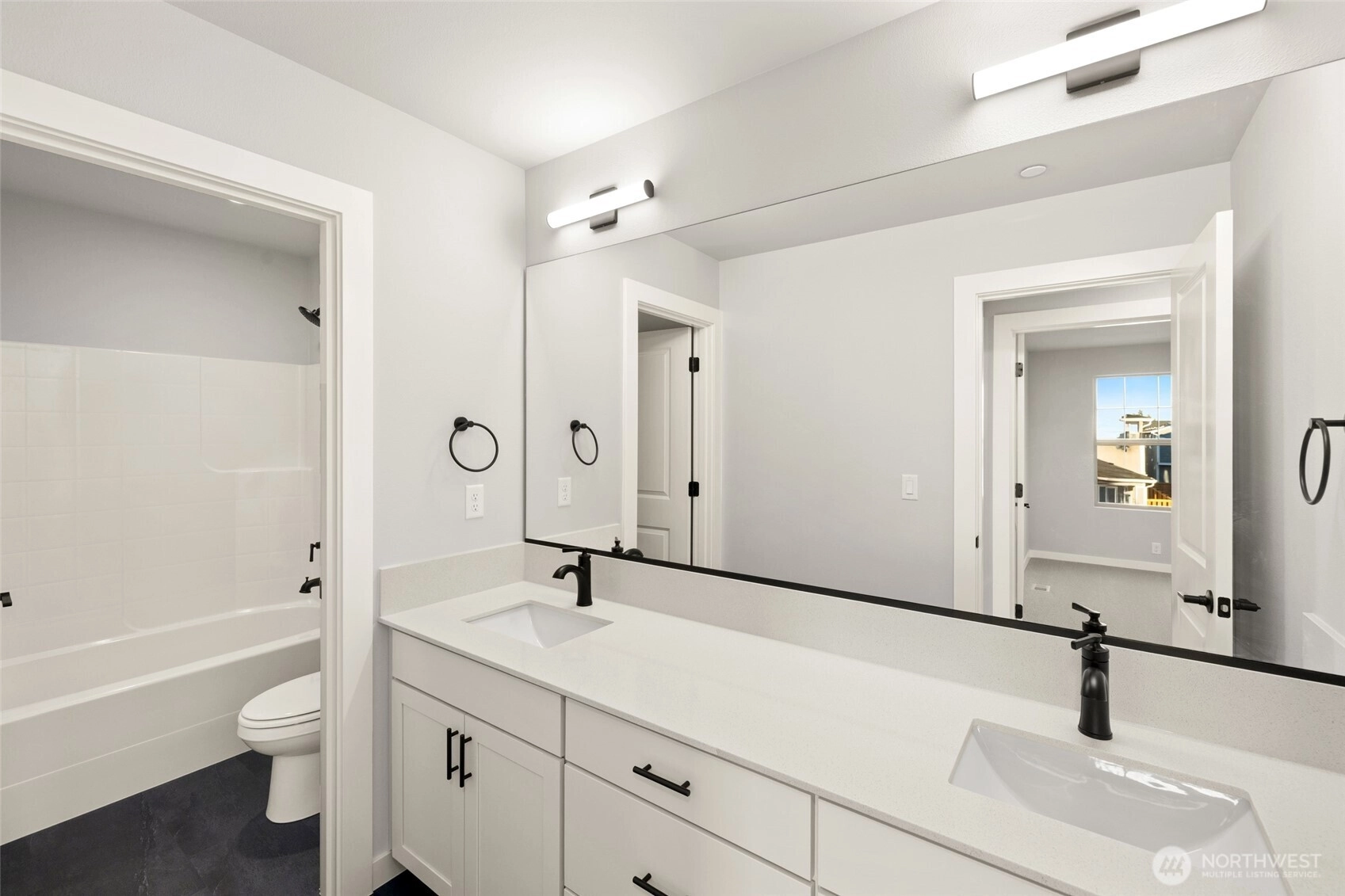 Experience the Conner Difference - where thoughtful design, quality craftsmanship, and everyday functionality shine. Covered front porch welcomes you into a light-filled foyer leading to a spacious great room with soaring 12-foot ceilings & expansive windows. Chef-inspired kitchen features walk-in pantry w/outlet, 5-burner gas range, generous counter space, soft close cabinetry, undermount farmhouse sink & under-cabinet lighting. Additional dedicated tech space for homework or remote business. Enjoy indoor-outdoor living with great room access to outdoor covered living overlooking fully fenced backyard. Main-level guest suite has attached ¾ bath for multigenerational living or guests. Upstairs, an open loft and four additional bedrooms, full bath, laundry room with extra cabinetry. Spacious primary suite offers vaulted ceilings, oversized walk-in closet, spa-inspired 5-piece bath has freestanding soaking tub, dual sinks, full tile shower with glass door. 3-minute walk to community clubhouse featuring gym, pools, hot tub, media room, meditation pond & unbeatable Mt Rainier views plus numerous nearby walking trails. Limited lots available with 3,022 sq ft Hawk plan, largest at Uplands, offering 5 bedrooms & 3.25 baths and main level suite. $50K Incentive with Trusted Lender on Move-in ready homes. Must close by March 31st to receive the incentive, Ltd-time, subj to change, terms/conditions apply.