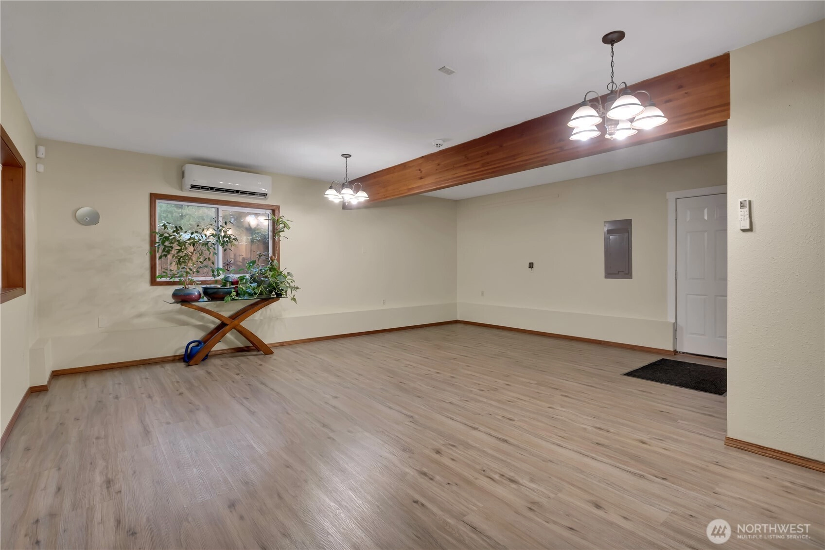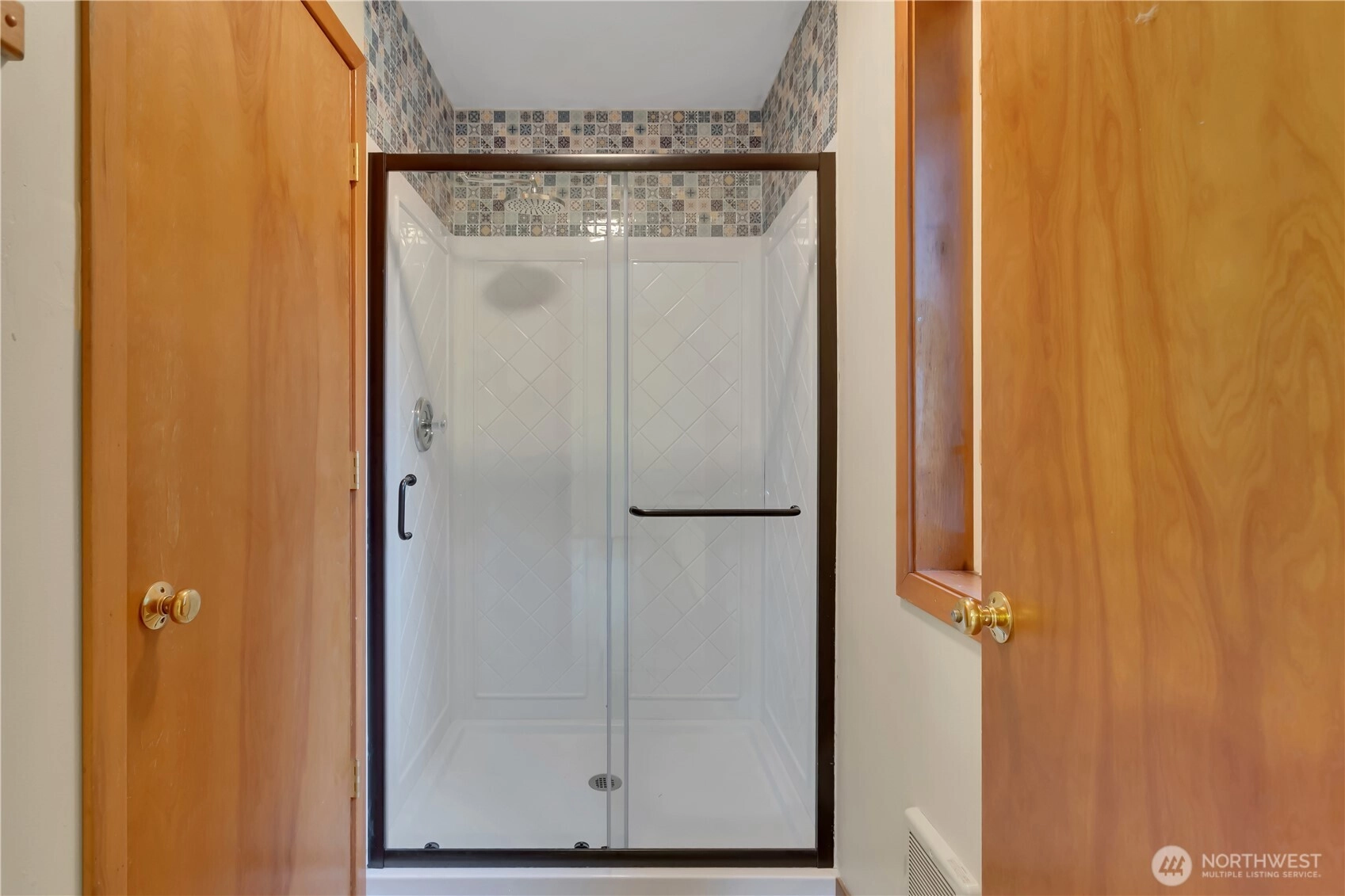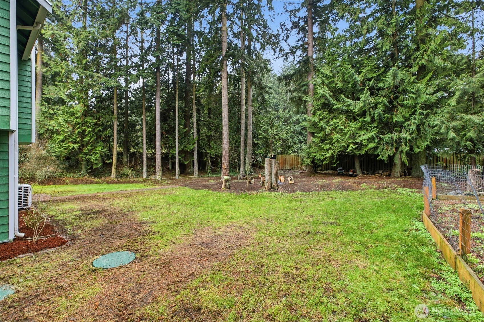 Beautiful and serene, this well-maintained split-level home sits at the end of a quiet dead-end street, surrounded by tall evergreens that has walkable beach access. With 3 bedrooms plus 1 bonus room, 2 bathrooms, the layout is ideal for large households, multi-generational living, or those seeking room to spread out. Vaulted ceilings in the living room create an open, airy feel, while fresh interior and exterior paint make the home truly move-in ready, did I mention the 3 year old roof on the home? The spacious primary bedroom features a large walk-in closet and private ensuite. The kitchen offers abundant storage and flows easily to the living room and outdoor deck, making indoor-outdoor entertaining effortless. The lower level includes a very large den, perfect for a media room, home office, or guest space. The upstairs bathroom features two showers and a tub, while the lower bathroom includes a shower and shares space with the laundry room. Outside, the expansive, beautifully maintained backyard offers a large cement patio—ideal for entertaining or recreation. A two-car garage with a 1 year old roof, provides potential for a shop or ADU conversion (buyer to verify). Located within walking distance to grocery stores and restaurants, this home blends quiet surroundings with everyday convenience—perfect for anyone looking for relaxed living in a natural setting. Don't miss your opportunity to own your own PNW escape.