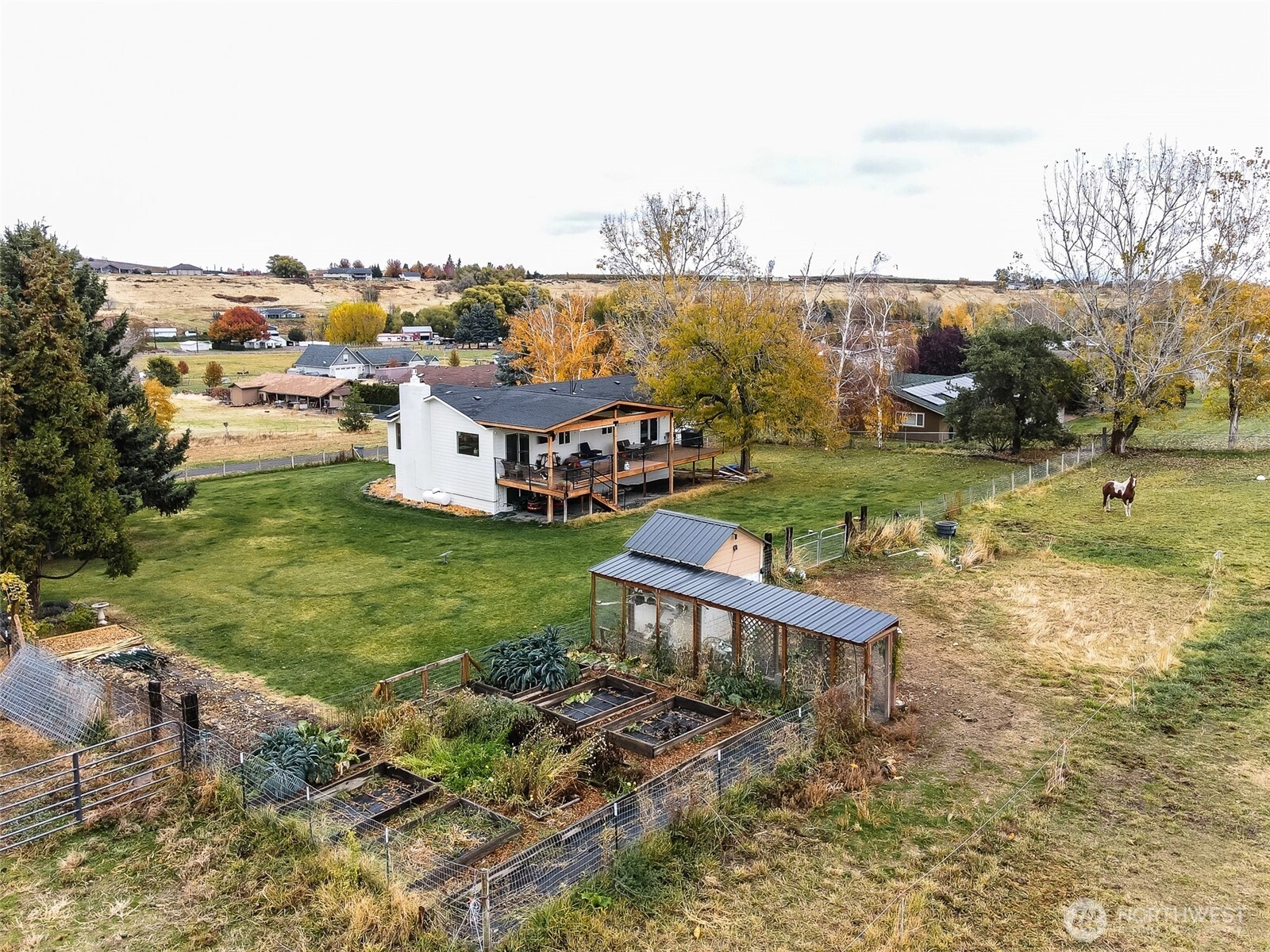 Experience country living in this cozy 4 bed, 2.5 bath home that sits on 2.51 Acres at the end of a quiet, private drive. With 2004 sq ft of thoughtfully updated space, this home combines comfort with modern convenience. Inside, you will find new LVP flooring, quartz countertops, & updated appliances. Step outside and take in the peaceful setting-a large covered patio overlooks the fenced backyard, garden beds, & firepit. The property also features a chicken coop and fenced pasture ready for your animals, creating an ideal setup for a small hobby farm. Whether you're growing your own produce, gathering fresh eggs in the morning, or simply enjoying the open space, this home offers the best of country living with all the comforts you love.