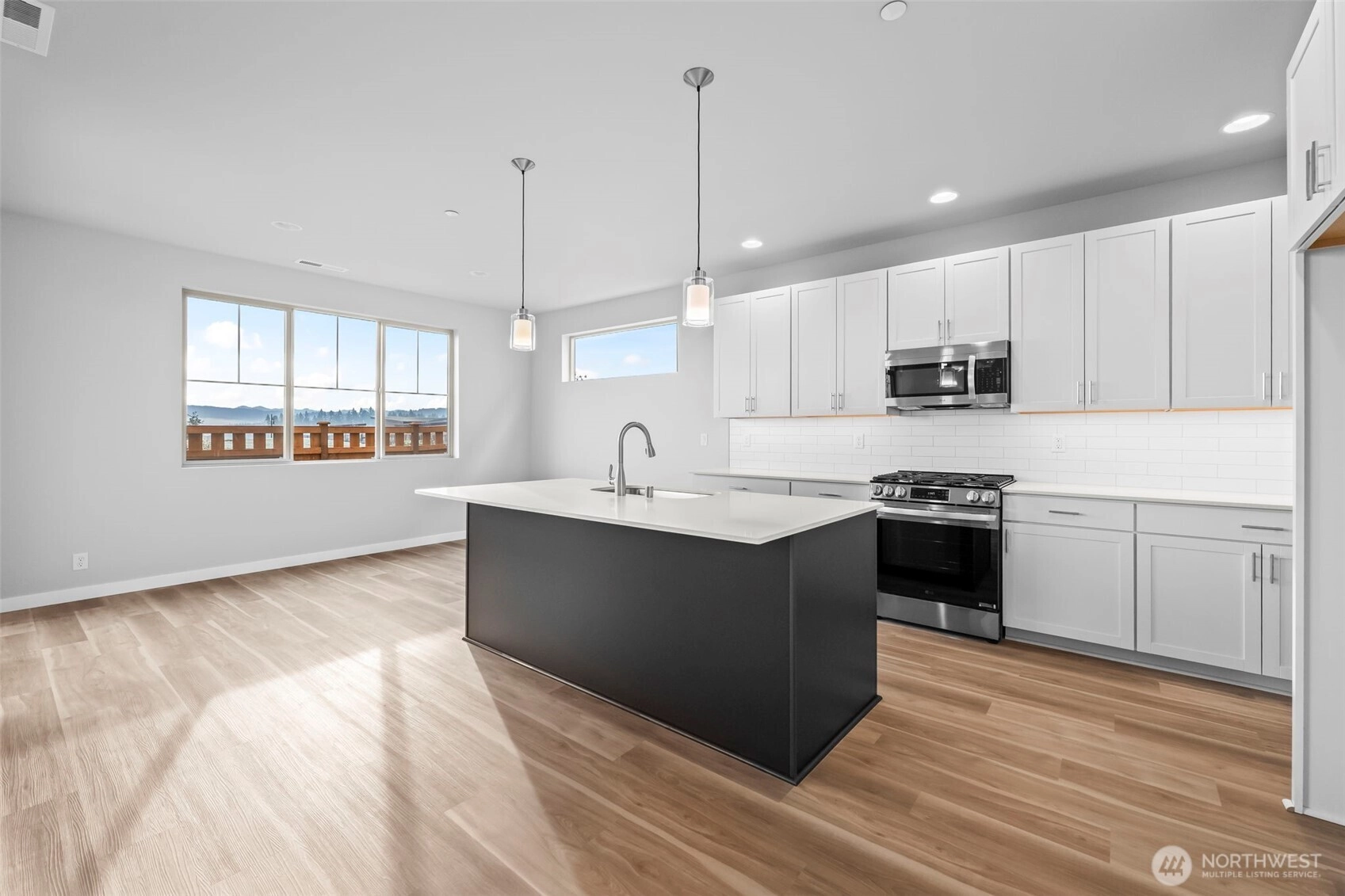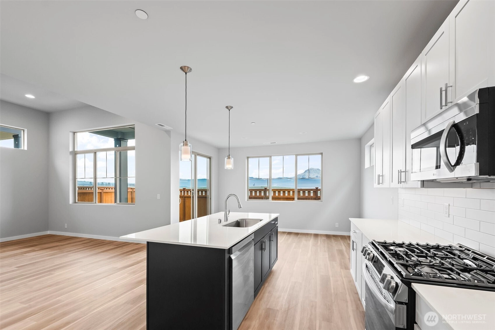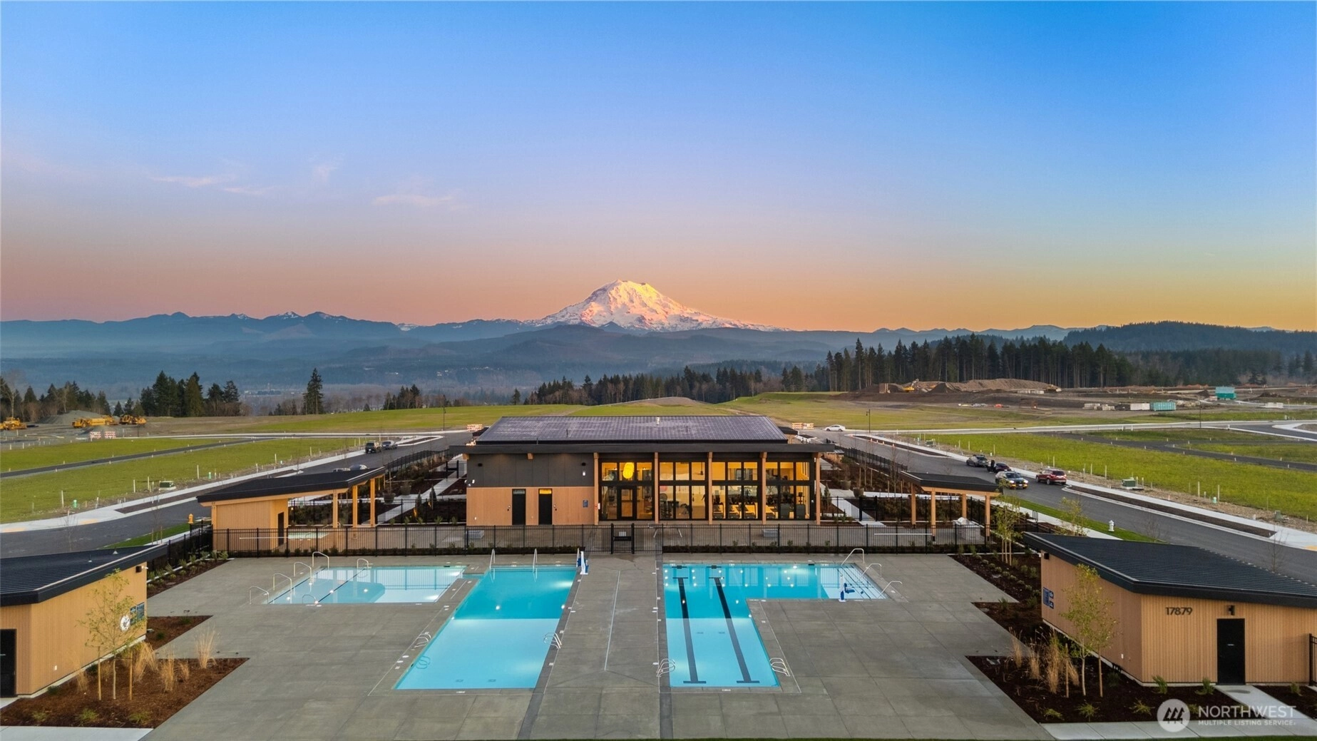 Iconic Mt. Rainier views & breathtaking sunsets. Conner Homes presents the Falcon - A thoughtfully designed multigenerational floor plan offering exceptional flexibility. Main level guest suite w/separate entry, washer & dryer hookups & attached 3/4 Bath w/kitchenette including sink, microwave/convection oven & sink. The main living area offers a perfect office alcove w/windows for a light & bright work area. In the heart of the home you will be greeted by soaring 12 ft ceilings & floor to ceiling tile linear electric fireplace. Kitchen w/white shaker style cabinets w/dark accent island. Quartz Counters w/full height tile backsplash & 5 Burner gas range w/ large single bowl undermount farm sink. Larg walk-in pantry w/shelving & outlet + under cabinet lighting. Upstairs offers a lrg loft w/the primary on one side & addt'l bdrms on the other. Primary suite offers vaulting ceilings, walk-in closet & 5 PC bath w/tile floors & free standing soaking tub & Mt Rainier is front & center from the lrg primary window. Addt'l 2 bedrooms & full bath & laundry room w/ample storage. Fully fenced & professionally landscaped. Enjoy the brand-new clubhouse included w/your HOA dues & offers a gym, pools, hot tub & places to gather including large fire pit & meditation pond + over 24 acres of walking trails & parks! Smart Savings Event! $30K Incentive with Trusted Lender on Move-in ready homes. Must close by March 31st to receive the incentive, Ltd-time, subj to change, terms/conditions apply.