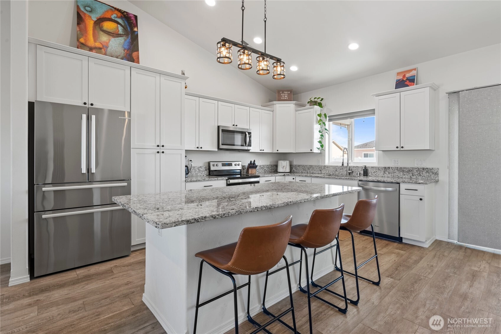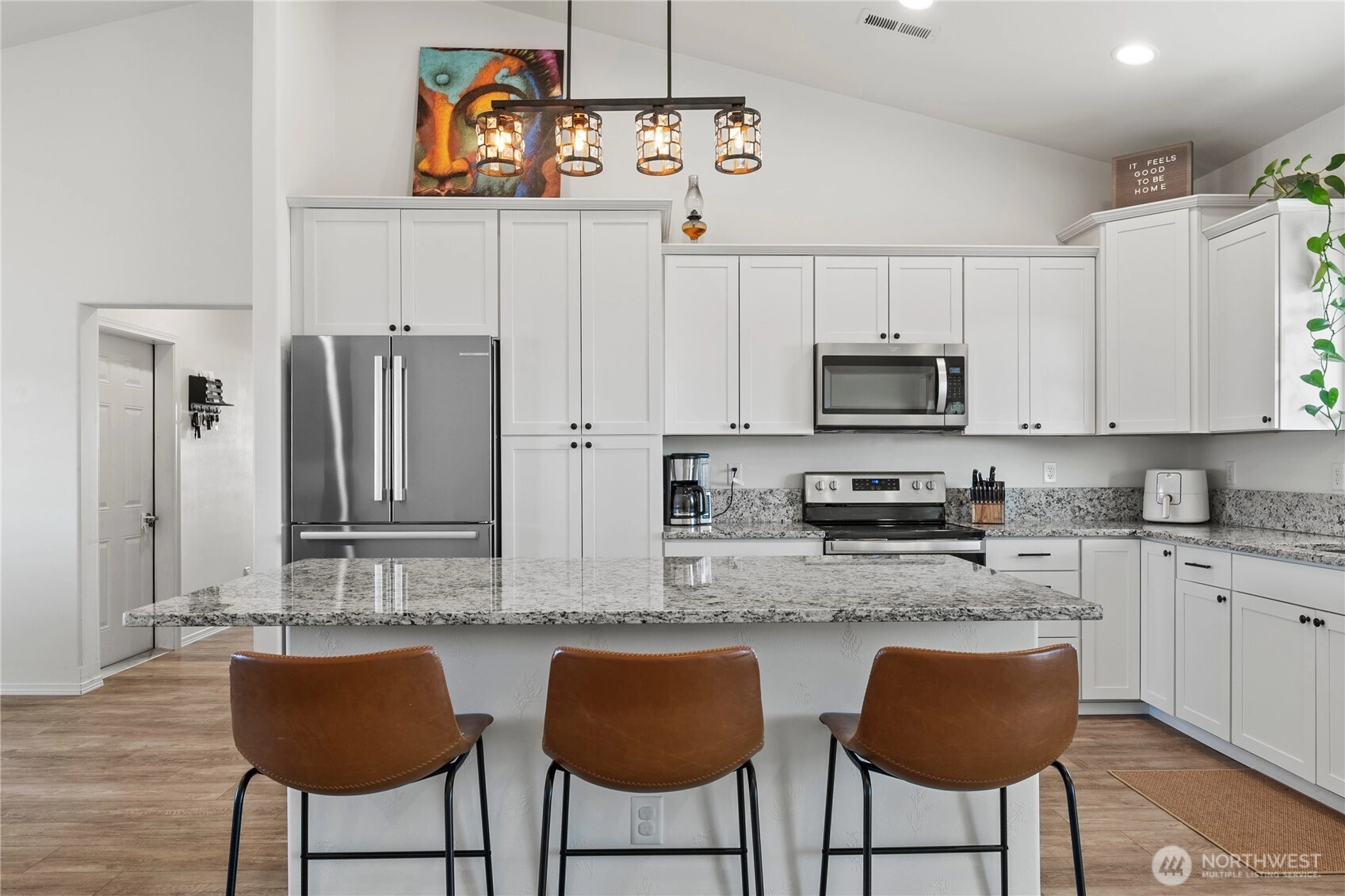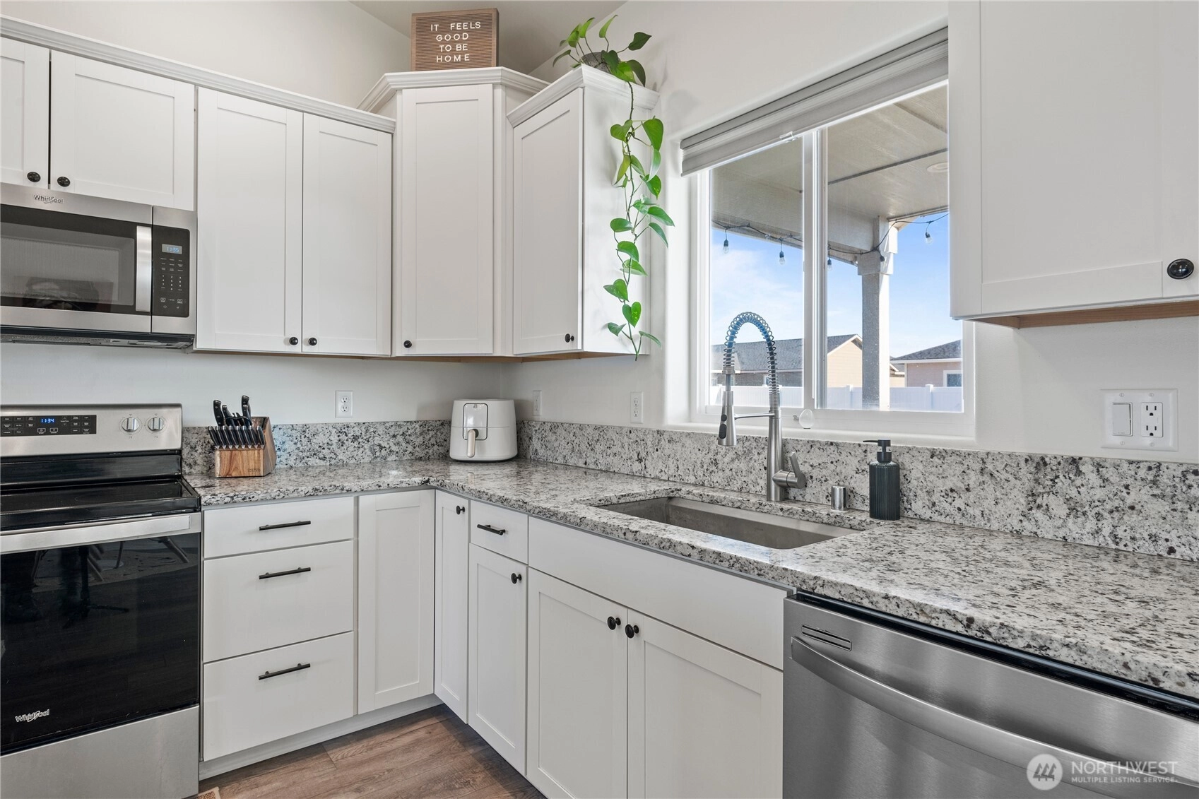 Exceptionally well built 3 year old Home on a great fenced lot. This beauty has an amazing kitchen with a spacious island, stone countertops, soft close cabinetry, and an enormous amount storage all in quality products. The Primary bedroom has an enormous walk in closet, en suite bathroom; Bedrooms 2 & 3 are positioned across the home for privacy. For garage enthusiasts, Size Matters, and this attached garage is 40' long and 900 sq feet - large enough for 4 vehicles, or 2 extended cab pick ups and 2 small cars! This home is a quality build product in a like new condition.