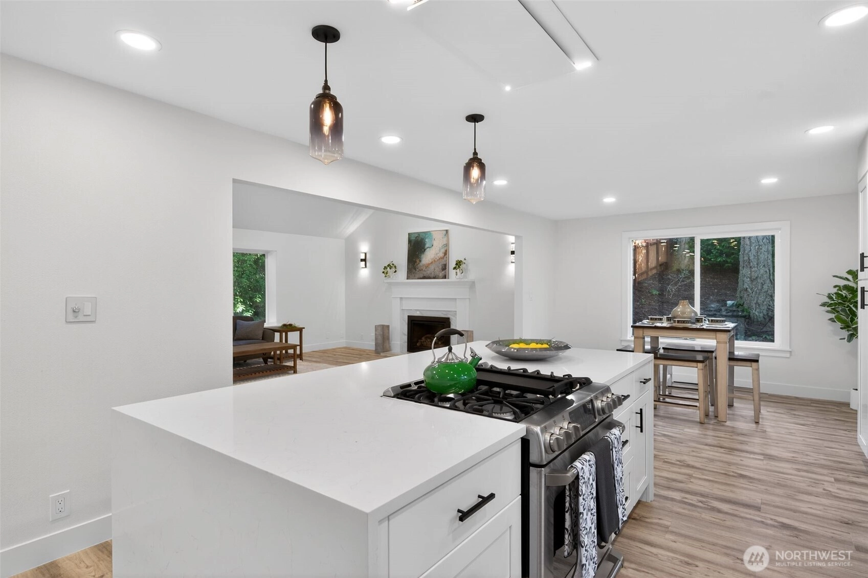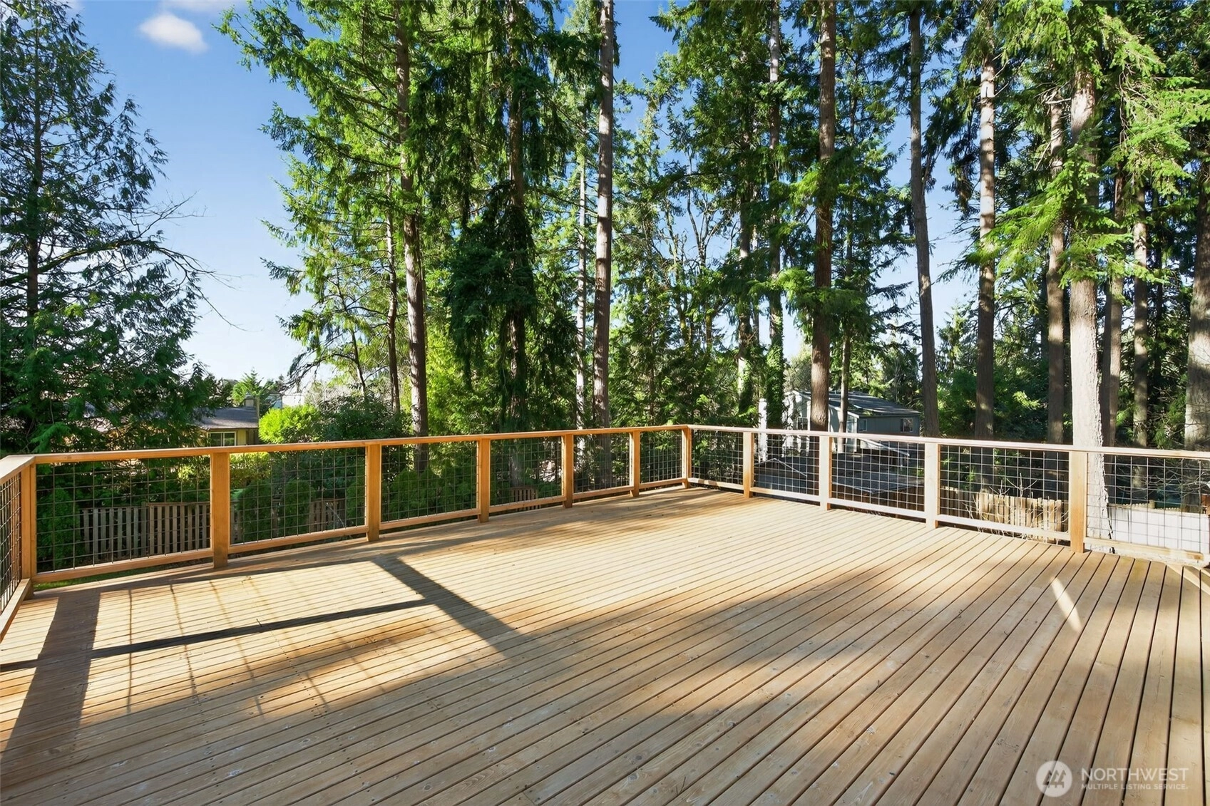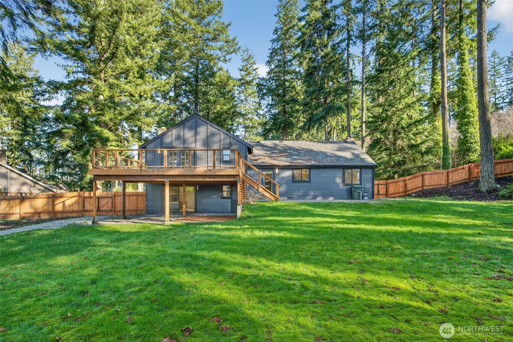 Nestled at the end of a peaceful cul-de-sac near the shores of Pine Lake, this extraordinary Sammamish home rests on a rare and private ¾-acre lot and has been fully reimagined to complement today’s modern lifestyle. Classic Northwest Craftsman charm meets refined contemporary design, creating a residence that is timeless and inviting. Upon entry, you are welcomed by a dramatic great room with soaring vaulted ceilings and expansive windows that flood the space with natural light. Breathtaking views, overlooking mature landscaping blended with an elegant hardscape garden and tranquil fountain, all designed and installed by an award-winning landscaping firm. The outdoor setting offers privacy, serenity, and a true connection to nature. The open-concept kitchen is an entertainer’s dream, featuring cascading bar countertops, generous prep space, and seamless flow to the main living areas—perfect for hosting gatherings both large and small. Upstairs, you’ll find four oversized bedrooms, including a stunning primary suite with direct access to an expansive 25’ x 20’ custom cedar deck, ideal for relaxing or entertaining under the treetops. The lower level offers a private mother-in-law suite with a separate entrance, providing exceptional flexibility for multi-generational living, guests, or a home office. Located within the highly sought-after Issaquah School District, this home delivers privacy, space, and luxury in one of Sammamish’s most desirable neighborhoods.