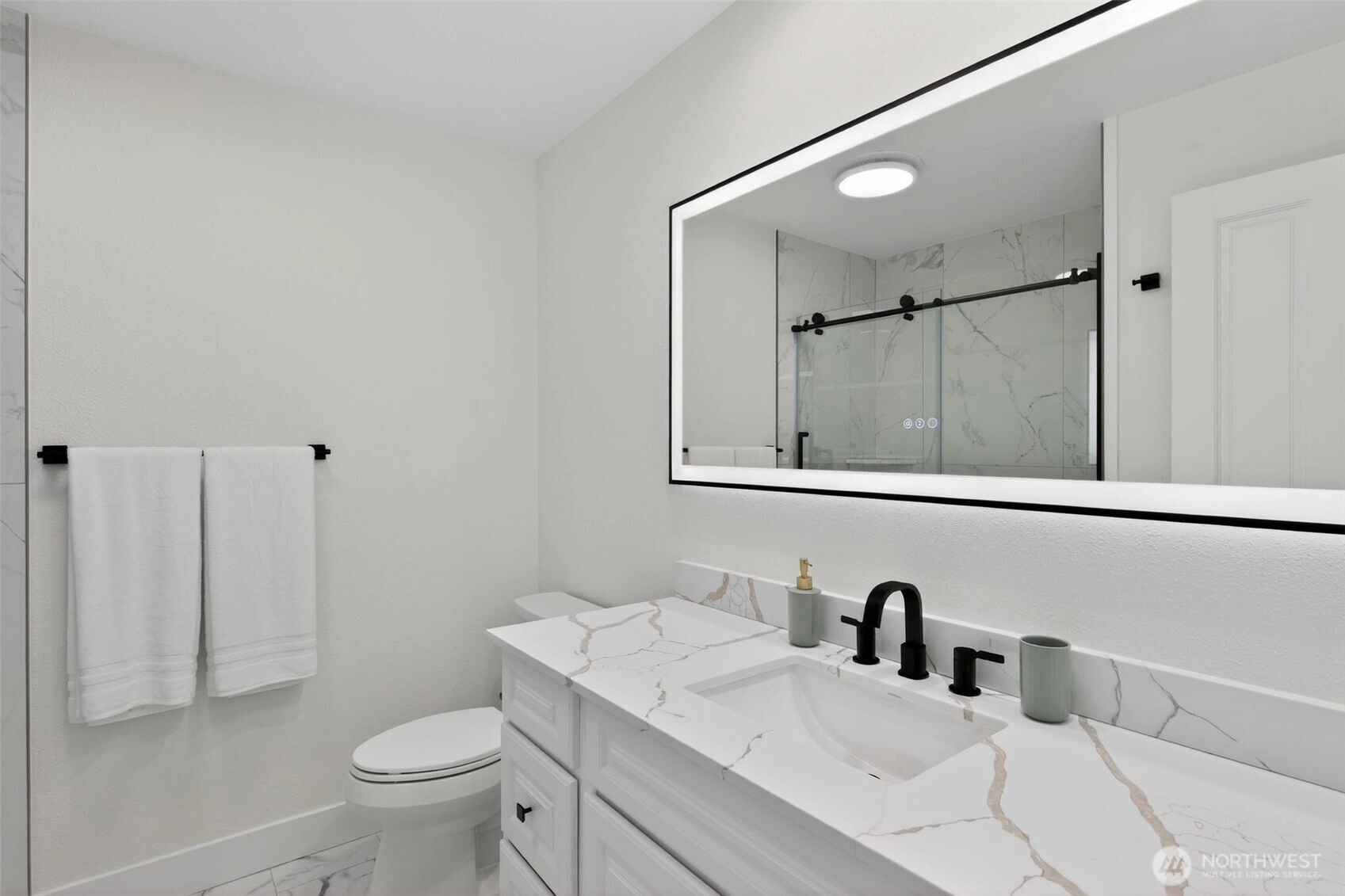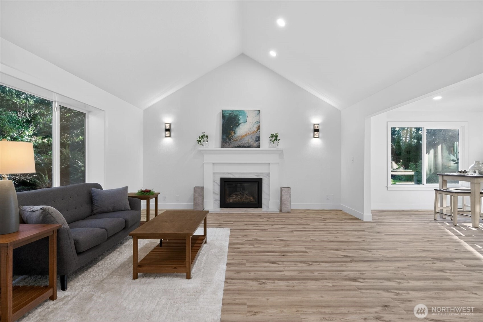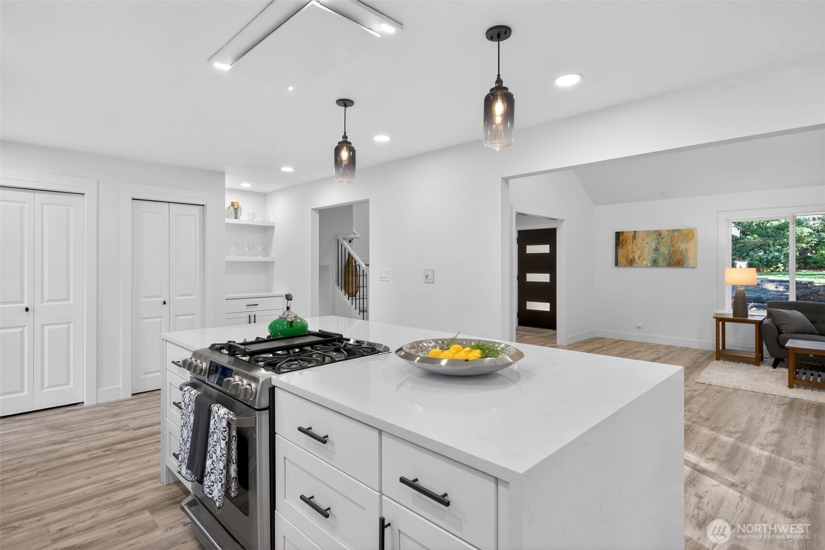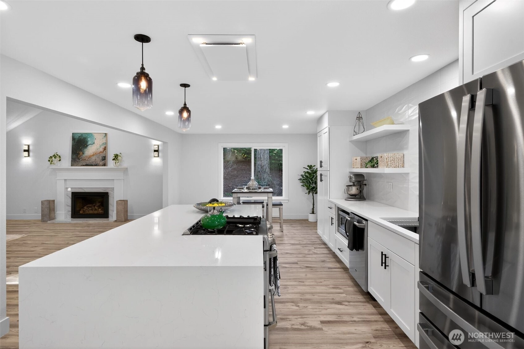 Nestled at the end of a peaceful cul-de-sac near the shores of Pine Lake, this extraordinary Sammamish home rests on a rare and private ¾-acre lot and has been fully reimagined to complement today’s modern lifestyle. Classic Northwest Craftsman charm meets refined contemporary design, creating a residence that is timeless and inviting. Upon entry, you are welcomed by a dramatic great room with soaring vaulted ceilings and expansive windows that flood the space with natural light. Breathtaking views, overlooking mature landscaping blended with an elegant hardscape garden and tranquil fountain, all designed and installed by an award-winning landscaping firm. The outdoor setting offers privacy, serenity, and a true connection to nature. The open-concept kitchen is an entertainer’s dream, featuring cascading bar countertops, generous prep space, and seamless flow to the main living areas—perfect for hosting gatherings both large and small. Upstairs, you’ll find four oversized bedrooms, including a stunning primary suite with direct access to an expansive 25’ x 20’ custom cedar deck, ideal for relaxing or entertaining under the treetops. The lower level offers a private mother-in-law suite with a separate entrance, providing exceptional flexibility for multi-generational living, guests, or a home office. Located within the highly sought-after Issaquah School District, this home delivers privacy, space, and luxury in one of Sammamish’s most desirable neighborhoods.