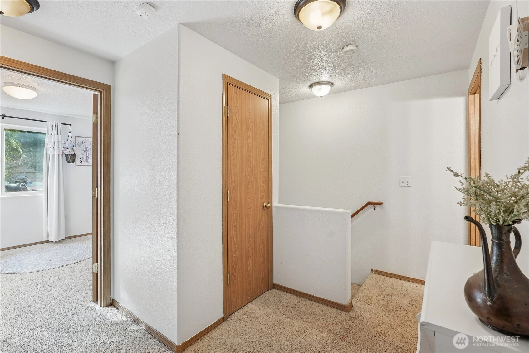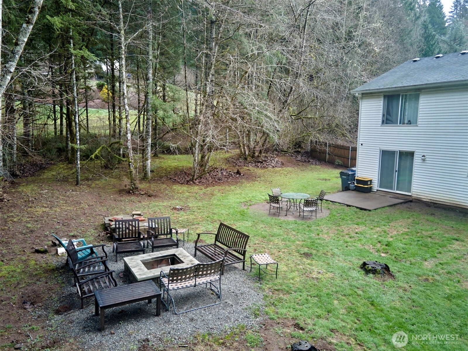 This is an established neighborhood of some very nice homes at the end of the drive. The backyard goes back across the creek. The yard has been professionally maintained mostly. Partially fenced for privacy. Owners suite upstairs. Family room and living room downstairs. Two patios, one off the dining room and one off the family room. Two car garage and extra long driveway. Current tenant is able to park all his work trucks, trailers plus personal vehicles. Laundry room is next to downstairs powder room.