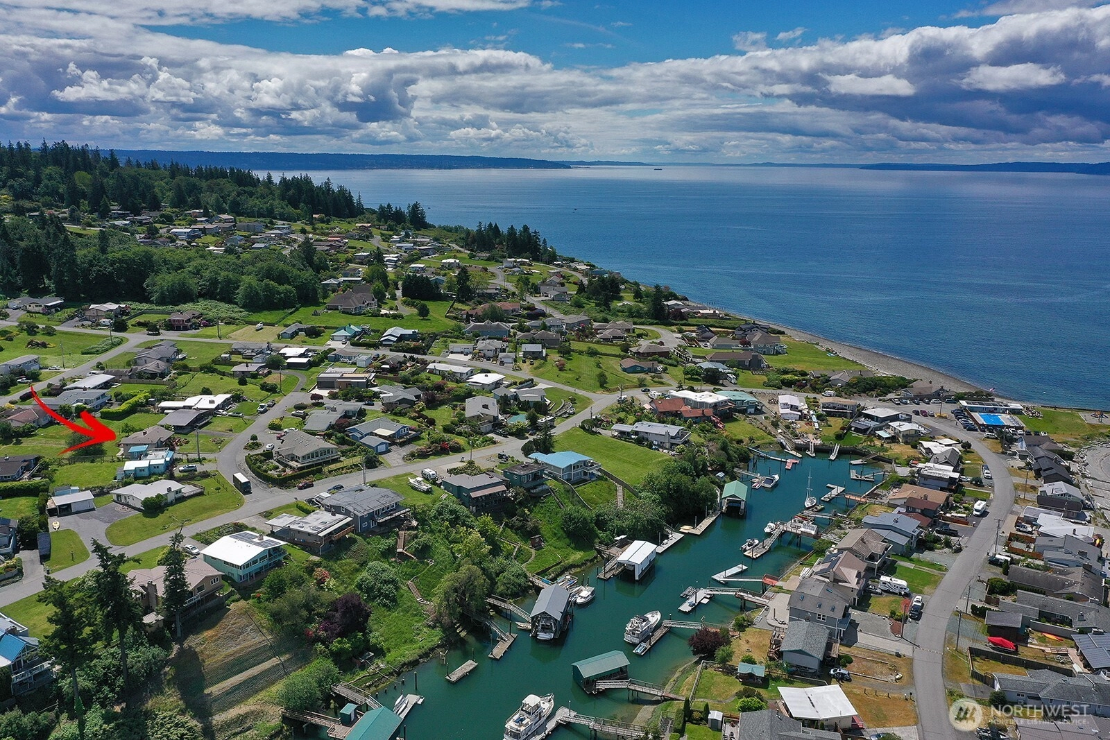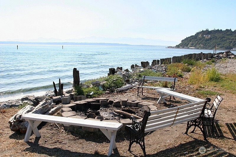 Embrace wide angle westerly views of the Olympic Mountains, Admiralty Inlet, Point No Point and boat and shipping lanes from this charming 2 bedroom home with both a full and a half bath. Living room with wood burning fireplace insert, dining area and gathering room with propane stove keep everything cozy. Relax or entertain indoors and out from spacious front and rear covered decks. Enjoy the community amenities of a seasonal seaside swimming pool, boat launch, park/playground and sports courts. Recent improvements include interior paint, complete half bath remodel, carpet, fireplace maintenance and new electric panel, hot water heater, dining area light, kitchen fixtures and propane line for (future) kitchen stove plus exterior tree trimming. This property is "move in ready!" WOW!