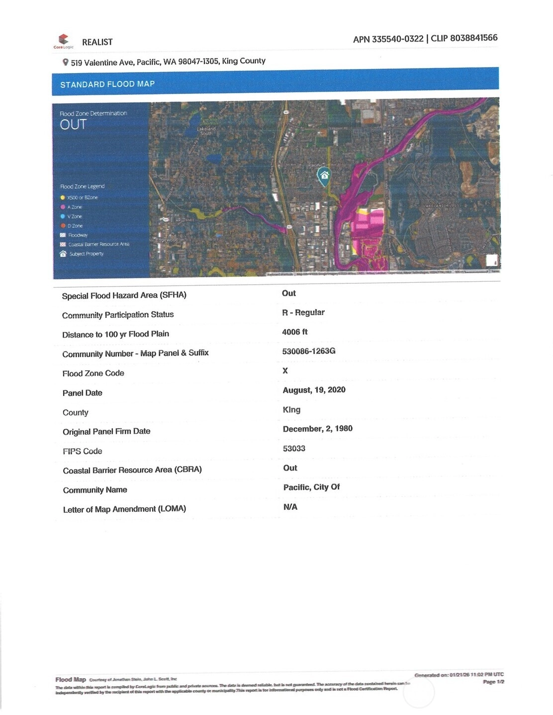 1.28 acres of level and cleared land; utilities available in street. Sold subject to short platting and revised title; survey and short plat process to be Buyer's responsibility. Buyer to have and maintain liability insurance to cover Buyer adequately during survey/short plat process. Square footages describe proposed lot; accompanying sketches are approximate. Property is outside the Special Flood Hazard Area.
