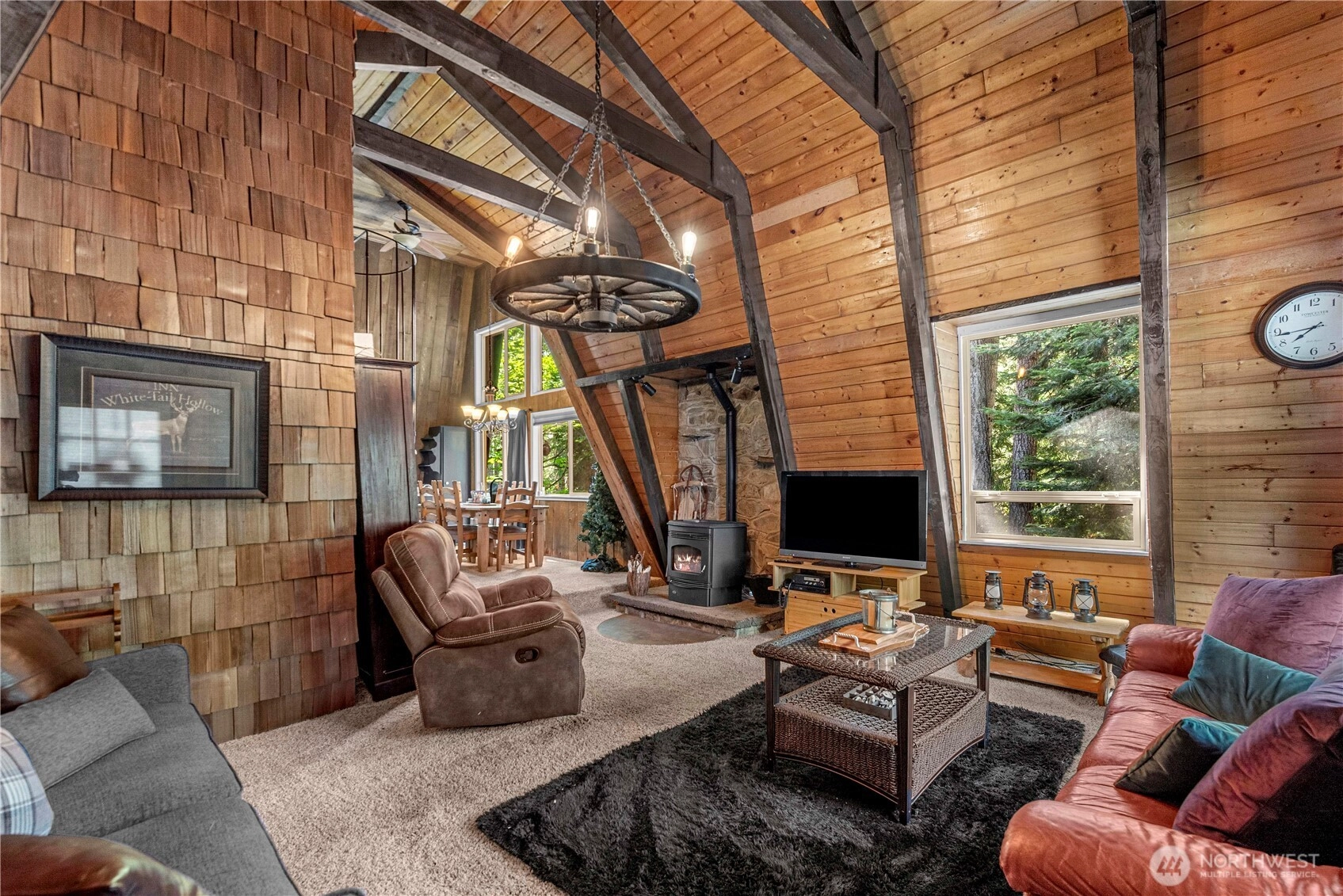 Welcome to this secluded mountain retreat offering the perfect blend of privacy & comfort. Charming cabin featuring vaulted ceilings w/exposed beams, cozy pellet stove & sliding glass door that opens up to a spacious deck w/hot tub. Thoughtfully designed layout includes 2 inviting bedrooms and a full bath on the main floor, while a loft & add'l bedroom upstairs provide ample space. Extra storage beneath deck for all your gear. As part of the Pineloch Sun community, you'll enjoy access to Lake Cle Elum's beach, a welcoming lodge, seasonal swimming pool and sports courts. Enjoy endless trails, a snowmobiling haven, boating & more! 15 min drive to Roslyn & Suncadia. Fully turn-key. Your next adventure awaits!