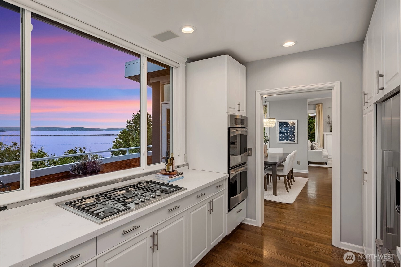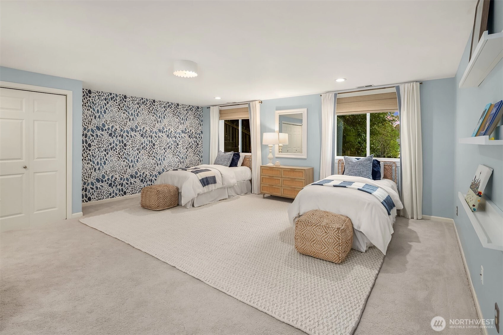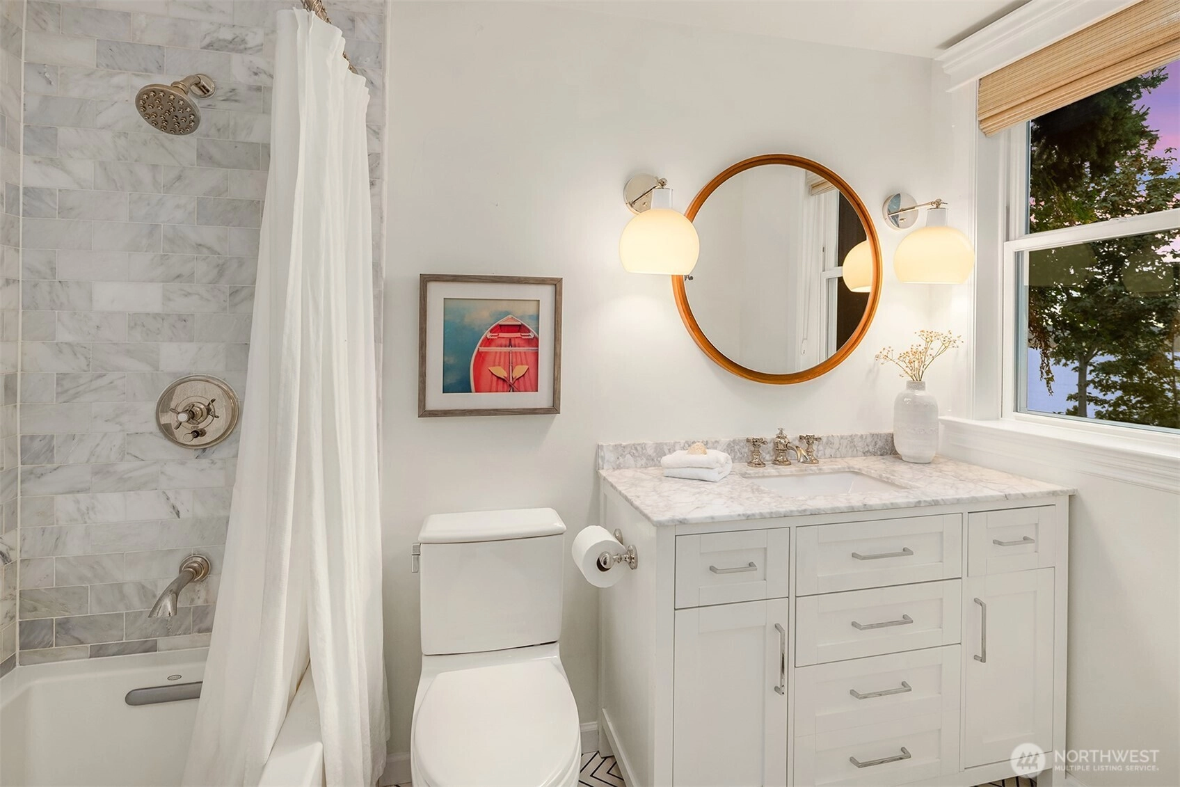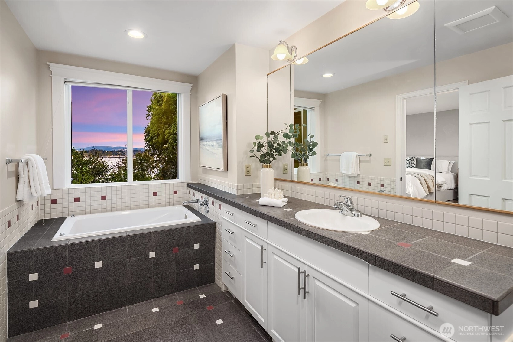 Privacy is paramount as you head down a private drive to this expanded daylight rambler with panoramic views of Mt Rainier and Lake Washington, from almost every room. The expansive main floor features formal areas with updated finishes, flowing into each other and extending to a curved deck—perfect for entertaining. The rooftop deck enhances the experience with endless sky and water views. All bedrooms, including the primary suite, are located on the same floor. The daylight basement provides versatile spaces, ideal for a recreation, media, or gym and opens onto a patio and lawn. A 2-car attached garage ensures convenience, and the nearby beach club adds extra amenities. A retreat in one of Seattle’s most coveted neighborhoods.