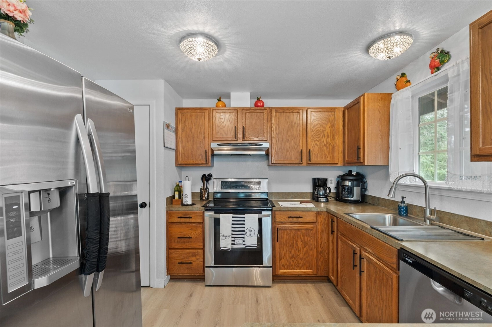 Tucked in a quiet cul-de-sac on a private .38-acre lot, this welcoming 3-bedroom, 2-bath home blends comfort, space, and sought-after amenities. Enjoy peek-a-boo Hood Canal views from the deck—perfect for morning coffee or evening relaxation. Thoughtful updates shine inside and out, including durable, stylish LVP flooring throughout and HardiePlank siding (2019) for lasting curb appeal. The bright kitchen features warm oak cabinetry and all appliances included, opening to a spacious living room ideal for everyday living and entertaining. Two bedrooms and a full bath are located upstairs, while the generous primary suite offers its own full bath and walk-in closet. The large lower-level rec room provides flexible space for hobbies, media, guests, or a home office. Outdoor living is just as appealing with a deck, fenced backyard, attached shed for extra storage, and plenty of parking. Residents of Beards Cove enjoy fantastic community amenities, including a heated outdoor pool, community center, playground, and a waterfront park with boat launch, picnic areas, and sports court—ideal for kayaking and paddleboarding on Hood Canal. Conveniently located near town, shopping, schools, parks, and Highway 3, with easy access to the Amazon fulfillment center, airport, naval base, and shipyard. A wonderful combination of location, updates, and lifestyle!