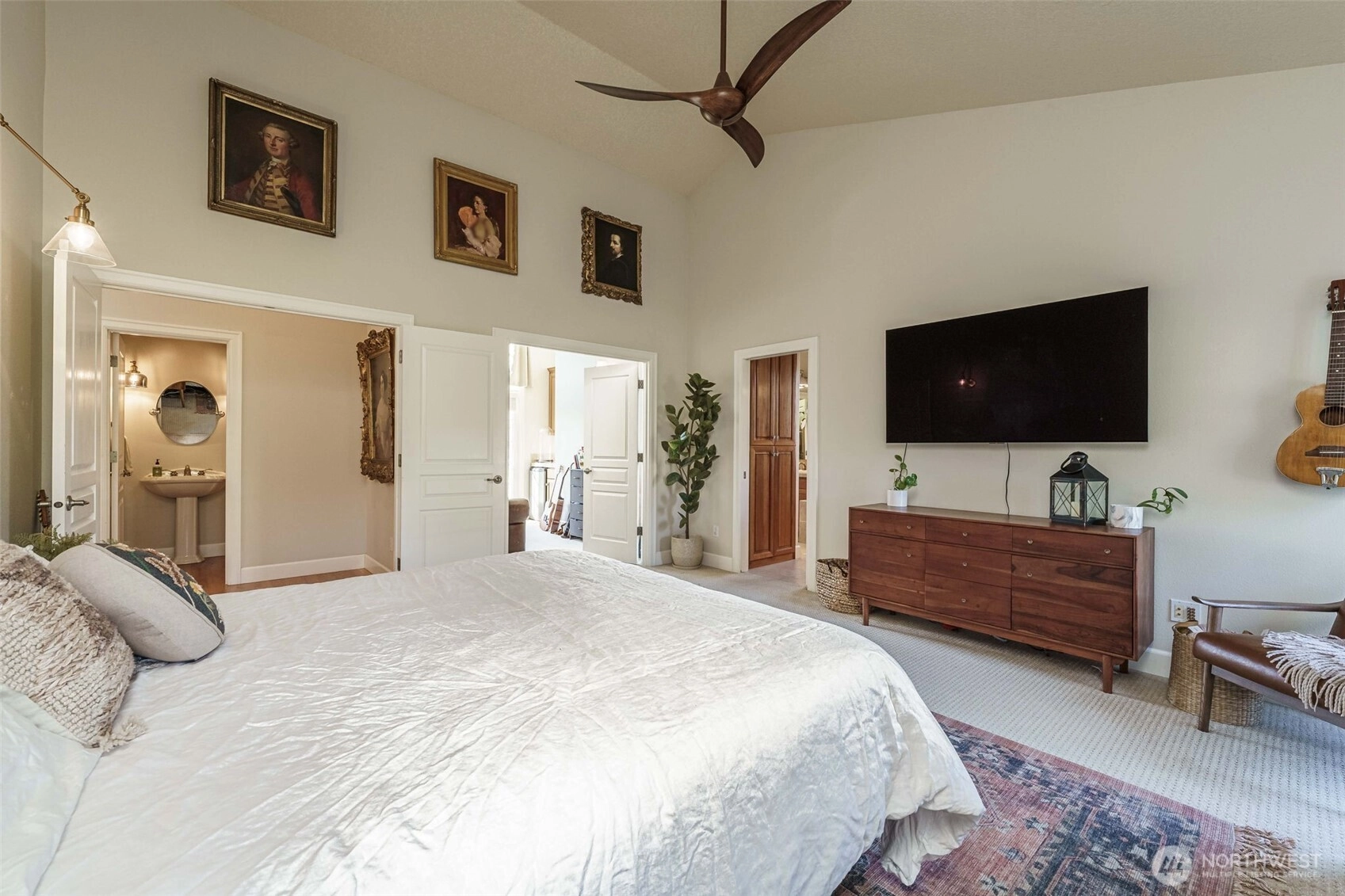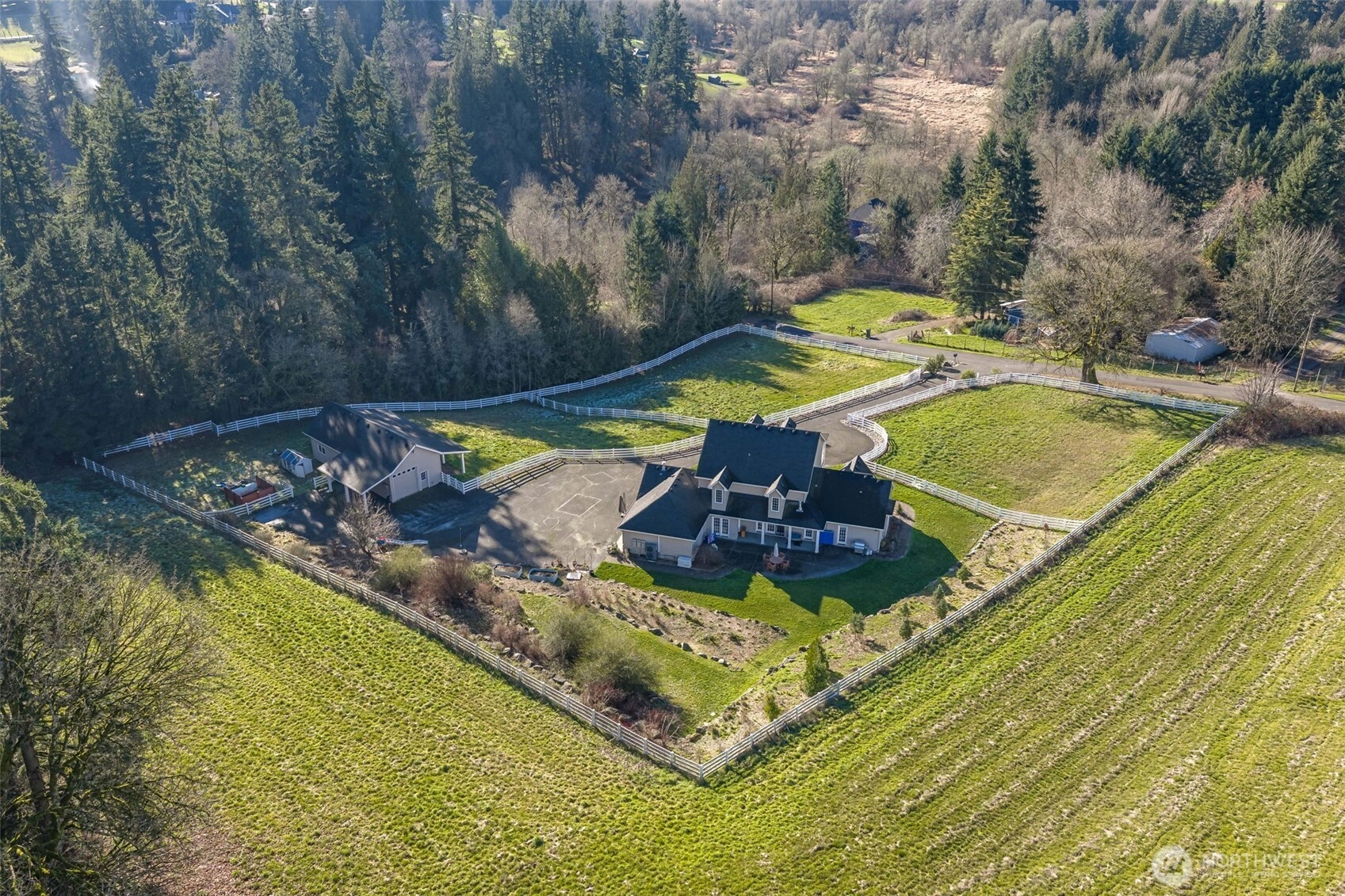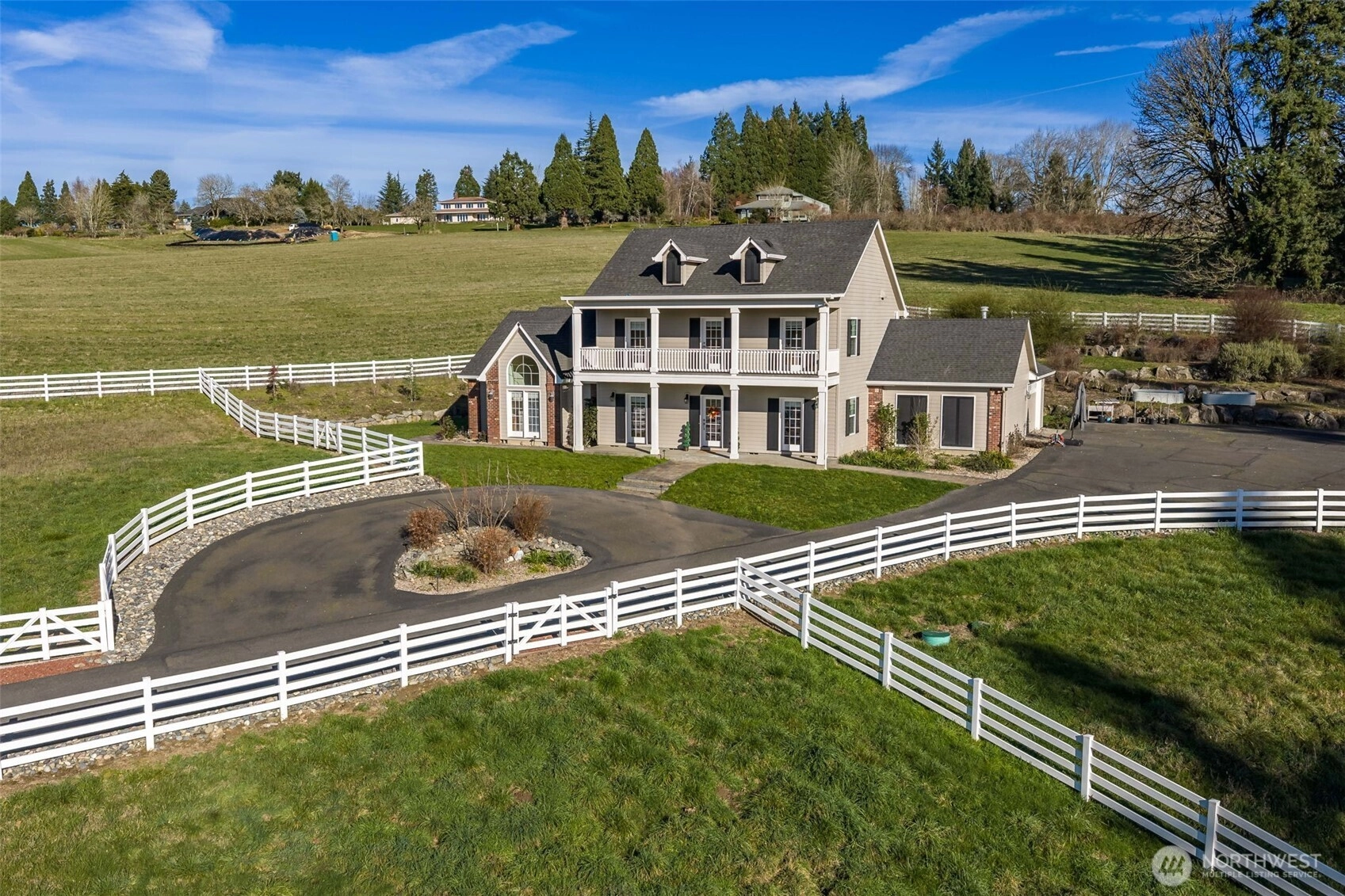 Tucked behind a gated entrance on 2.24 fully fenced acres, this custom Colonial farmhouse is the kind of property that rarely comes available. This thoughtfully designed 2,993 sq ft home is filled with natural light, hardwood floors, and floor-to-ceiling windows that frame peaceful territorial views. The main-level primary suite feels like a true retreat with vaulted ceilings, a sitting area, his & hers closets, and direct access to the back patio. A gourmet kitchen anchors the home with a Wolf cooktop, generous prep space, and seamless flow to an oversized mud and utility room with walk-in pantry. Upstairs offers 3 additional bedrooms and a covered balcony perfect for slow mornings or sunset evenings. Outside, the property shines with multiple fenced pastures, RV parking with hookups, meticulously planned native landscaping, and a three-stall barn with loft, water, and power. Private, functional, and beautifully maintained, this is a home built for those who value space, intention, and the freedom to live a little differently.