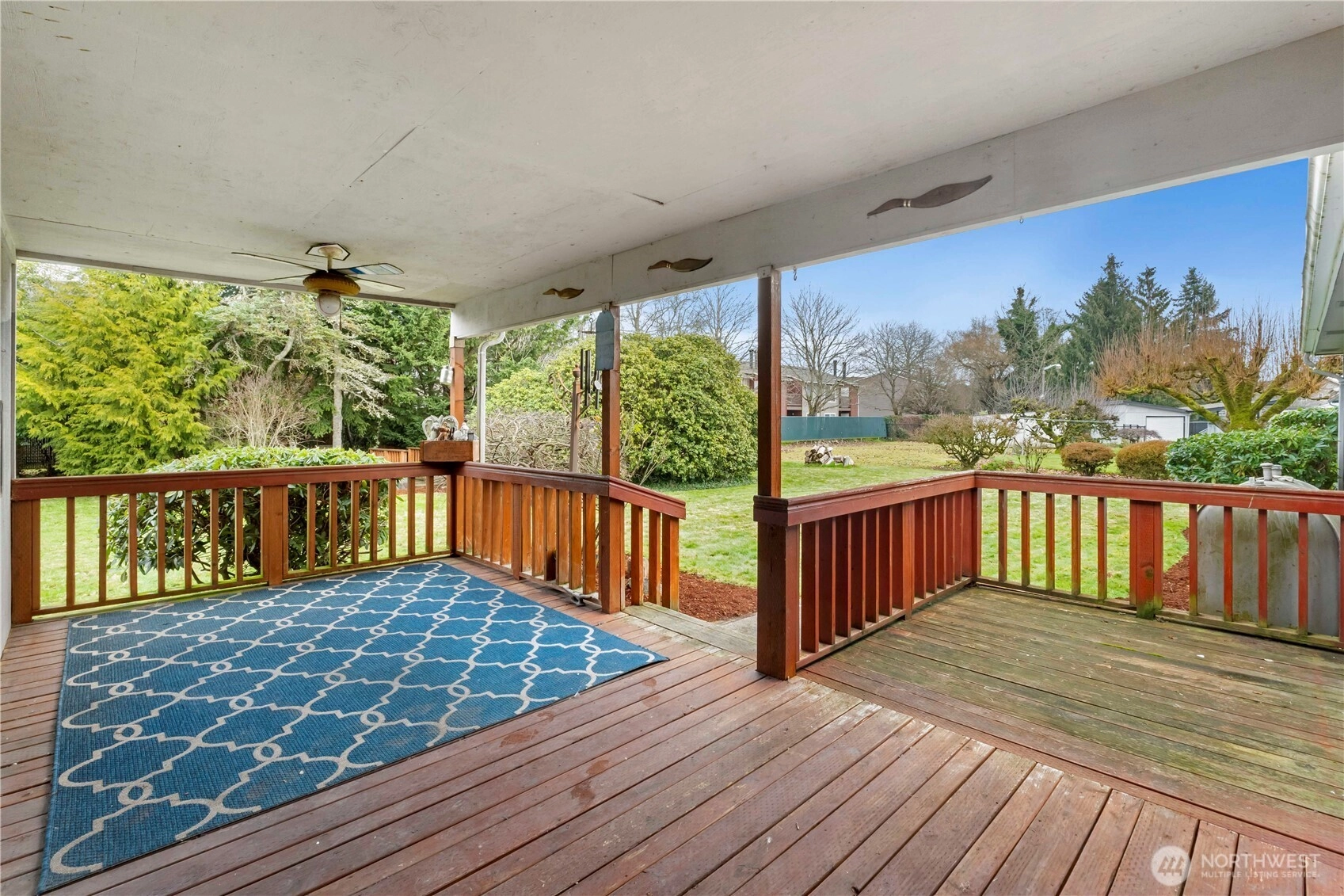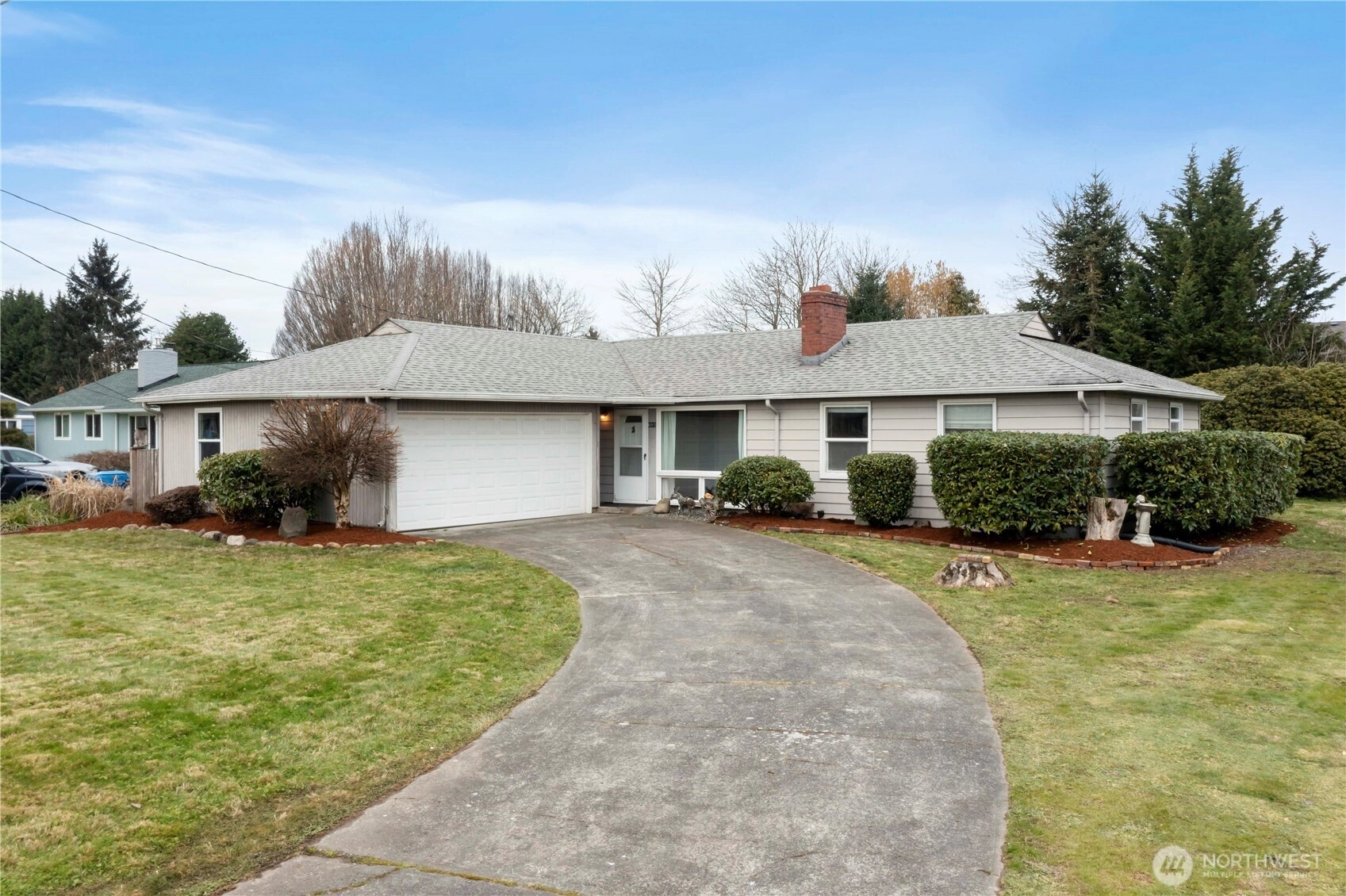 Traditional 3 bdrm/1 bath Rambler/.327 acre large lot on quiet dead end street yet walking distance to schools & nearby park. Hardwood floors welcome you as you step into Living room w/wood burning fireplace and continue down hallway and in all 3 bedrooms. Separate family room w/fan & new carpeting. U shaped Kitchen & dining room both have a long bank of windows looking over back yard. Utility room incl. pantry cabinets. Covered back porch overlooking water feature in large back yard w/huge rhododendron & leading into attached shop/hobby/storage room with shelves & cabinets waiting to be used. Large 2 car garage & additional/RV parking on right side of driveway. Mt Rainier & territorial views. Great starter home, downsizing into one level rambler &/or just right for buyer with opportunity to make it your own. **MULTIPLE OFFERS RECEIVED**