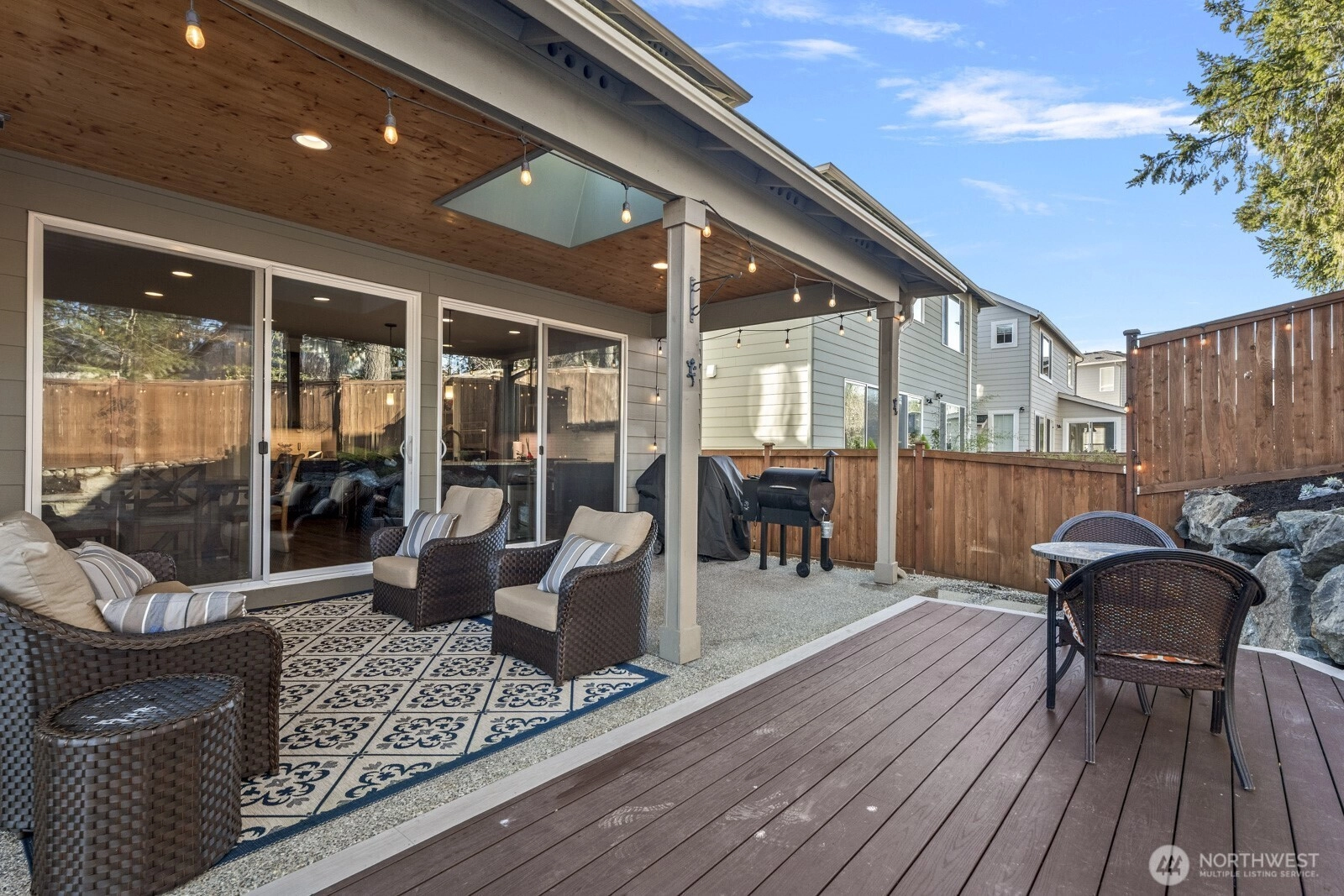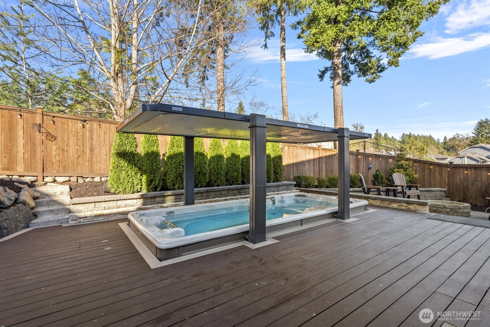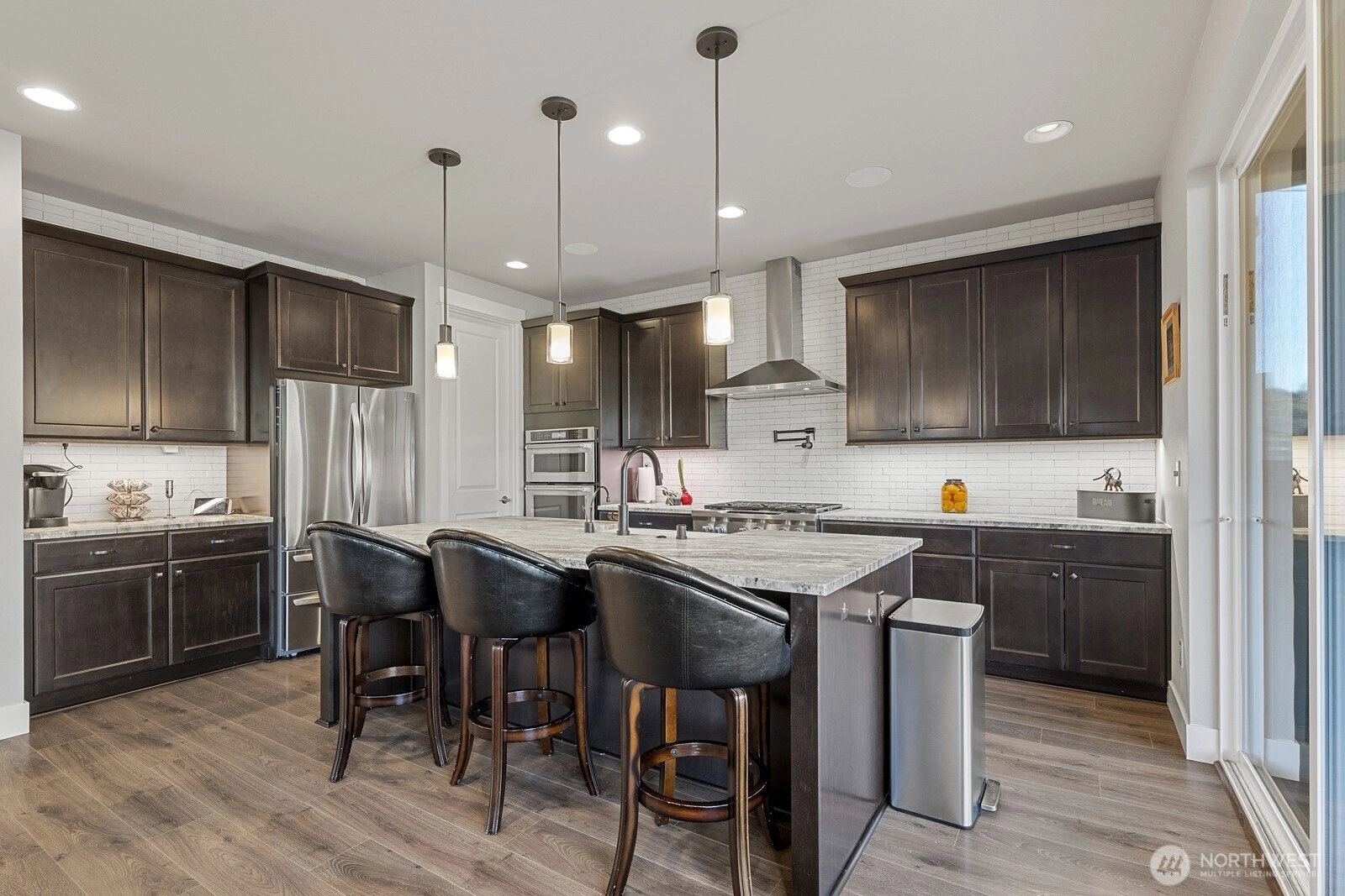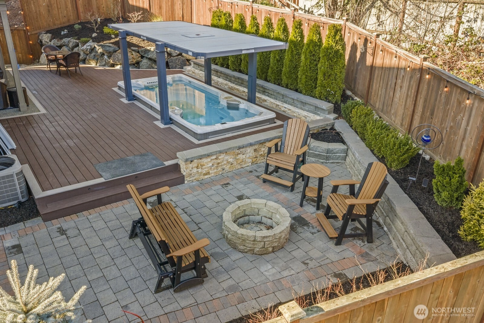 Maple Valley standout at Canton Crossing! Set on a premium lot offering rare space & privacy between homes. Loaded with thoughtful upgrades & designed to live better than new. This home welcomes you with soaring two-story entry, & tall ceilings. Exceptional floor plan features main-floor bedroom with ¾ bath, dedicated office, & open, light-filled layout ideal for everyday living & entertaining. Chef’s kitchen shines with oversized island, abundant quartz counter space, soft-close cabinetry with pull-outs, on demand hot water, pot filler, gas range, & wall ovens. Wired Sonos sound system on main. Lutron lighting, Nest thermometer, Ring doorbell. Upstairs offers three additional bedrooms, bonus room, & massive primary suite with oversized walk-in custom closets. Enjoy the inviting family room with gas fireplace & seamless indoor-outdoor living via two large sliders opening to incredible backyard with covered patio & skylight, Timbertech decking system, hot water hose bib, secure covered in ground lap Hydropool AquaTrainer, fire pit, low-maintenance turf, & full fencing. Central A/C, tankless water heater, central vacuum, owned solar. Highly rated Tahoma School District. Quick access to shopping, dining, & more. This is the one!