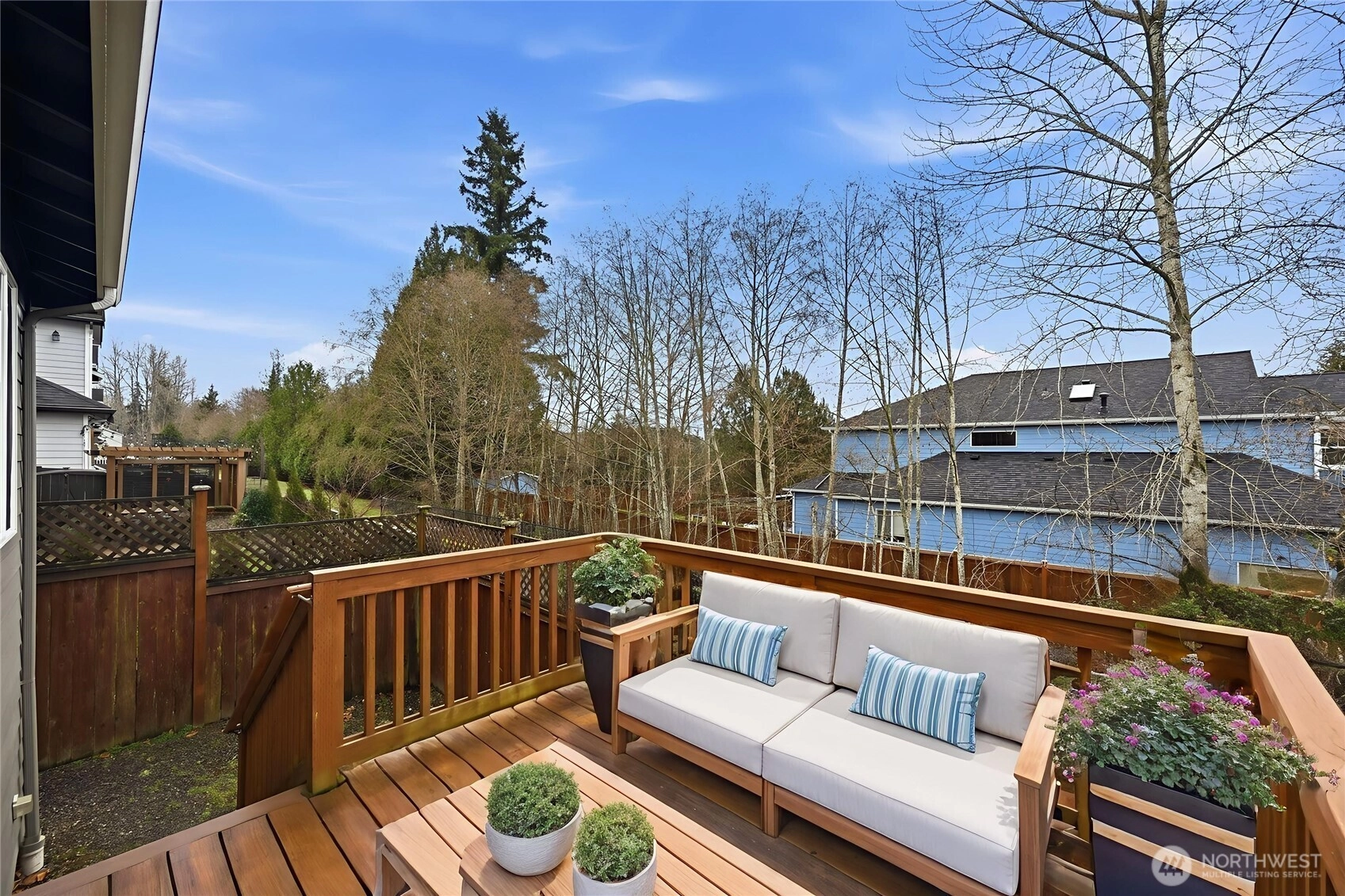Luxury Craftsman ideally situated in Bothell within the highly sought-after Northshore School District. This beautifully appointed home offers a stunning open-concept design with soaring ceilings, 4 bedrooms, and 2.75 baths. The main level features a bedroom with ¾ bath, an elegant formal dining room highlighted by a crystal chandelier, and a warm, inviting family room with gas fireplace. The gourmet kitchen is a showstopper, featuring a striking quartz waterfall island, granite slab countertops, and designer lighting. A French glass-door office or bedroom provides flexible living space. The vaulted primary suite is a true retreat, complete with a private sitting area and fireplace, plus a spa-inspired 5-piece bath with soaking tub. Generously sized bedrooms all include walk-in closets. Enjoy a low-maintenance patio deck and fully fenced backyard backing to serene green space. Exceptional location in a quiet community, just a short walk to schools and parks.